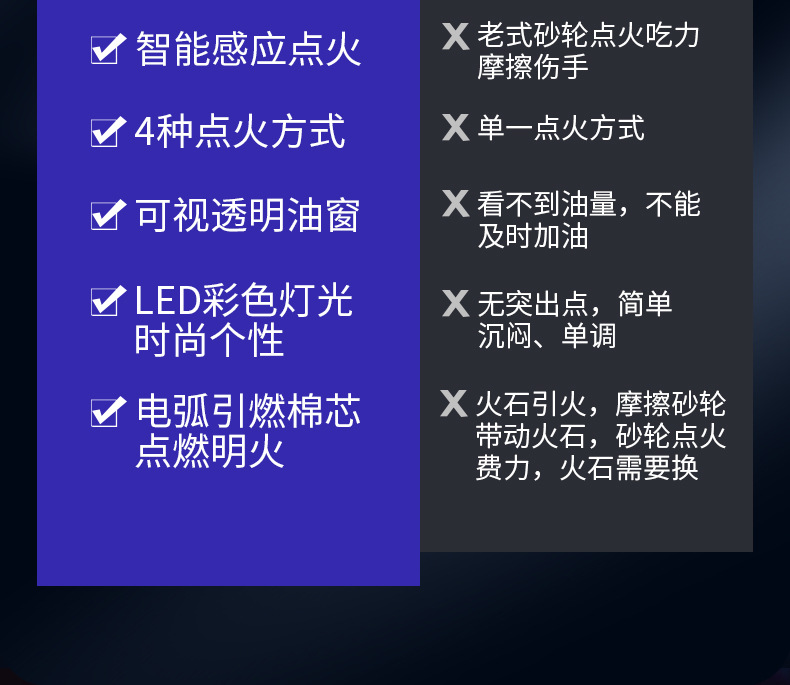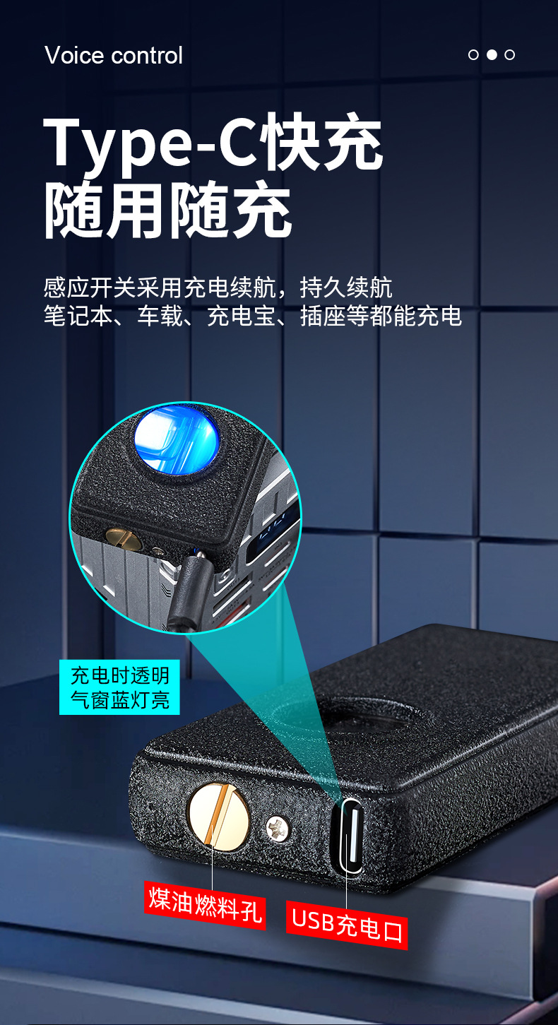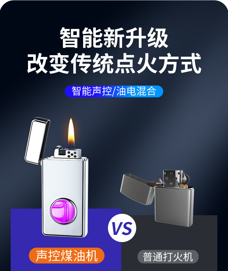 创意金属声控点火煤油打火机大容量彩灯透明仓商务礼品批发跨境