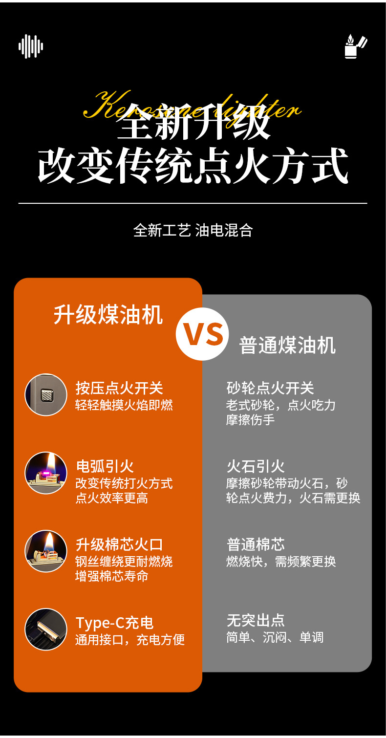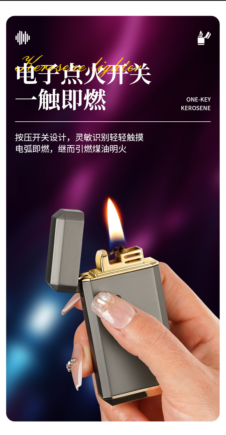 网红便携按键打火煤油打火机复古高档充电混合火机耐用送男友礼物