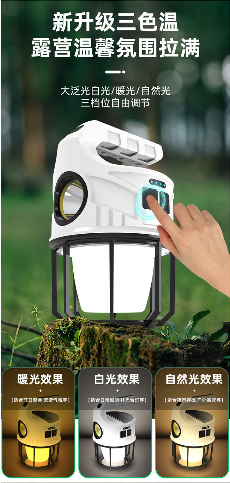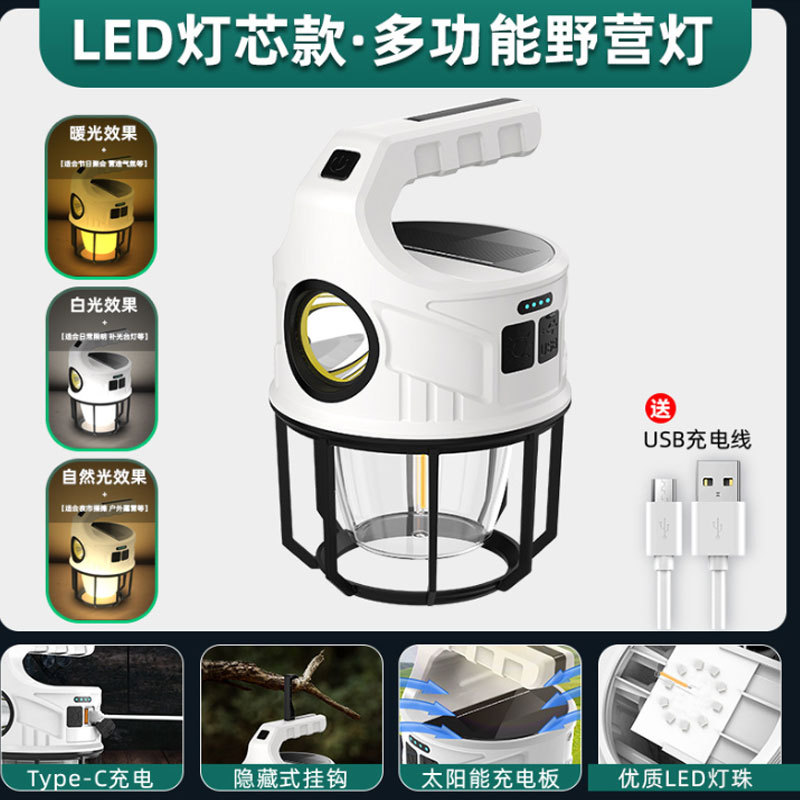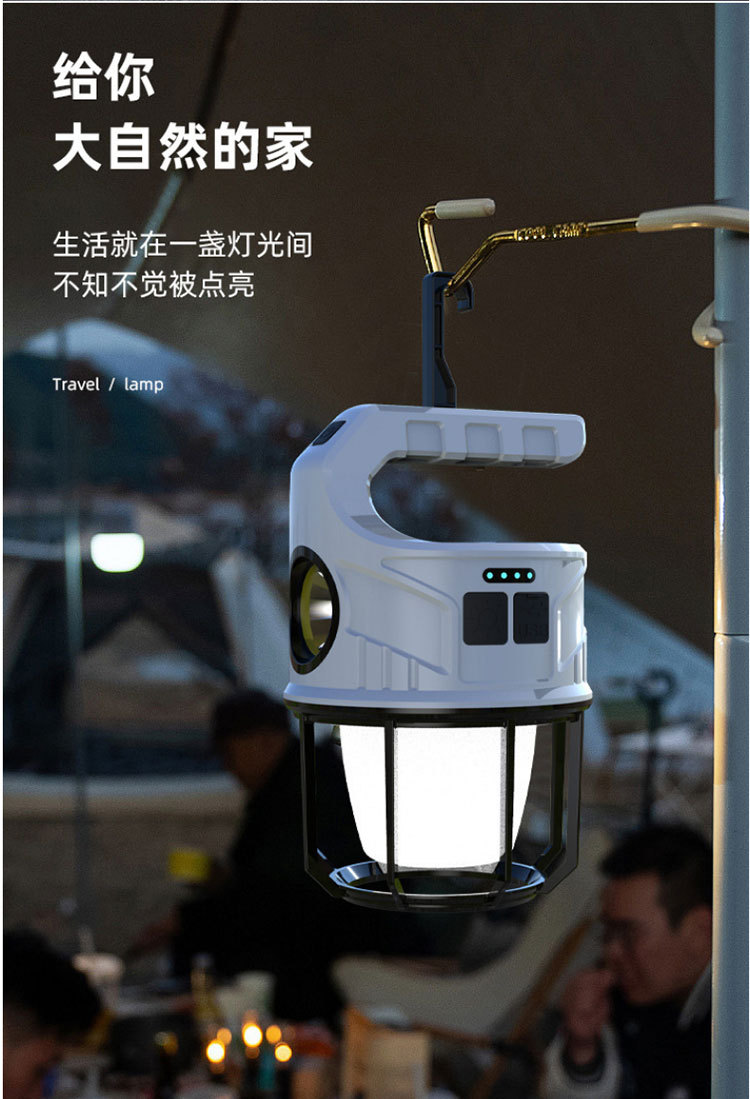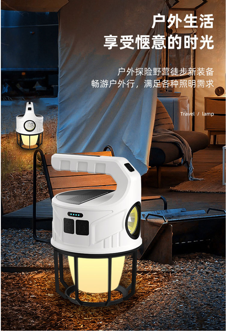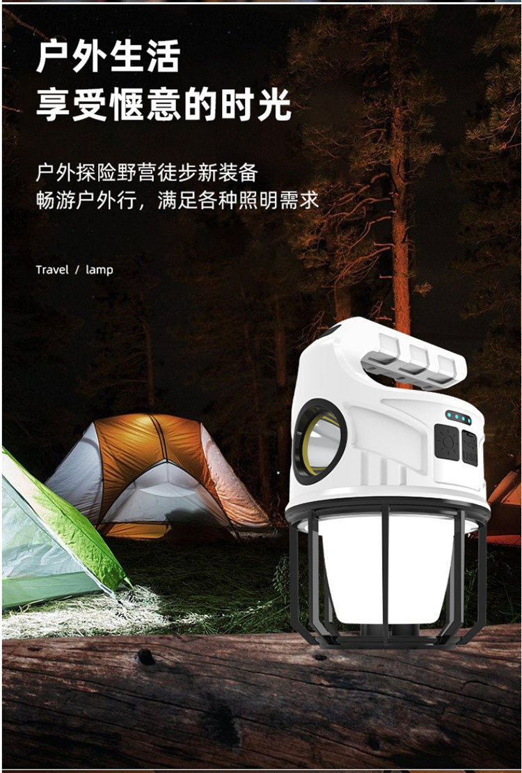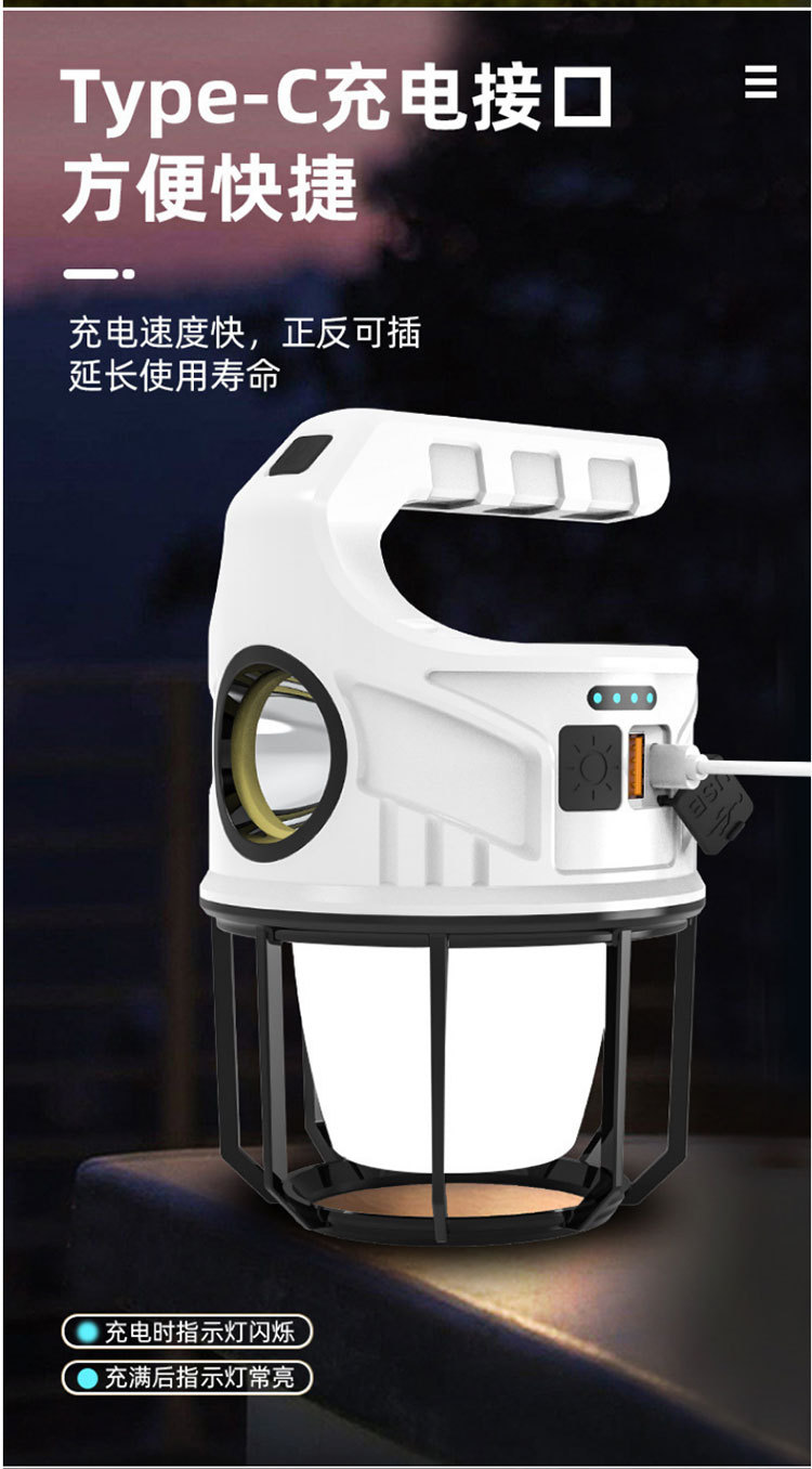 跨境多功能野营LED强光手提灯户外USB充电氛围露营应急照明手电筒