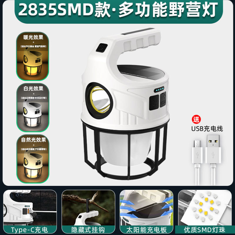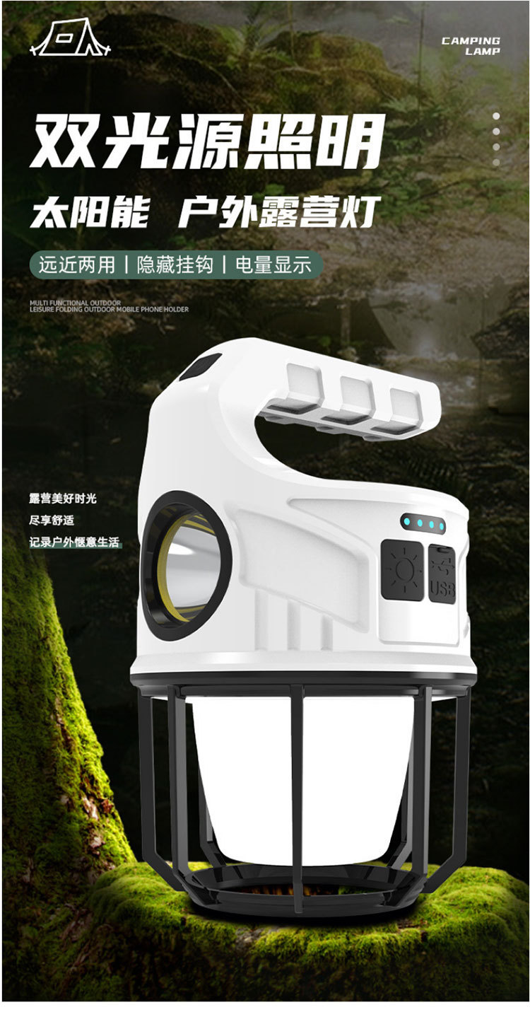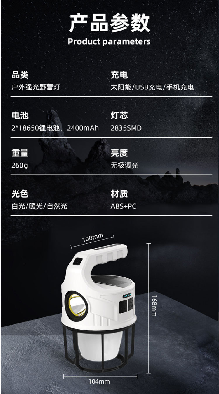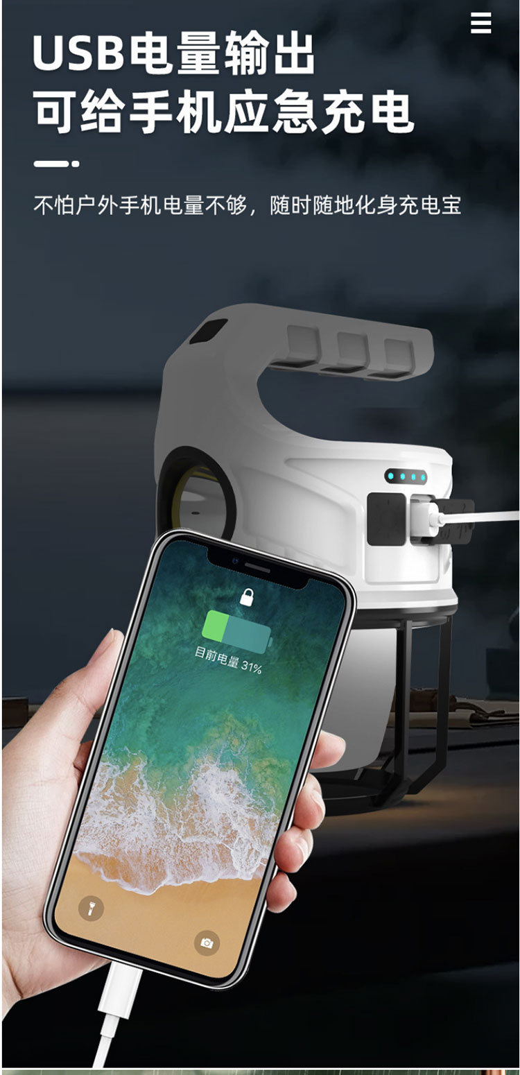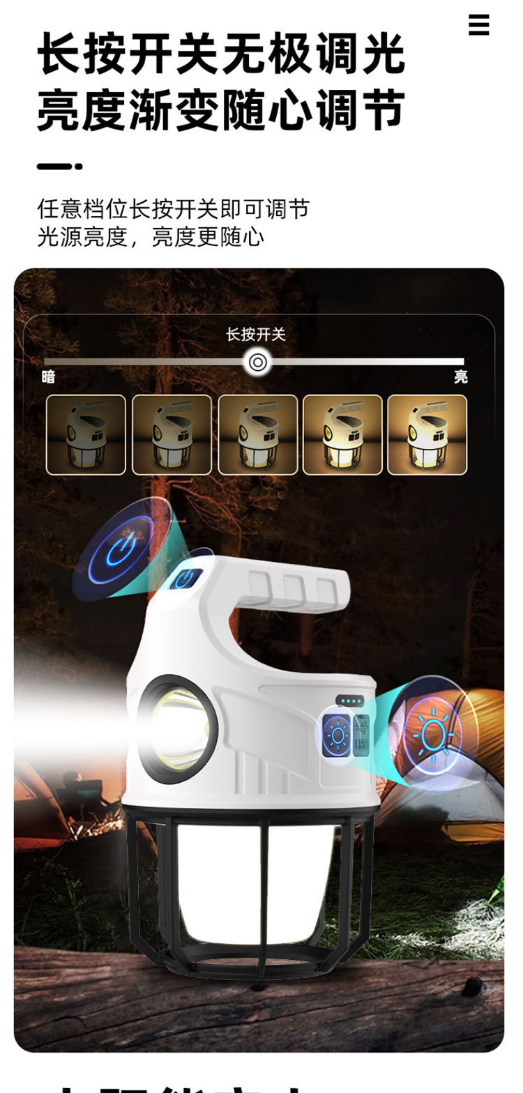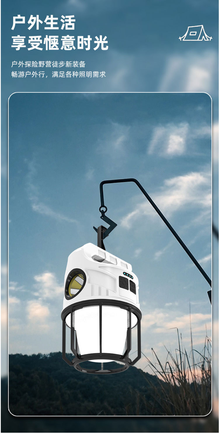 跨境多功能野营LED强光手提灯户外USB充电氛围露营应急照明手电筒