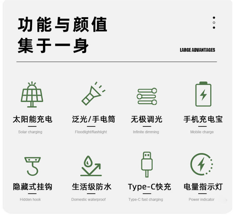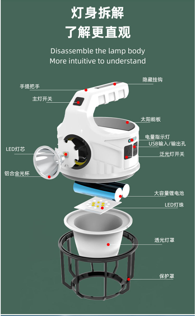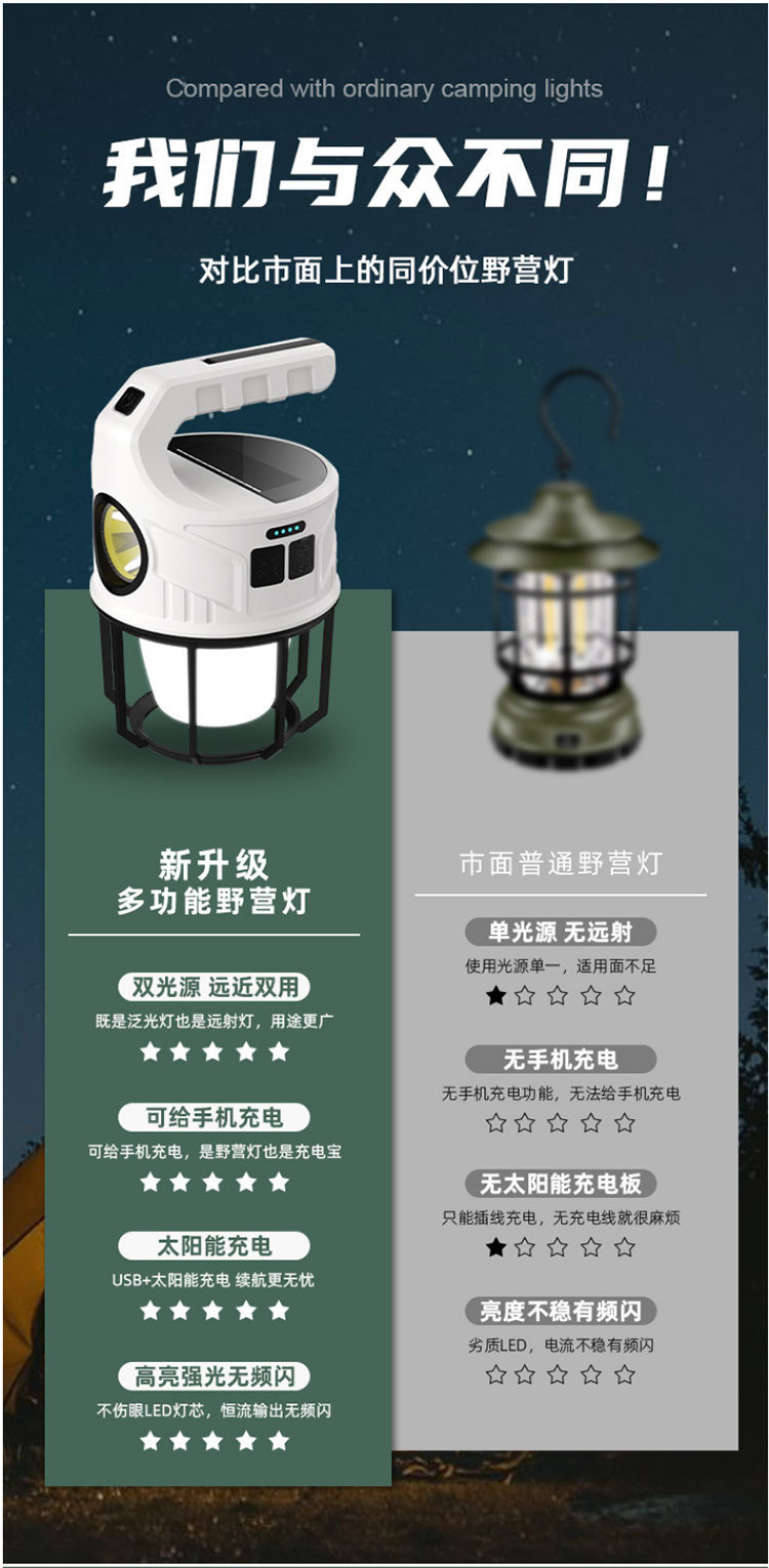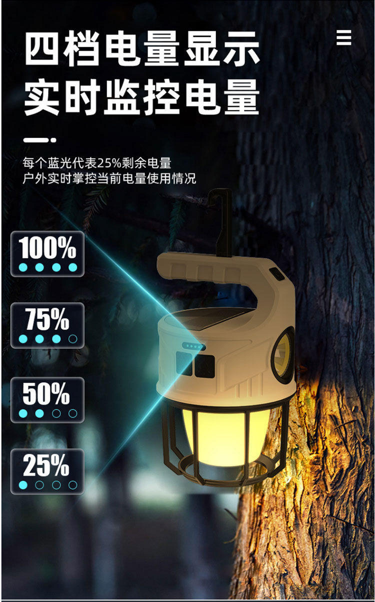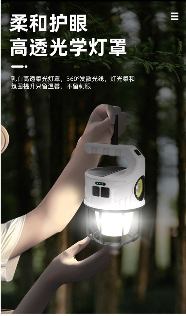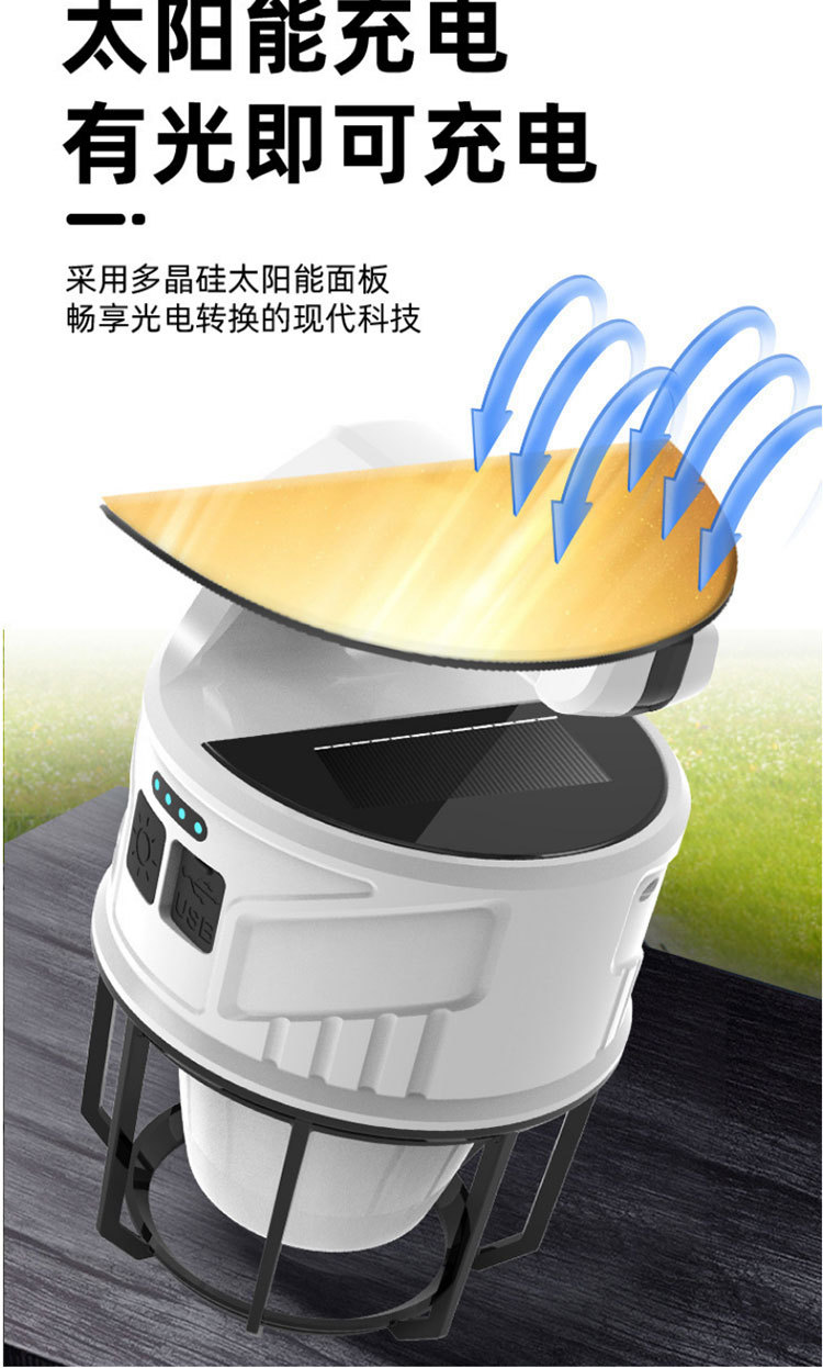 跨境多功能野营LED强光手提灯户外USB充电氛围露营应急照明手电筒