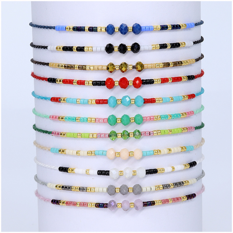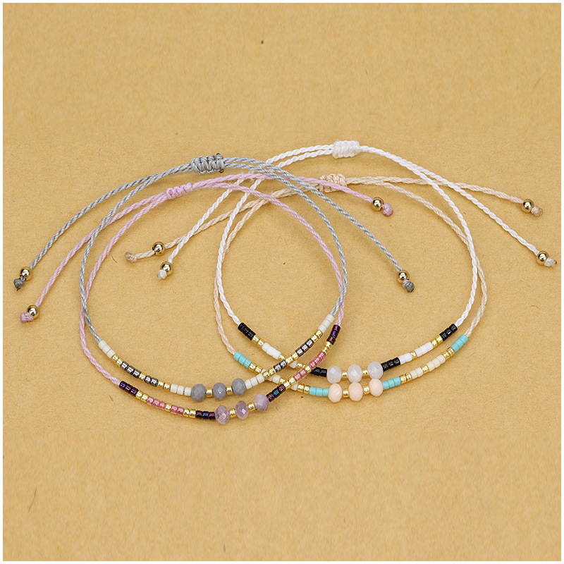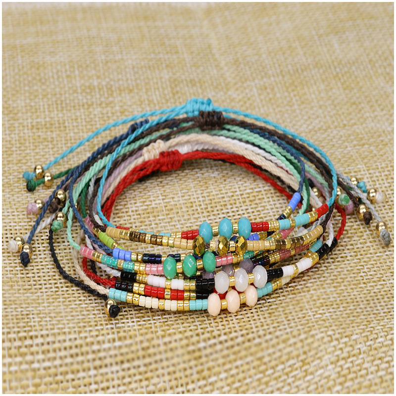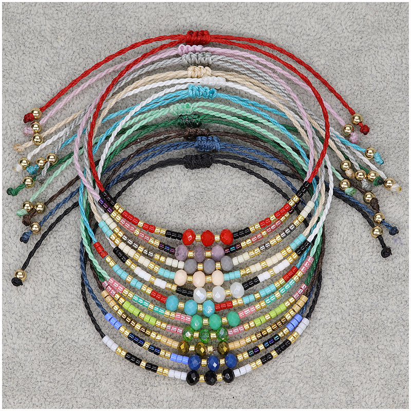 跨境蜡线手工编织手链欧美ins风穿水晶miyuki米珠手串