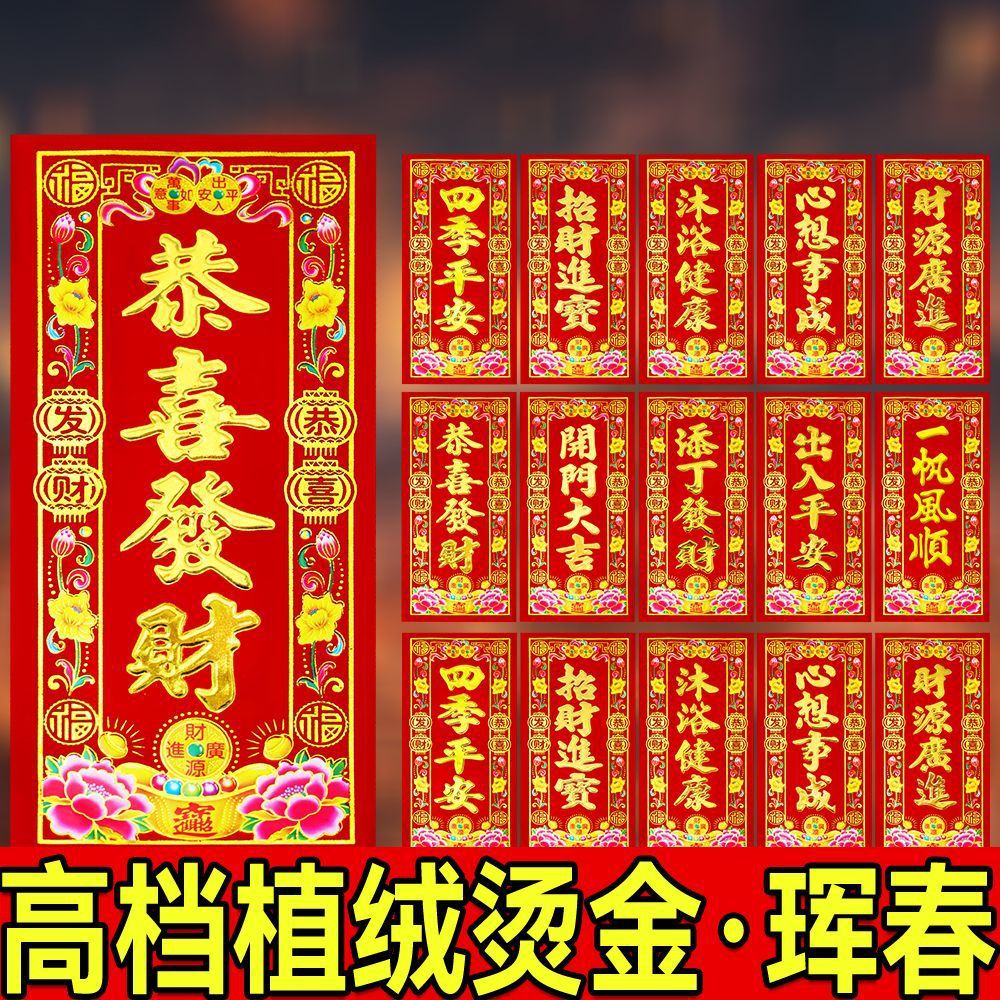 挥春蛇年顺风湾新年挥春批发春节对联春联植绒四字小晖春贴纸利是