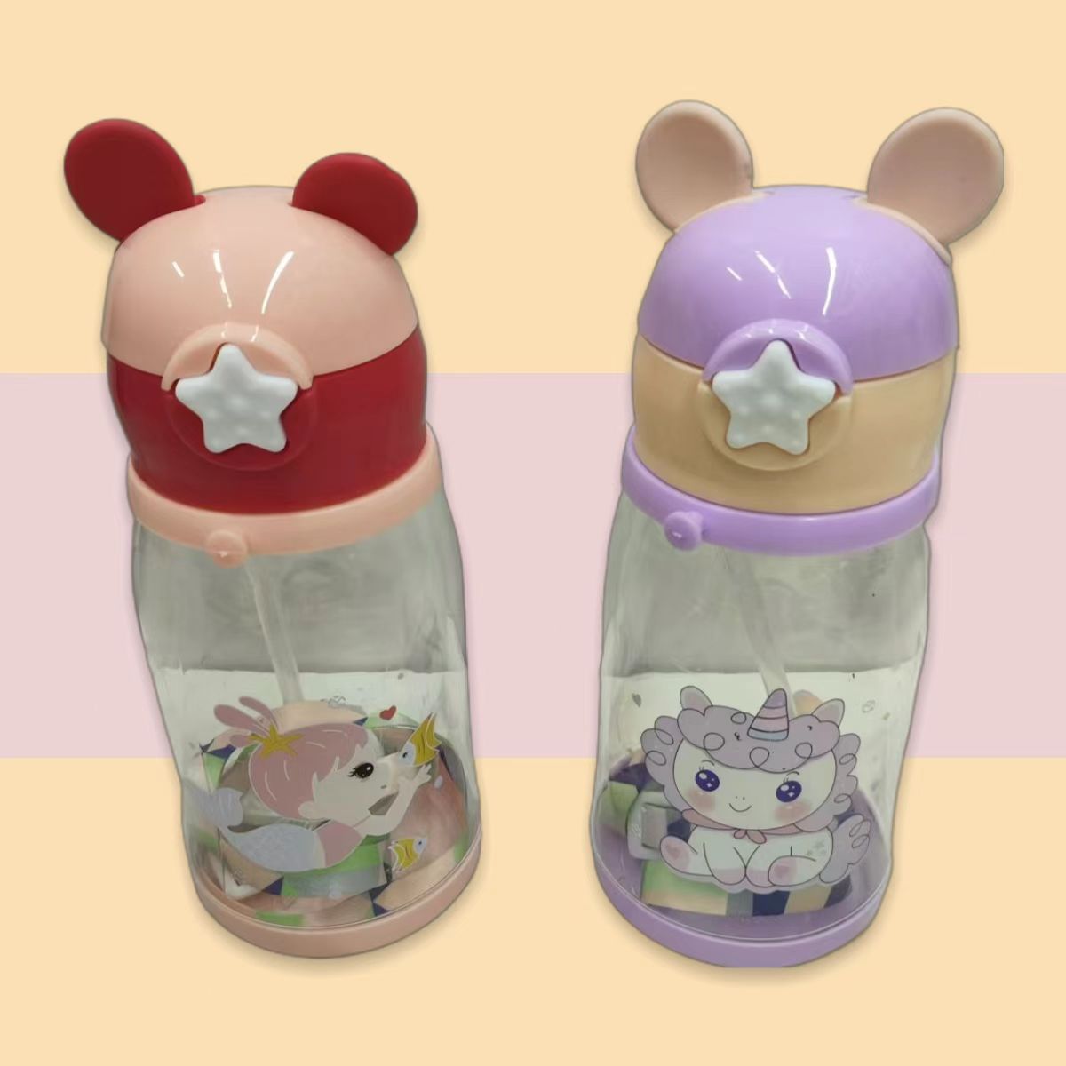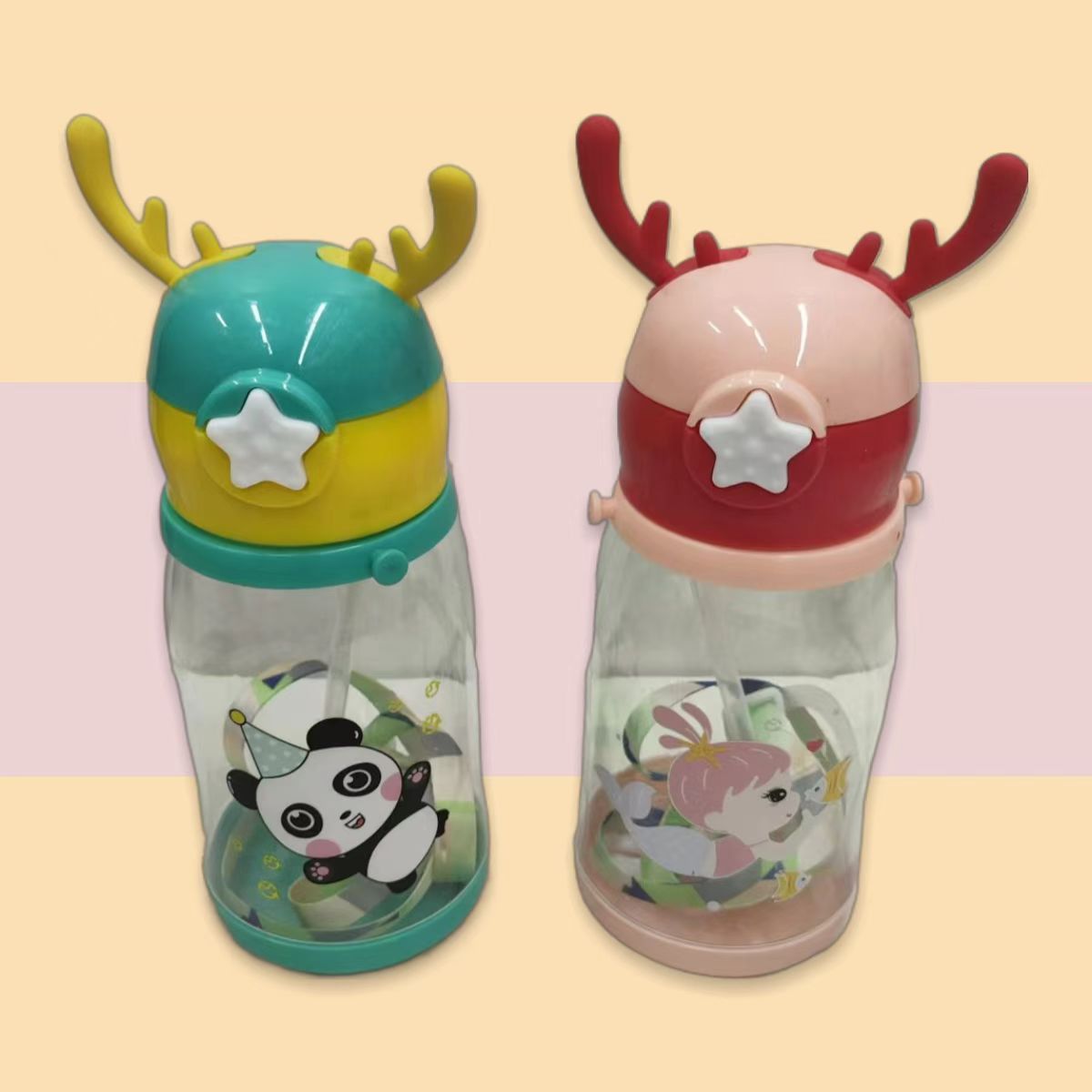 可爱动物水杯 儿童水杯夏季便携吸管杯夏天可爱塑料杯子小学生水