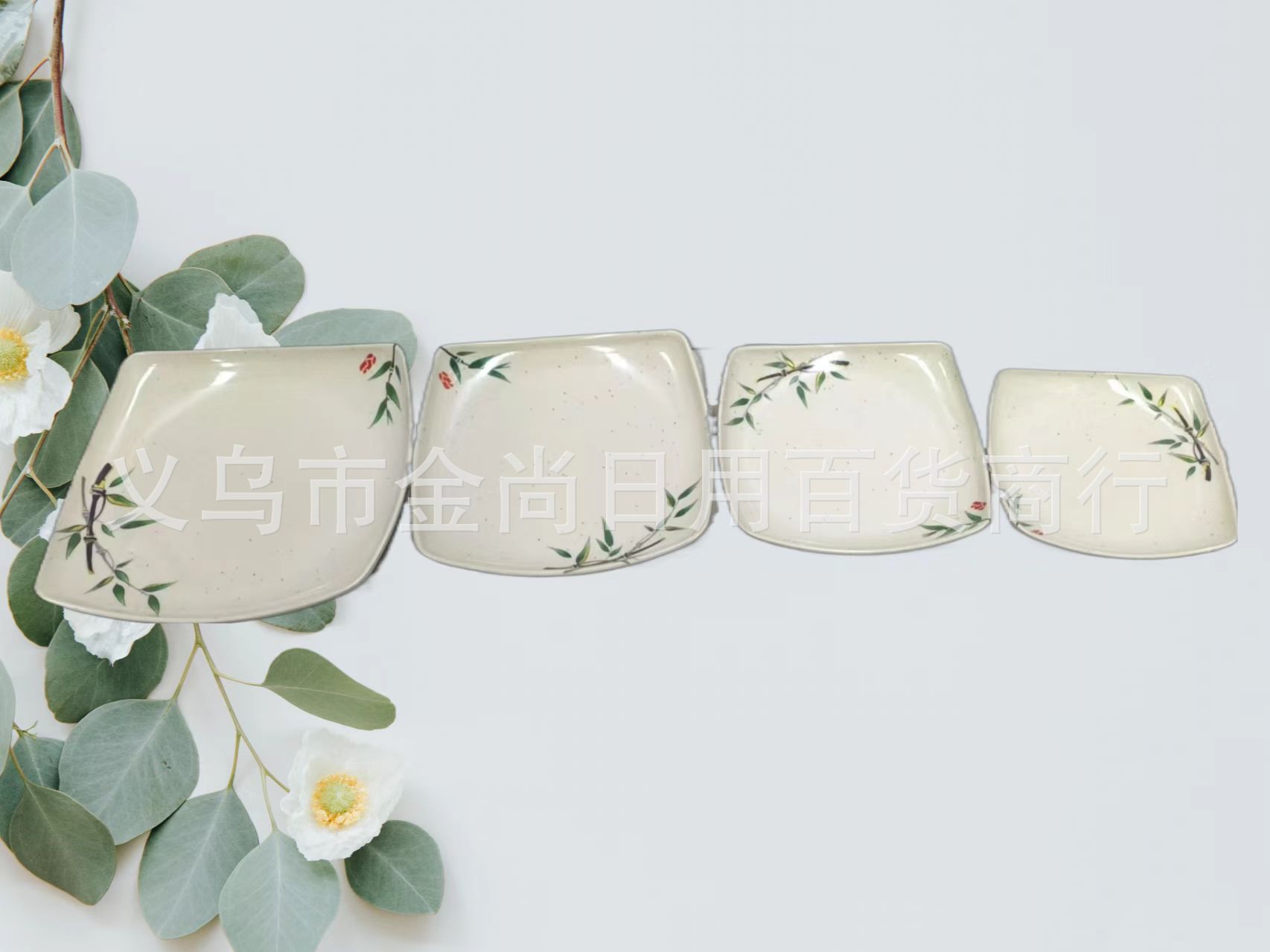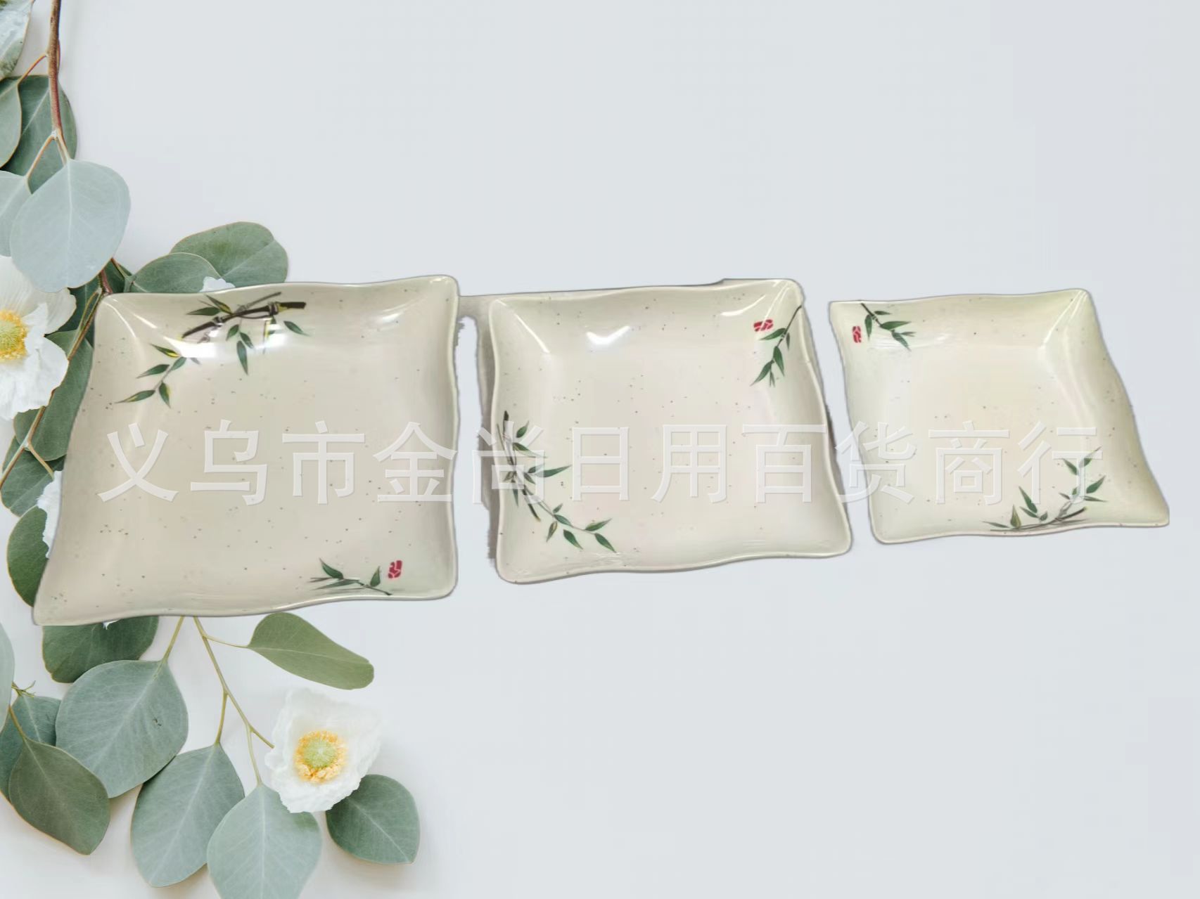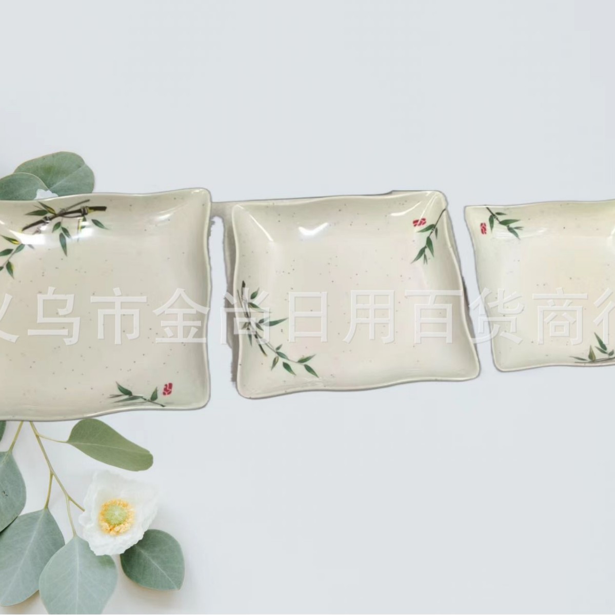 创意古风密胺圆盘酒店火锅酒席菜盘凉菜小吃盘塑料平盘点心盘商用