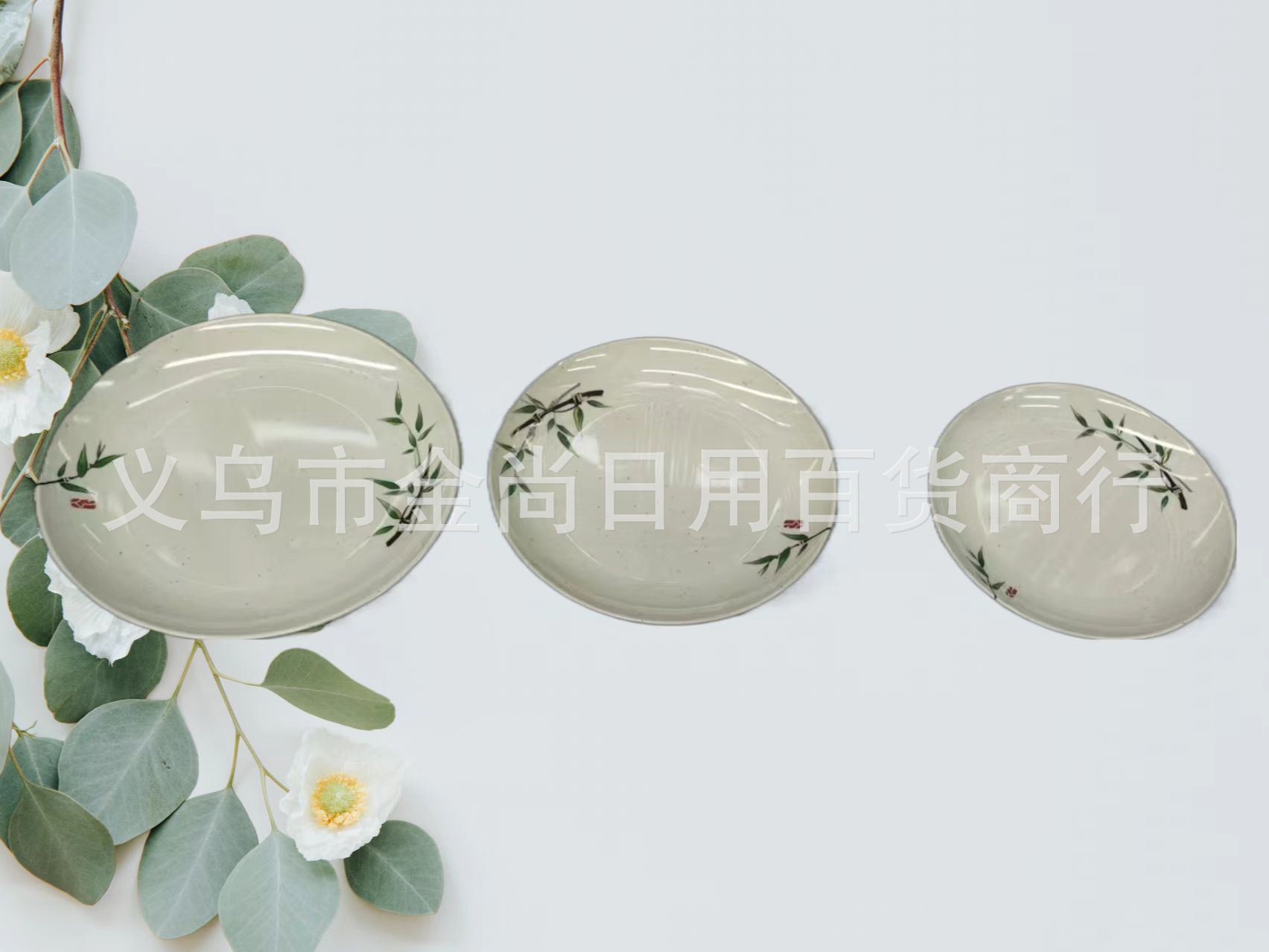 密胺创意古风圆盘圆碗菜盘凉菜小吃盘塑料平盘点心盘商用