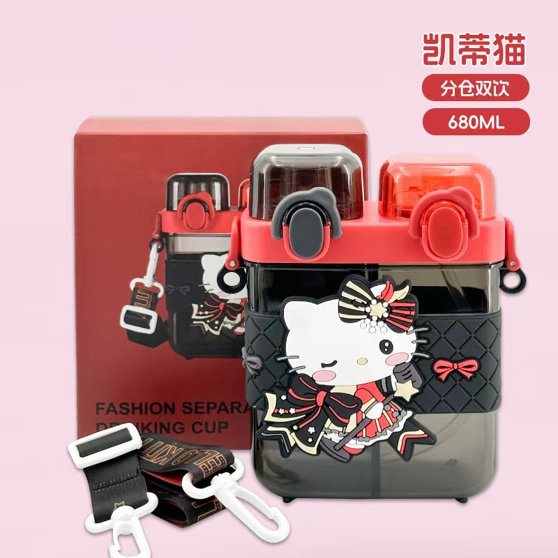 各种可爱图案儿童水杯学生高颜值卡通吸管杯分仓双饮便携塑料水壶