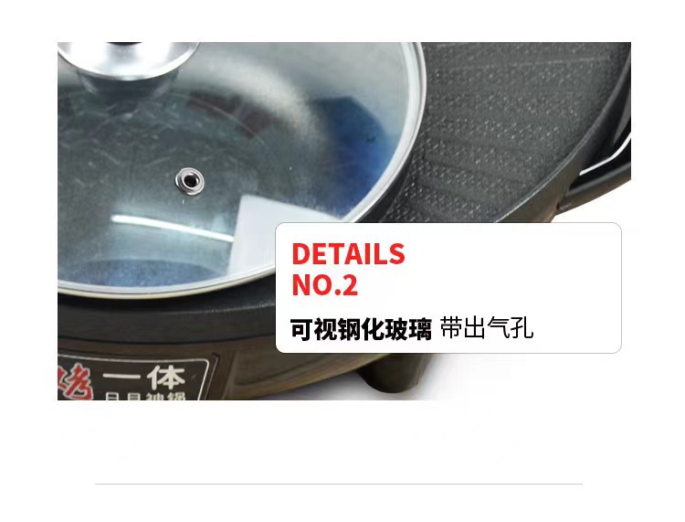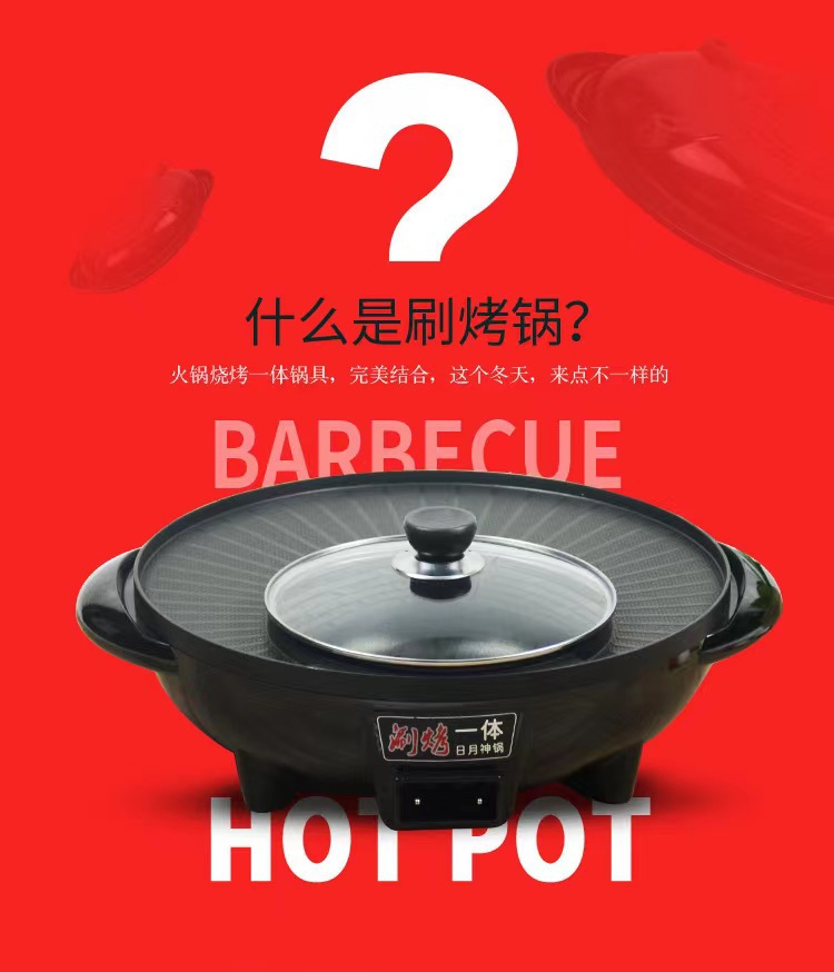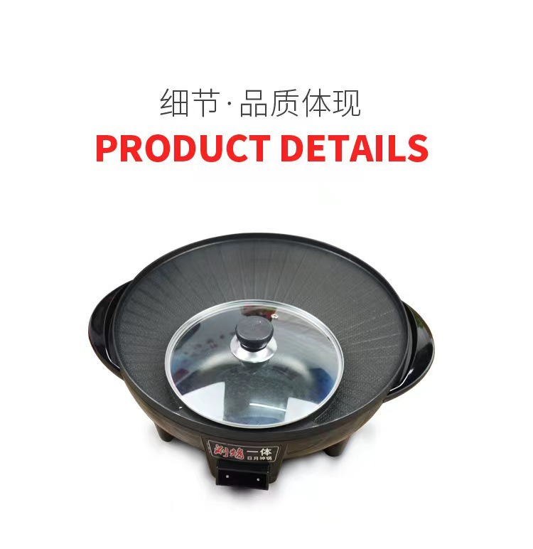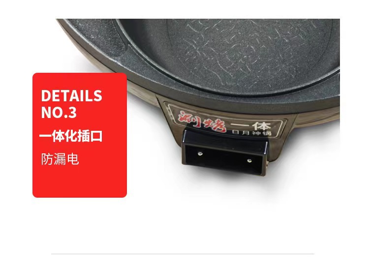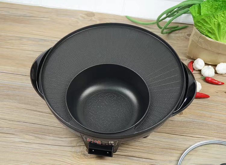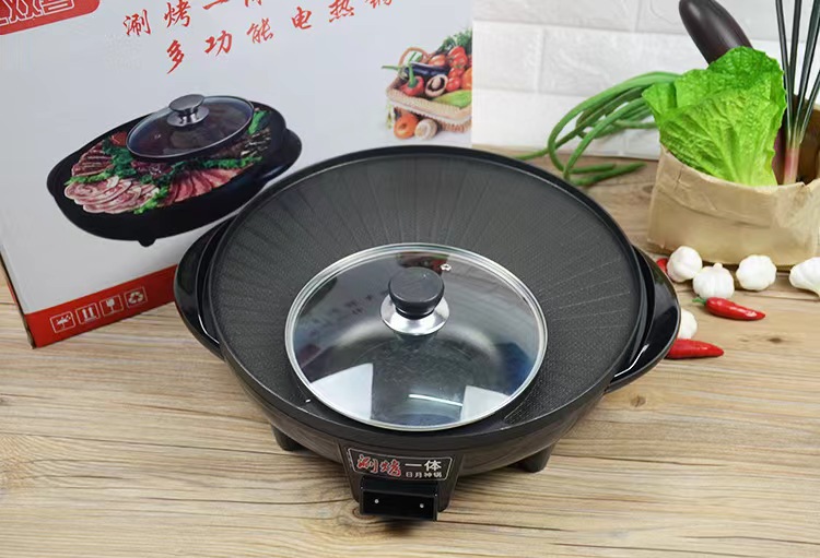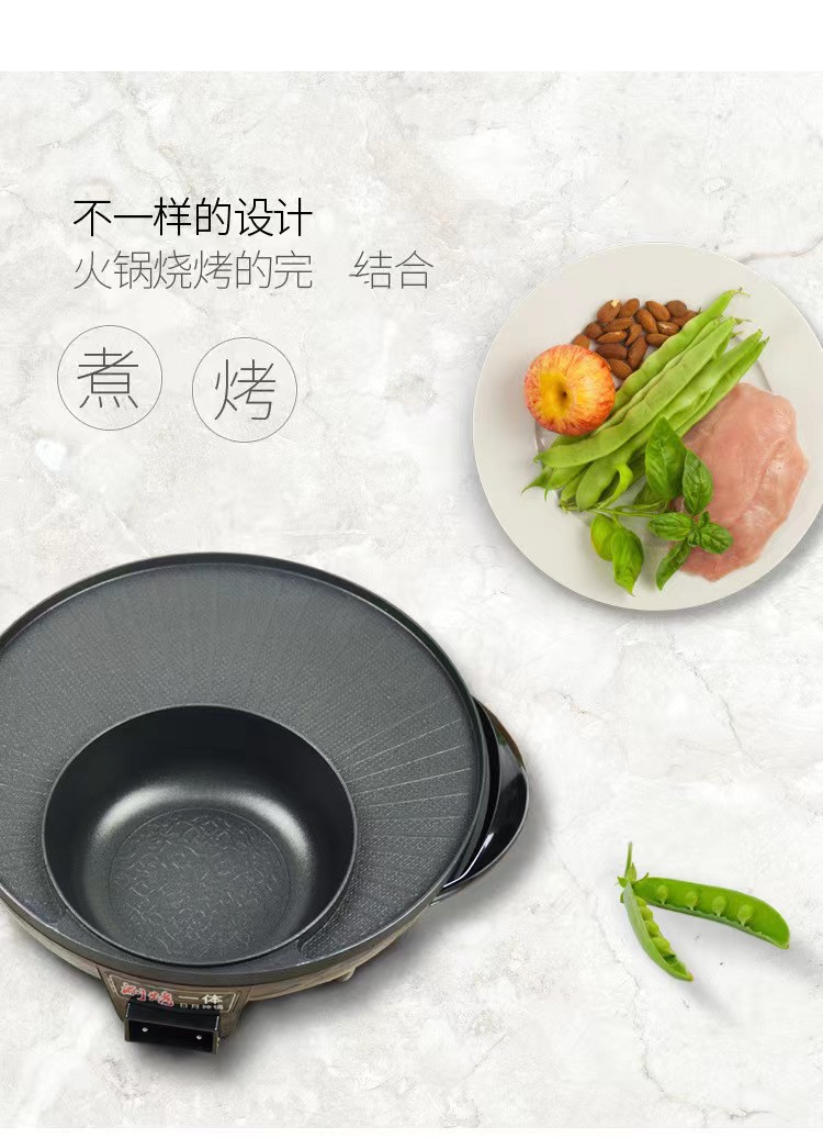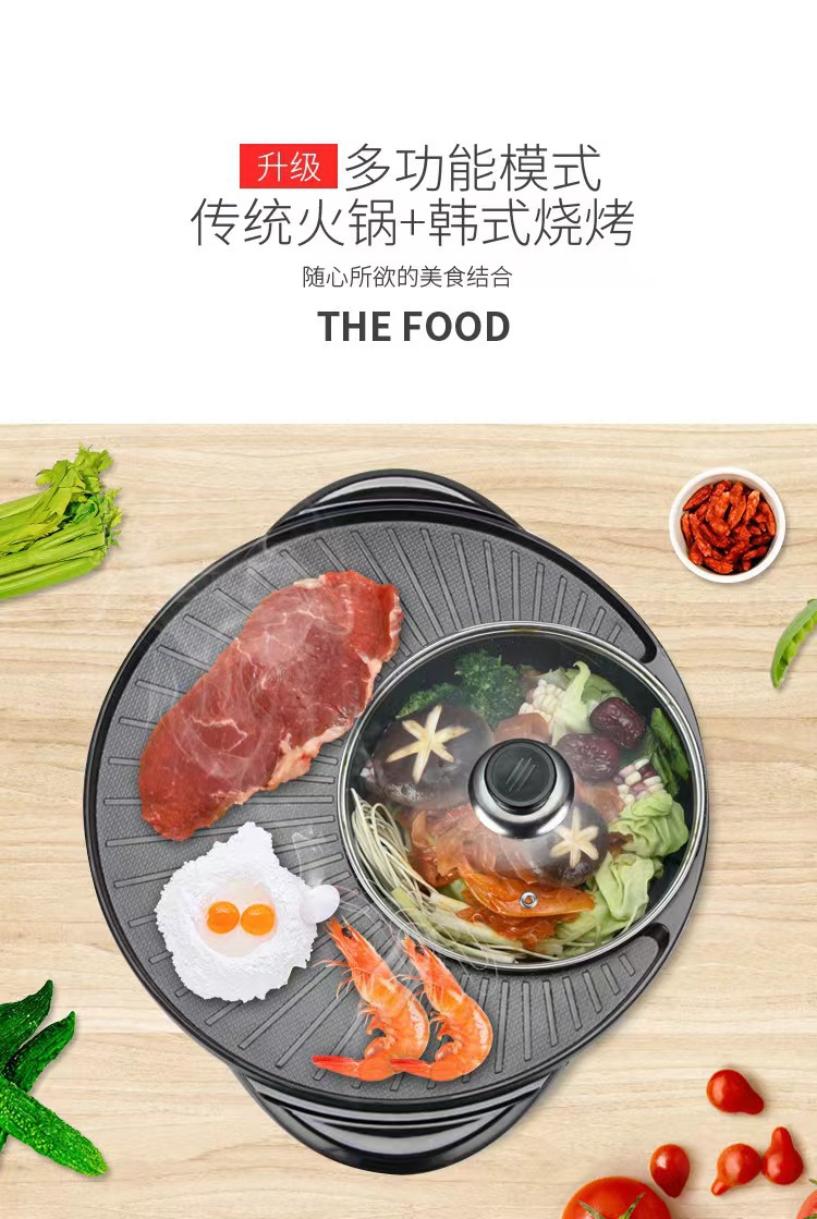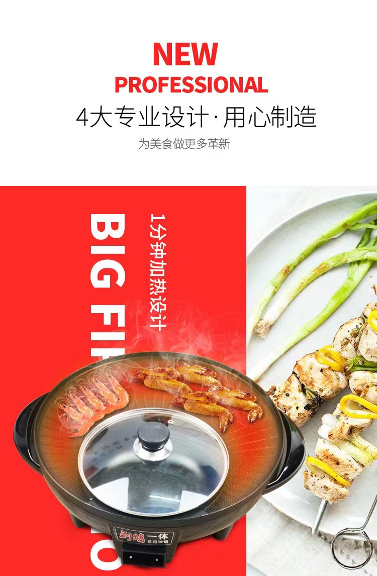 圆形涮烤一体锅家用多功能电火锅烤肉锅无涂层电火锅涮烤电热火锅