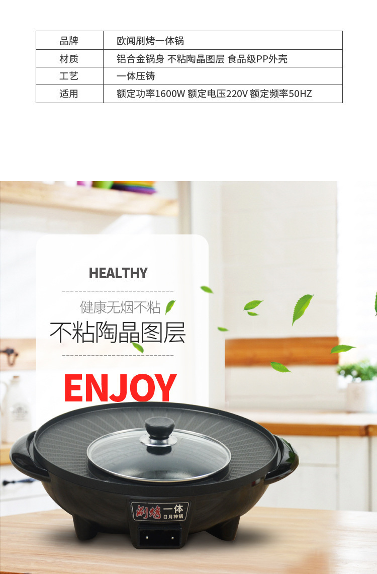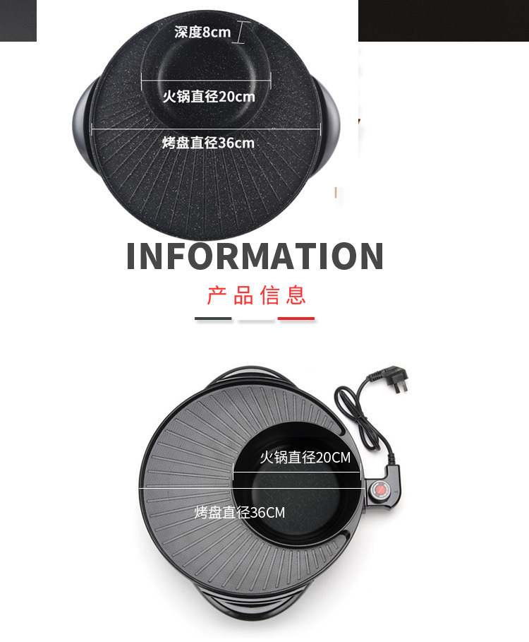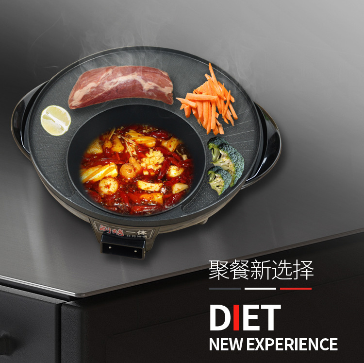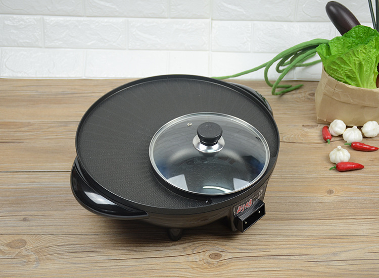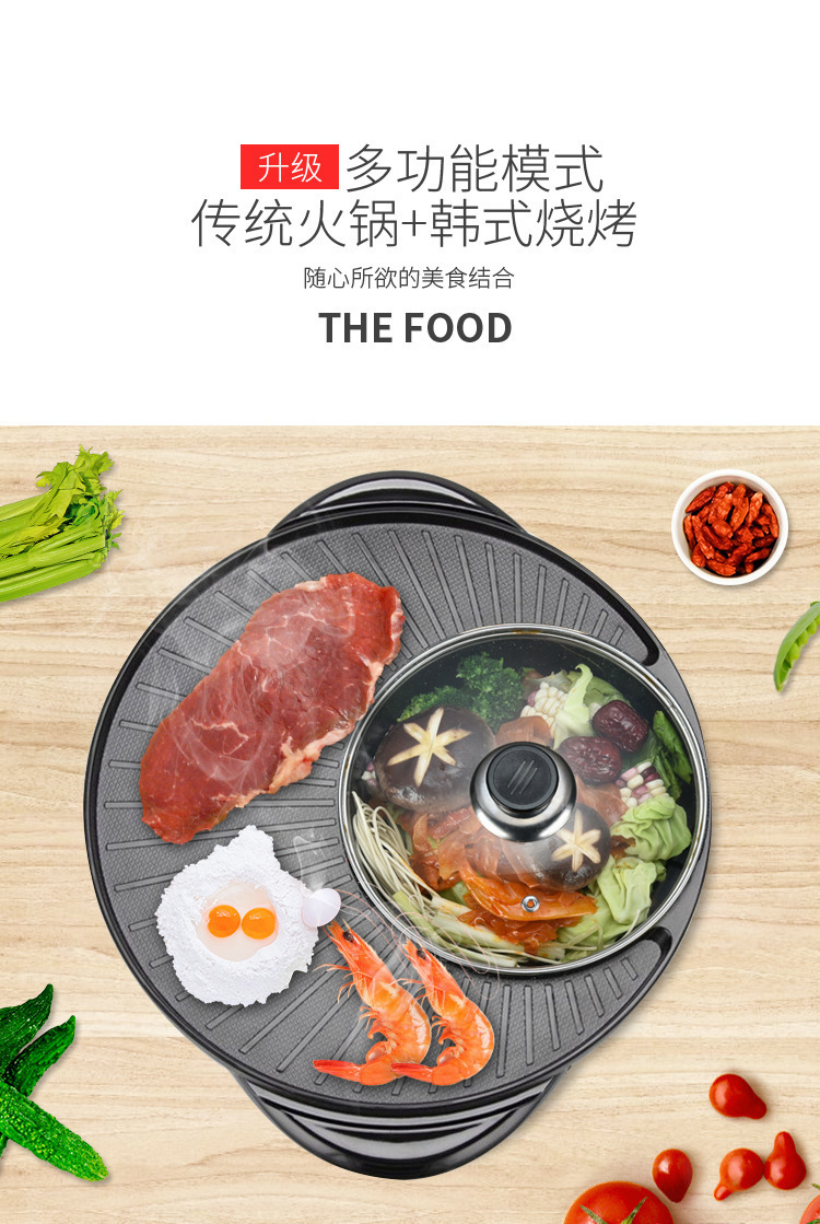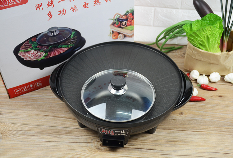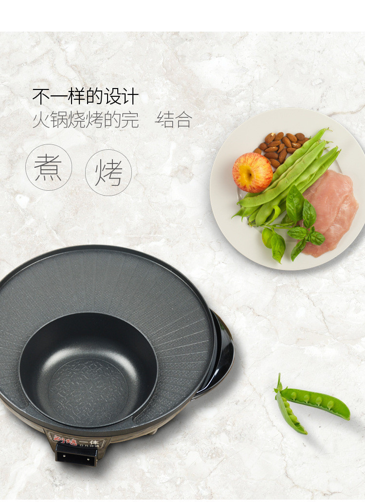 圆形锅不粘锅涮烤一体电火锅多功能家用烤锅电烧烤炉烤肉机通用锅