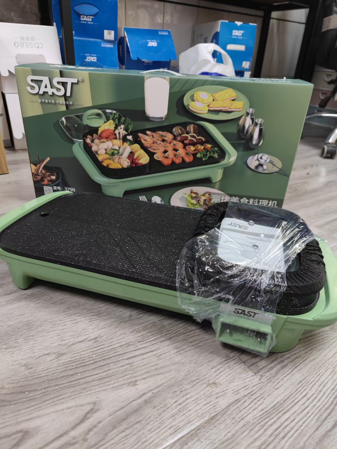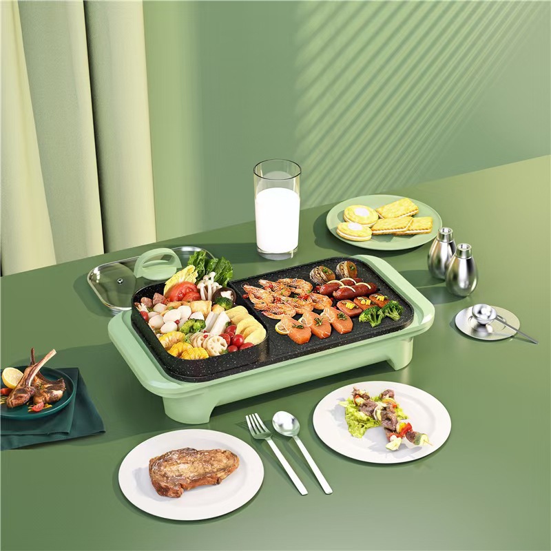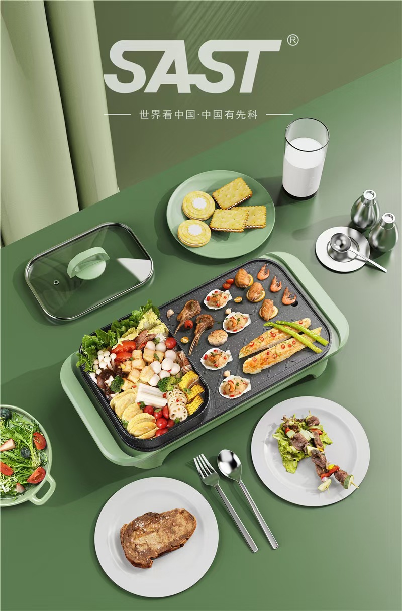 先科多功能不粘电煮锅家用电火锅烤肉锅涮烤电烤盘一体锅宿舍批发