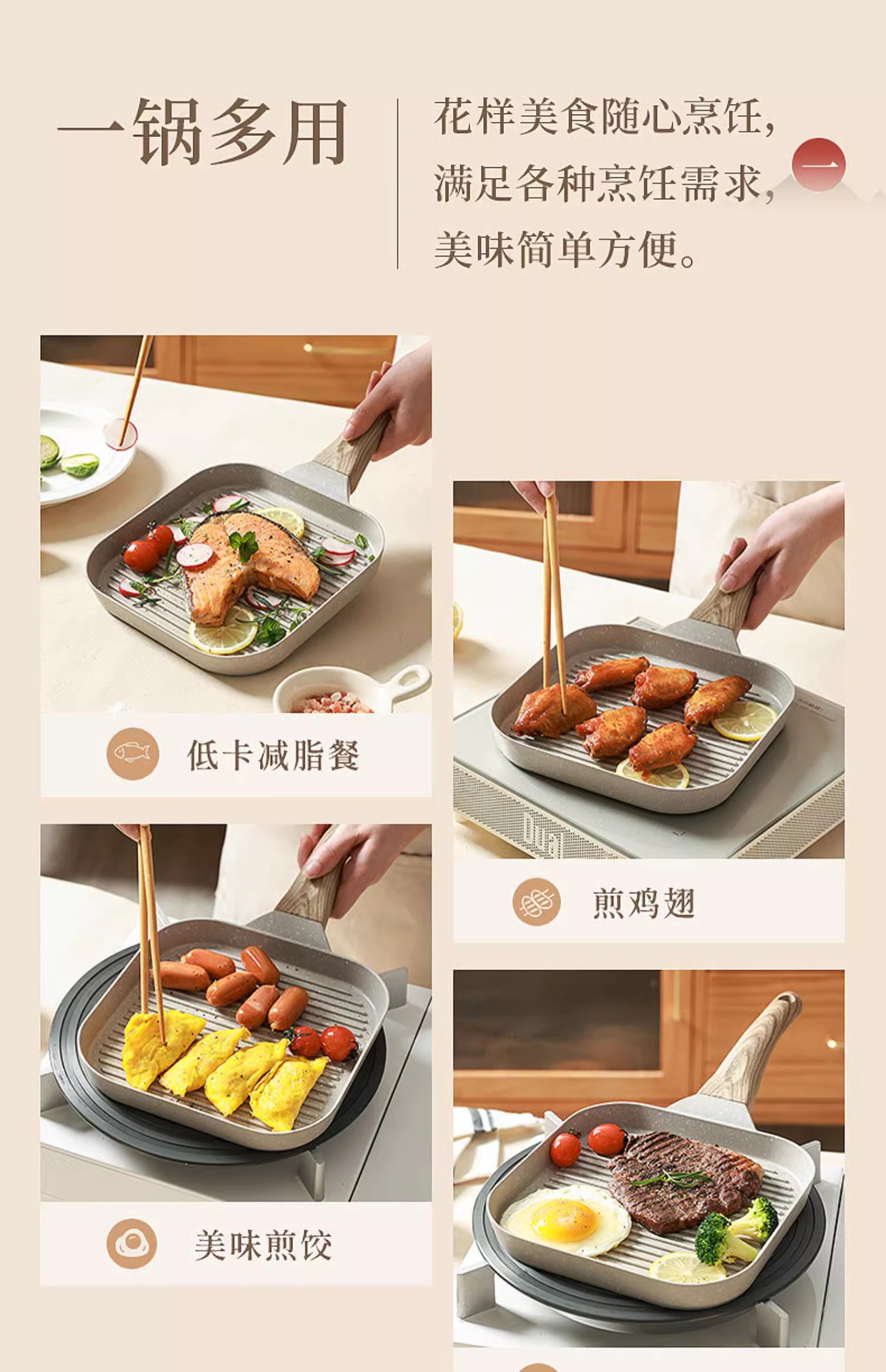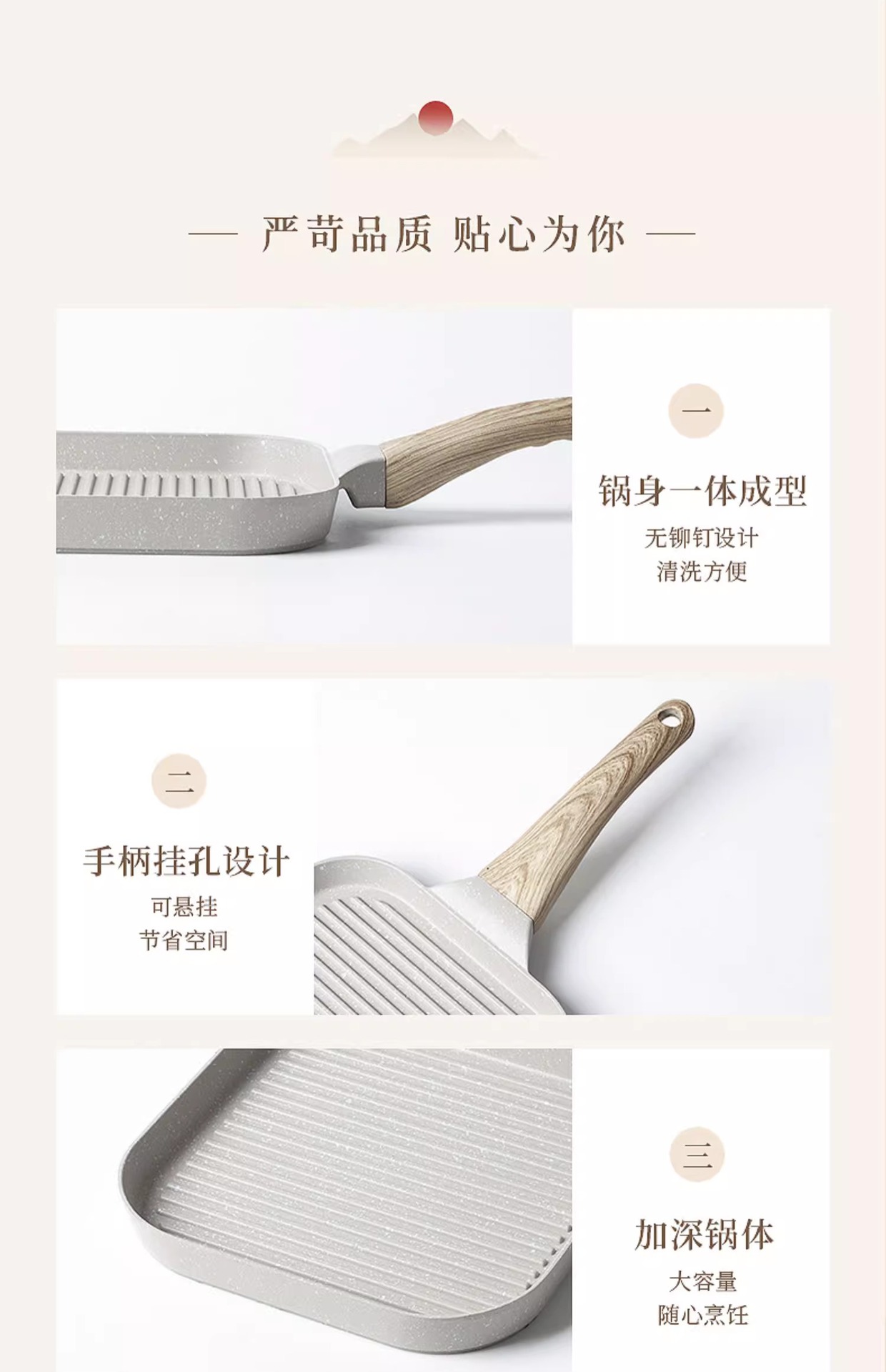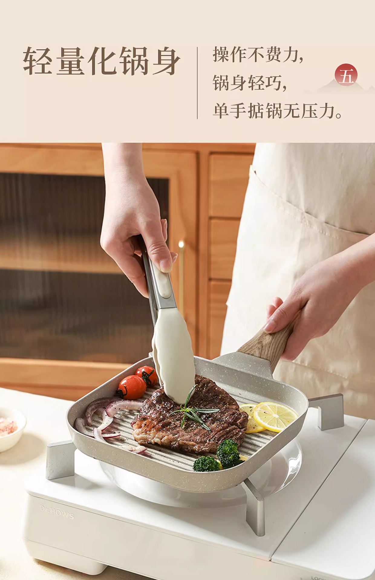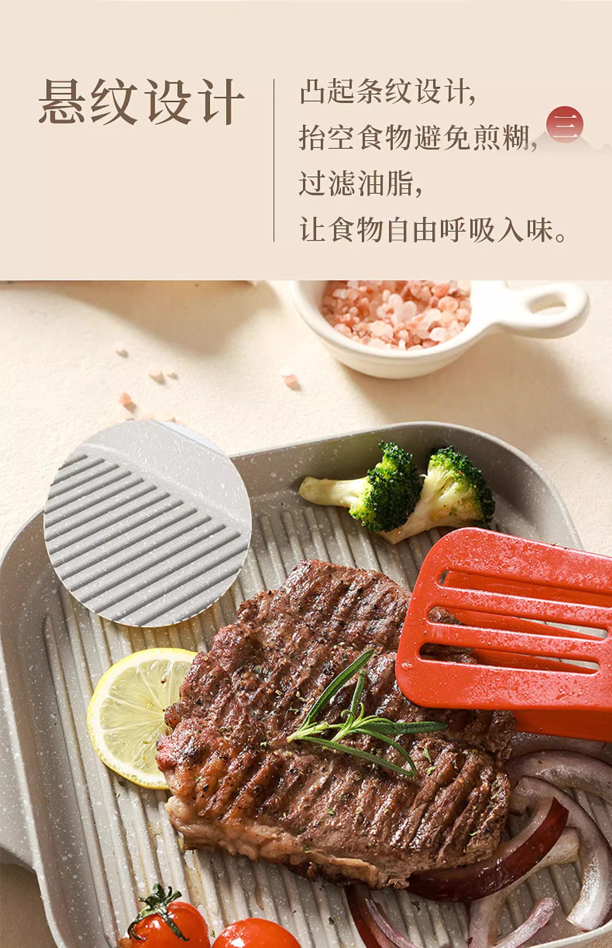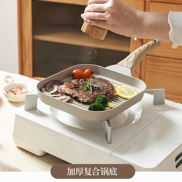 麦饭石牛排烤盘不粘锅煎盘烧烤牛排锅燃气灶适用家用烤肉锅定制