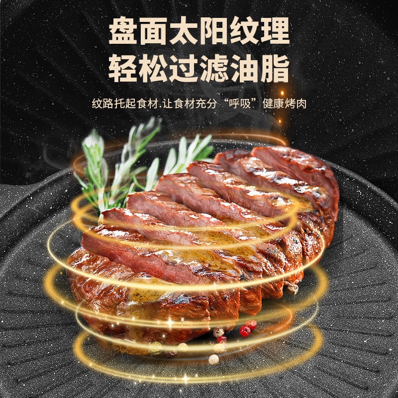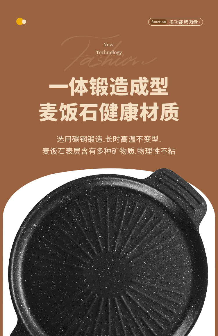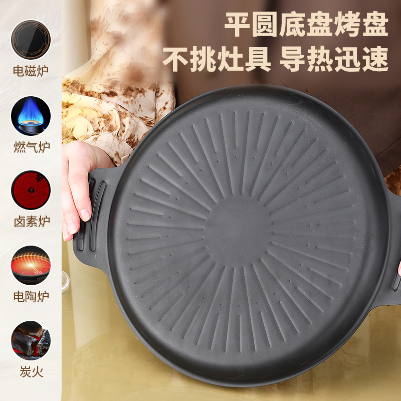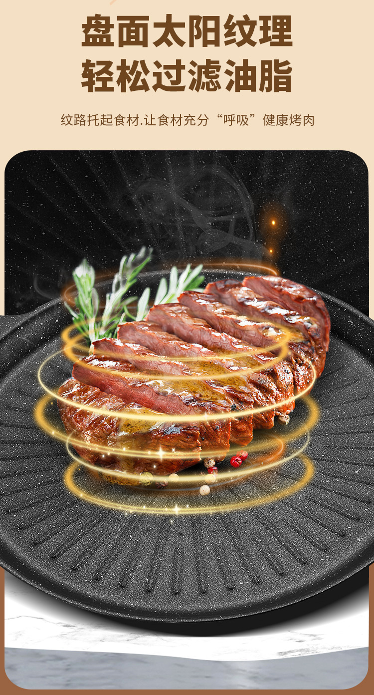 日式麦饭石烧烤盘家用不粘无烟烤肉锅电磁炉烤盘户外铁板烧烤肉盘
