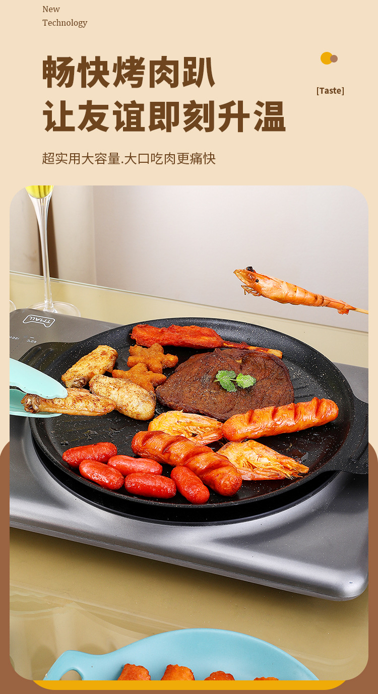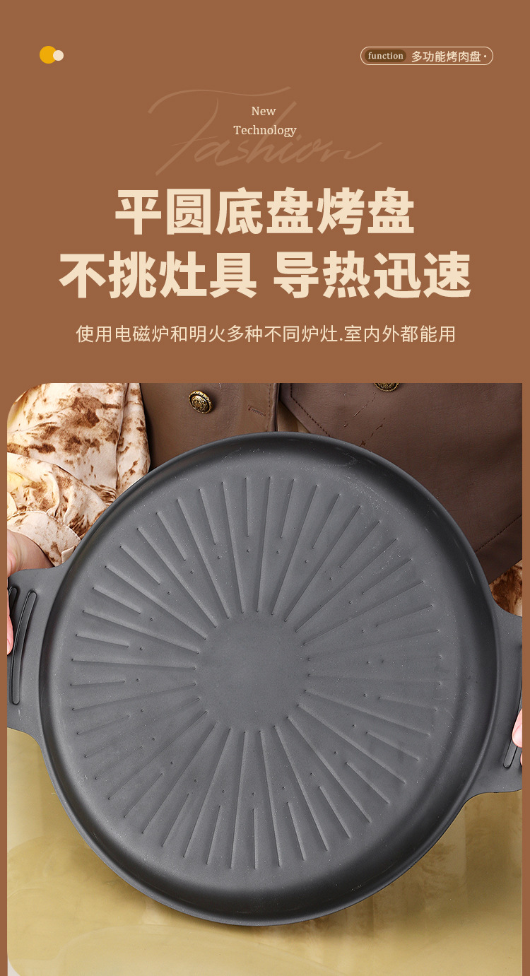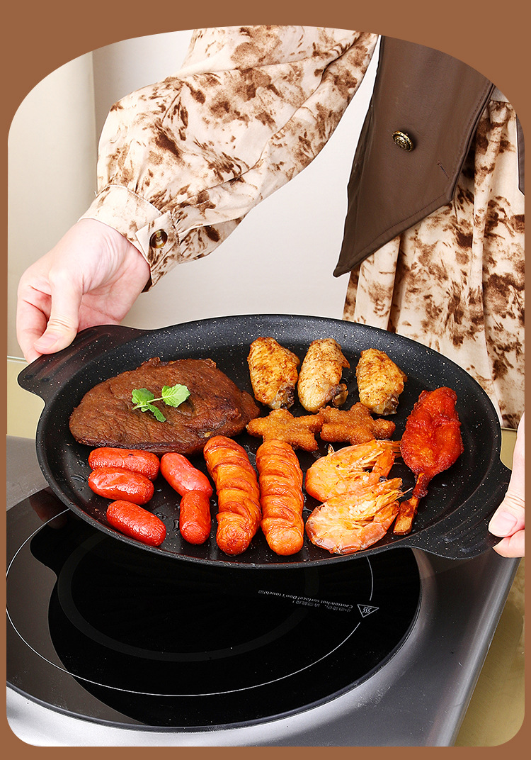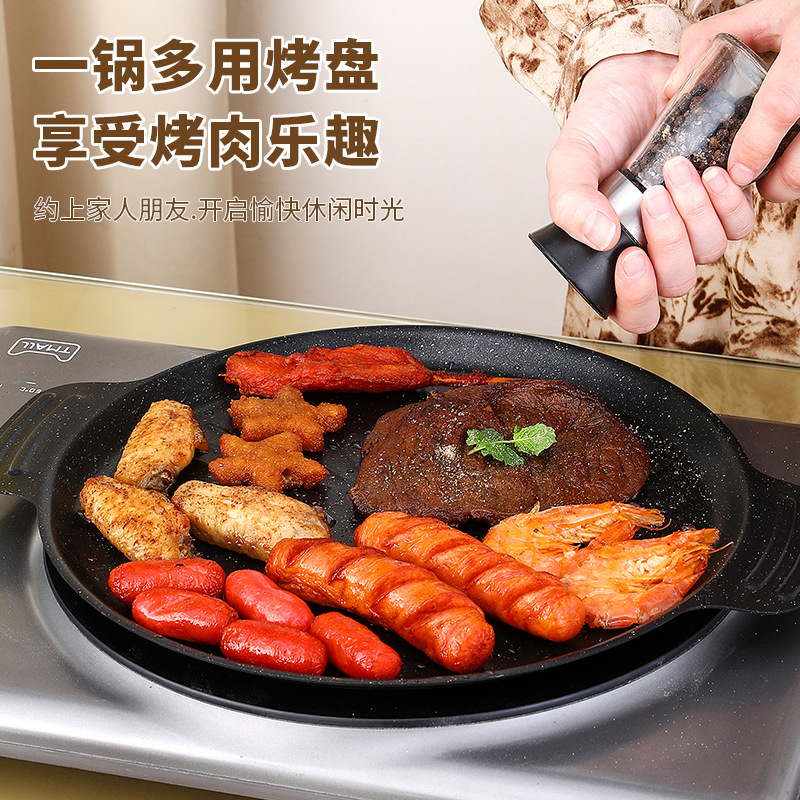 日式麦饭石烧烤盘家用不粘无烟烤肉锅电磁炉烤盘户外铁板烧烤肉盘