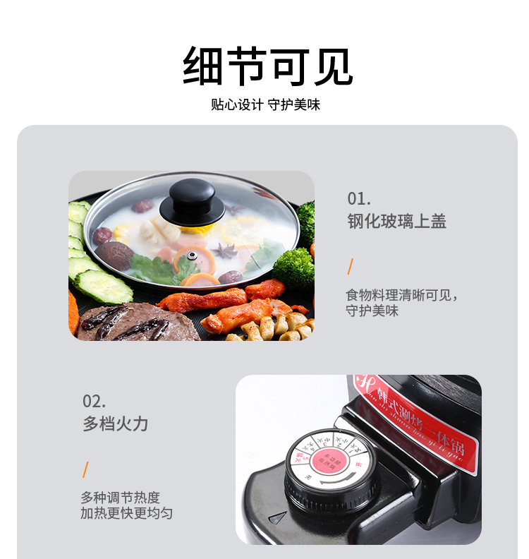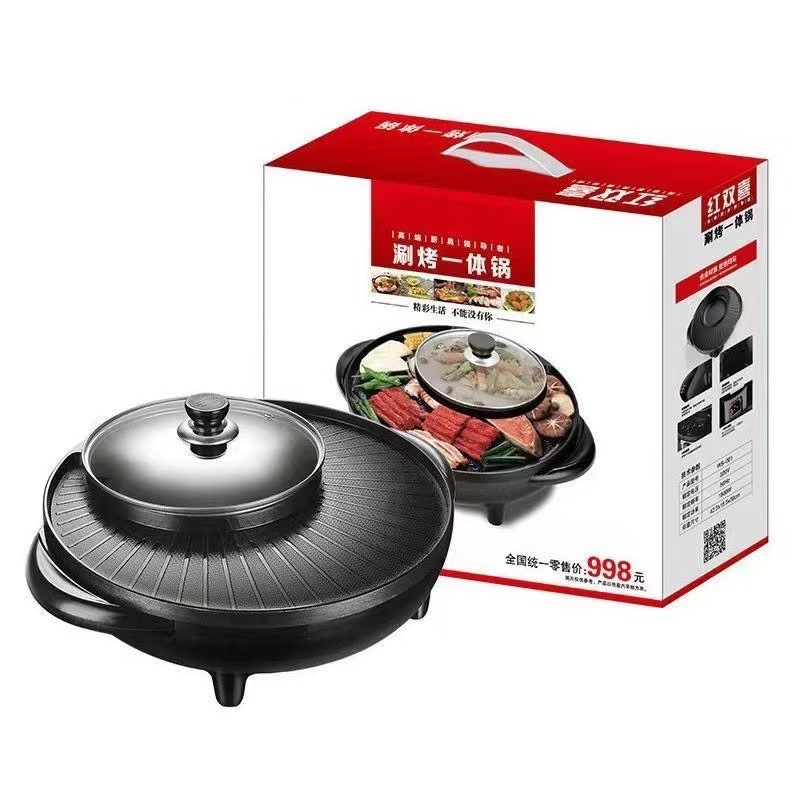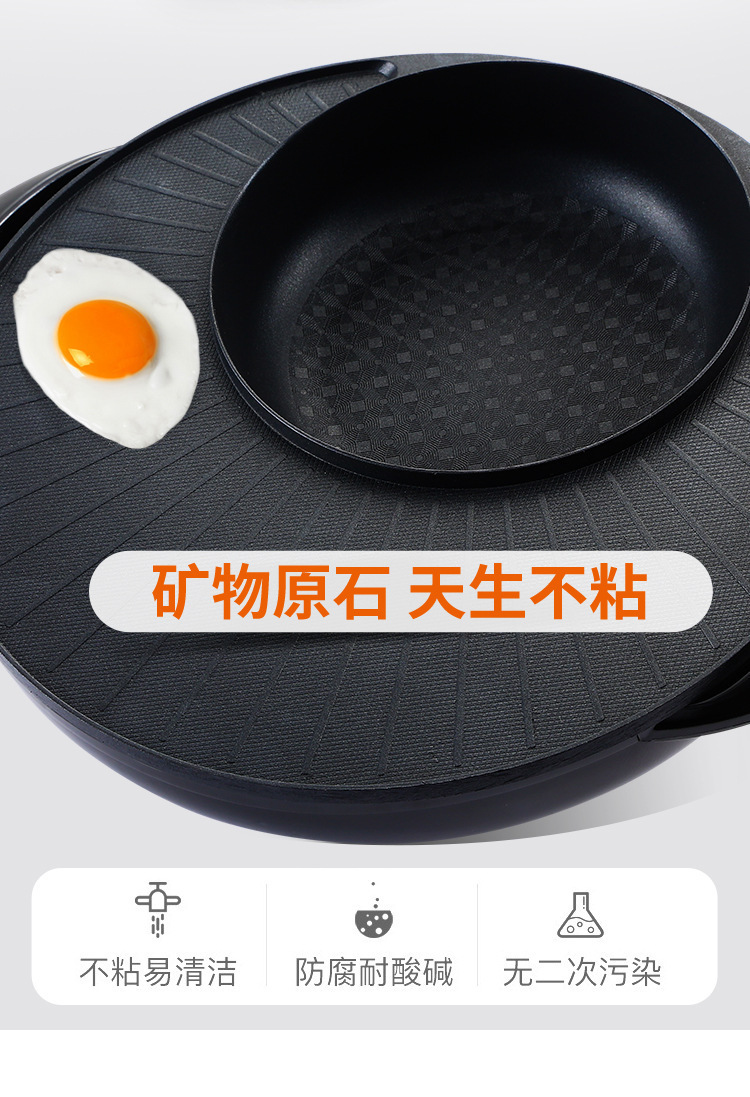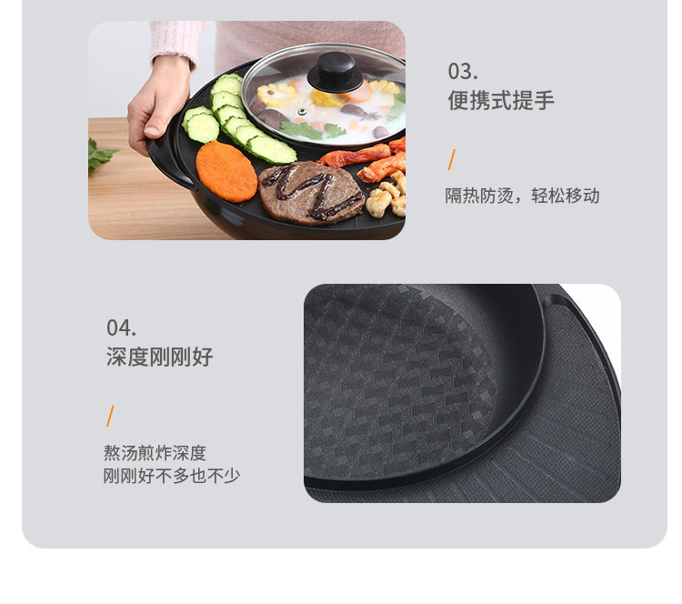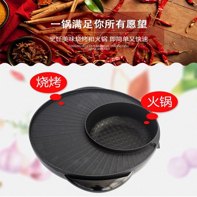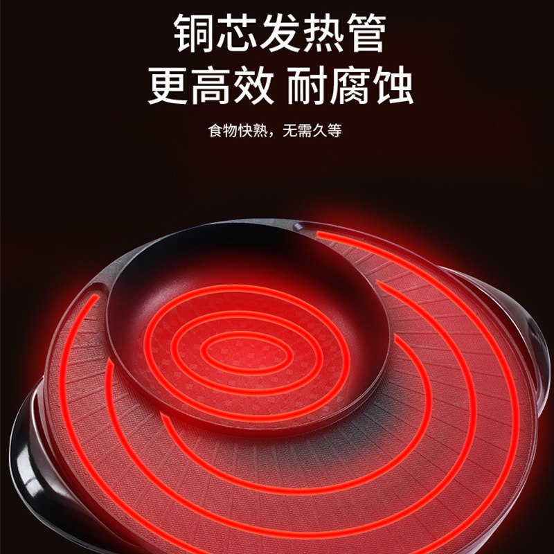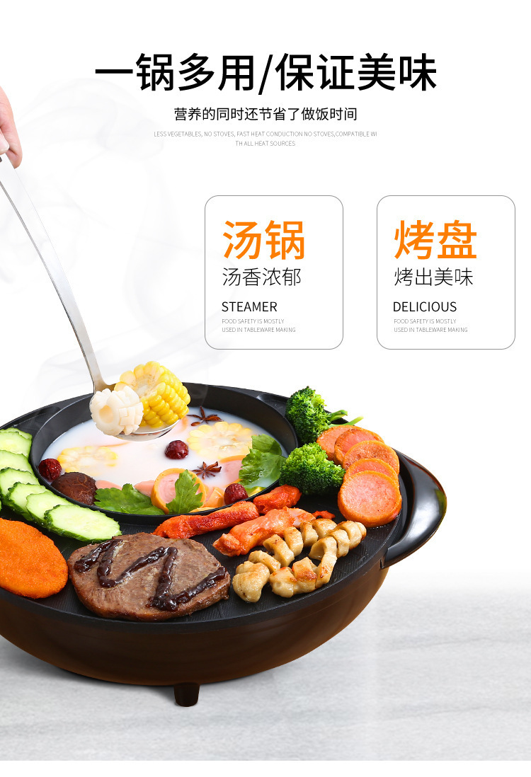新款涮烤一体锅家用圆形烤肉锅多功能电热烤涮一体锅日月锅电火锅