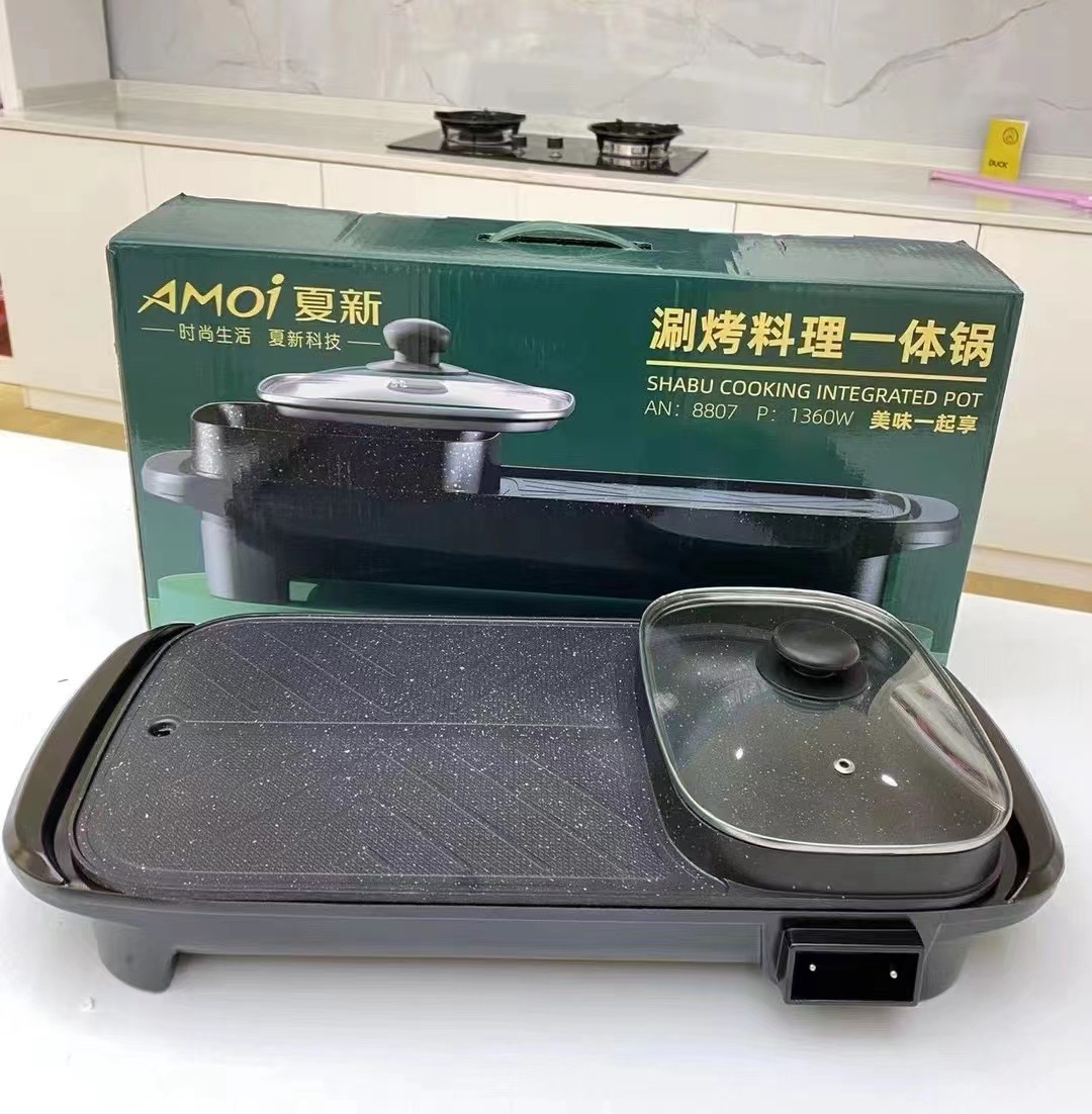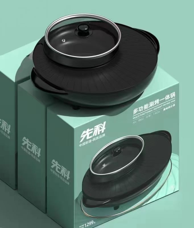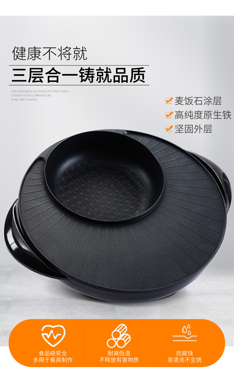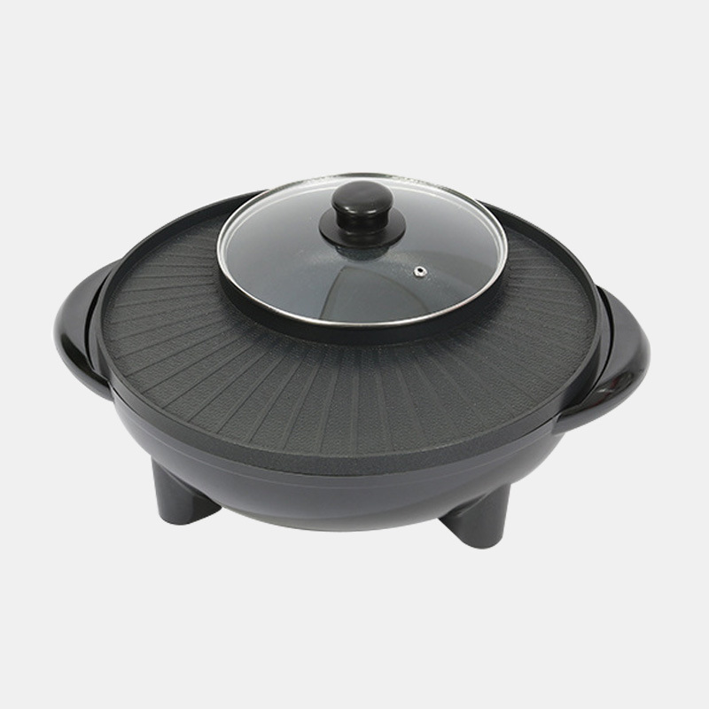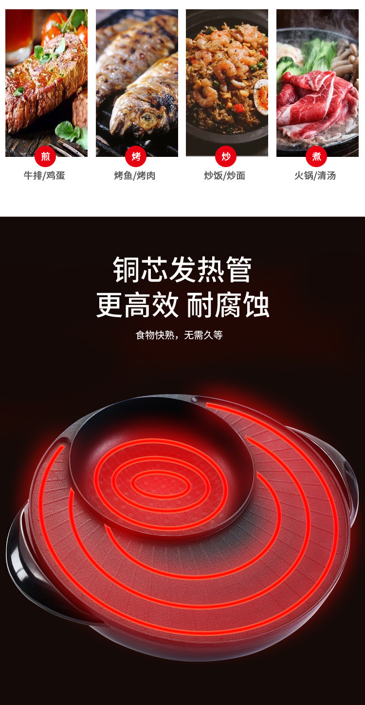 新款涮烤一体锅家用圆形烤肉锅多功能电热烤涮一体锅日月锅电火锅