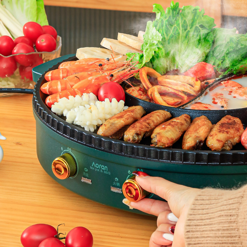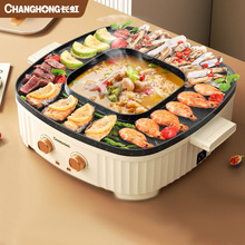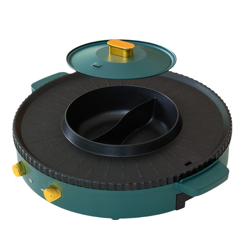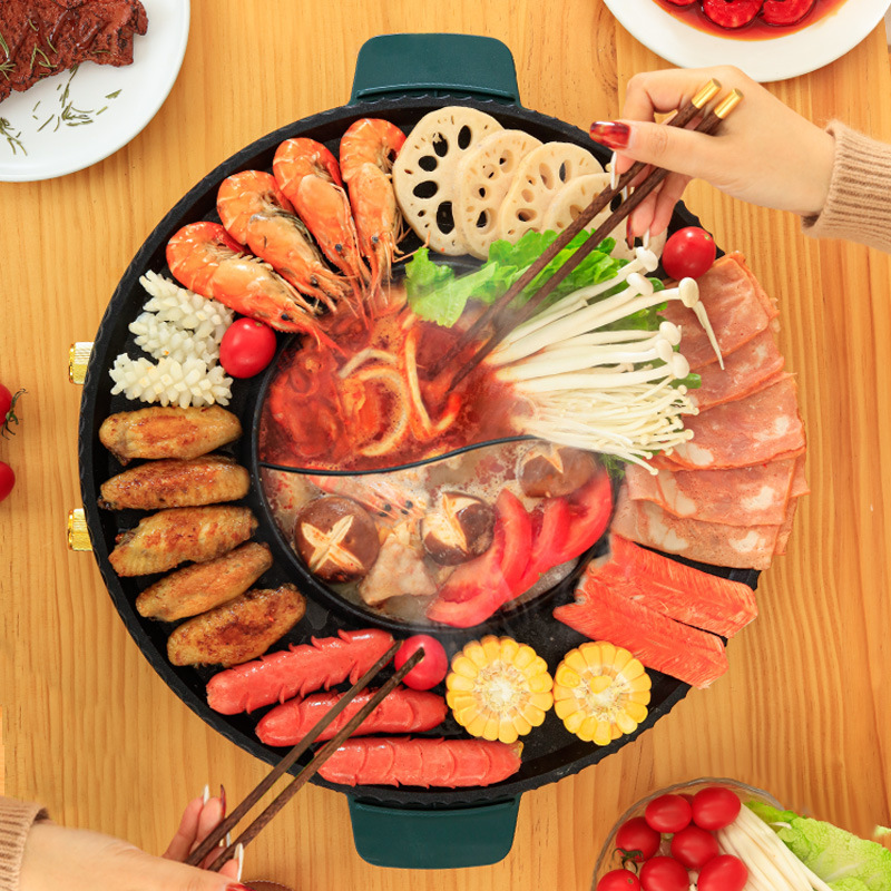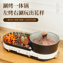 涮烤一体锅两用不粘烤肉锅大号鸳鸯锅多功能电煮锅电烤盘