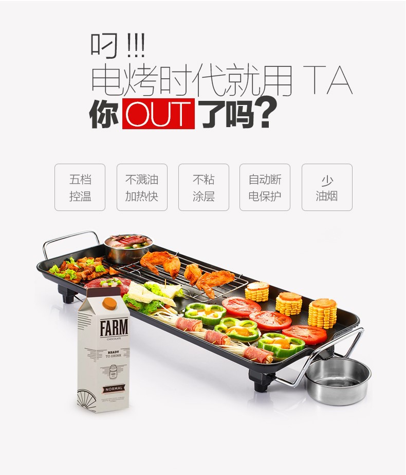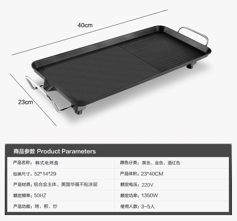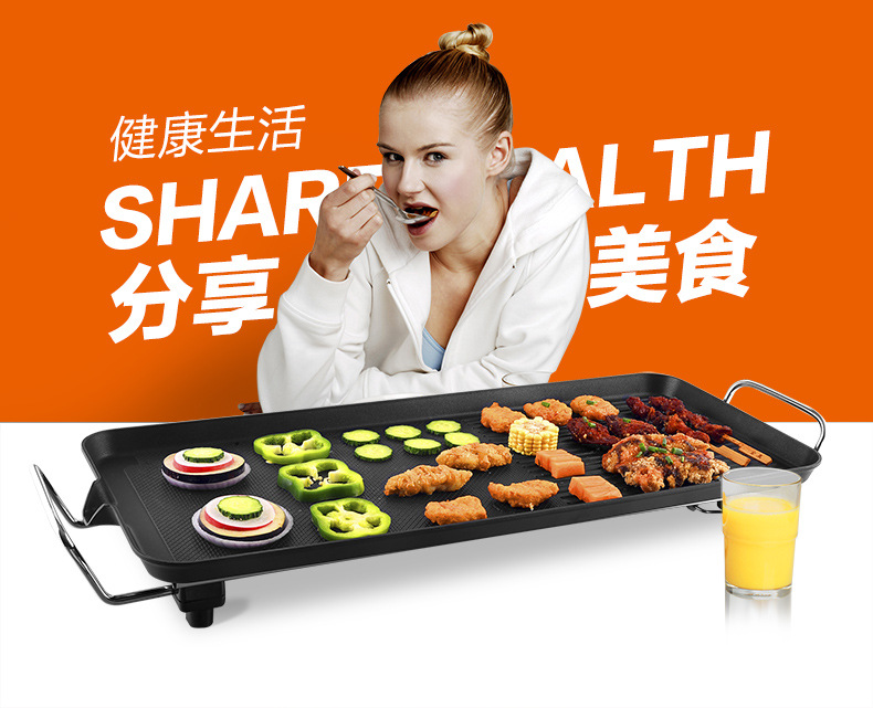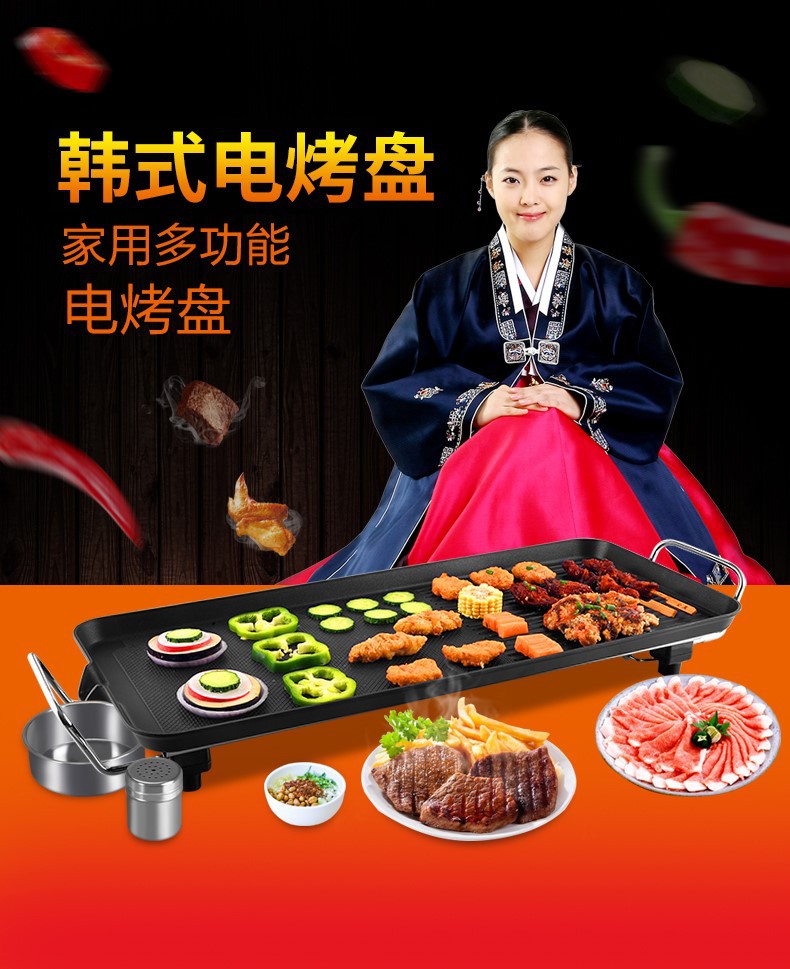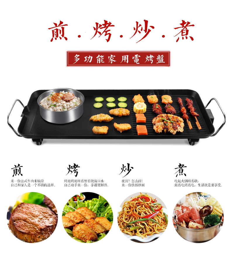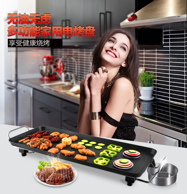 跨境110V亚马逊电烤盘铁板烧多功能烧烤锅无烟不粘电烧烤烤肉机锅