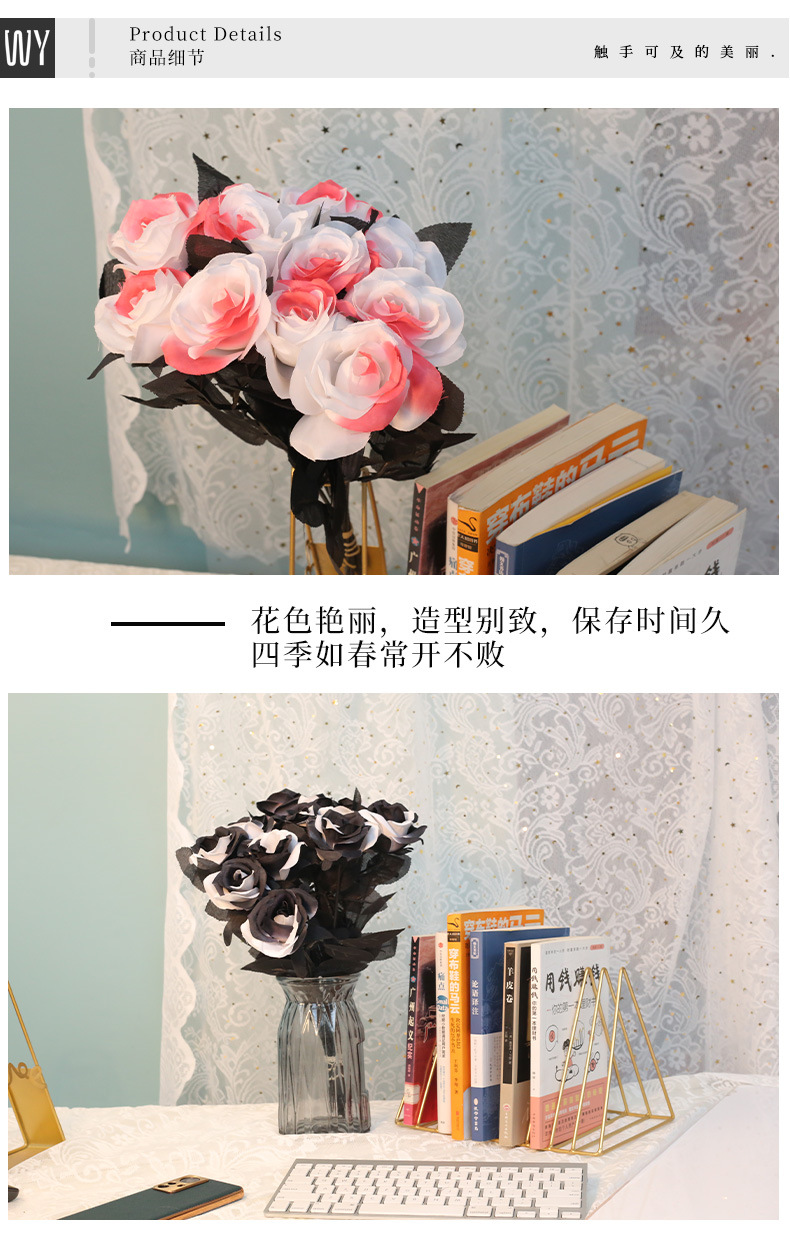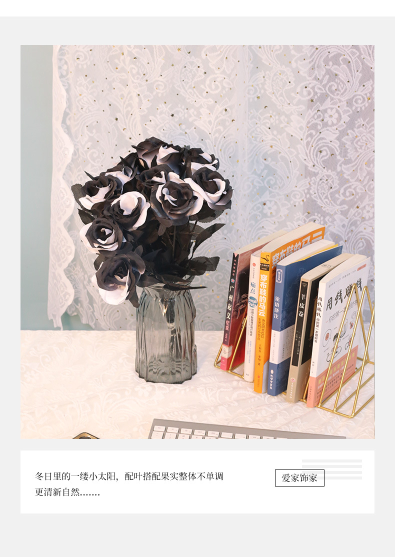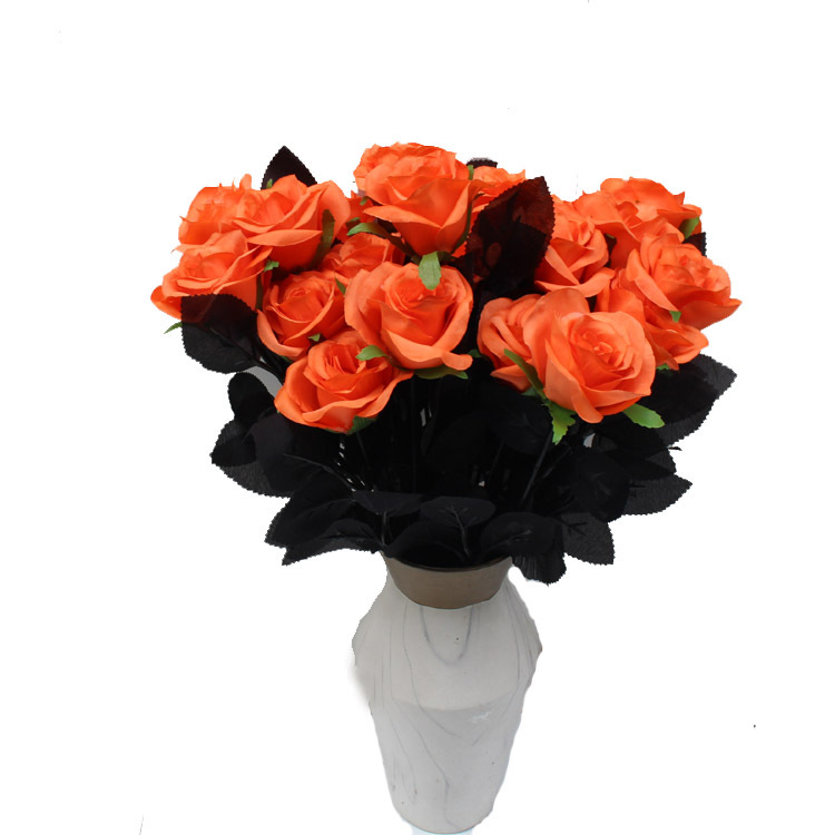 黑色仿真玫瑰南瓜黄色玫瑰策划装饰摆件插花道具假花家居摆放玫瑰