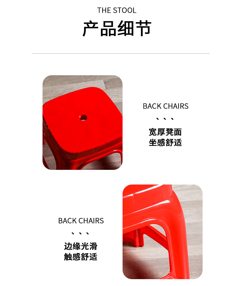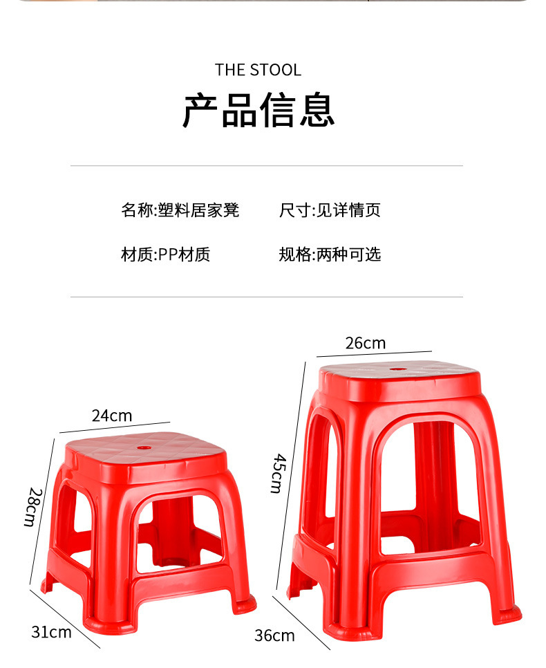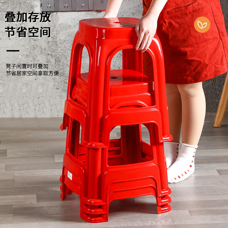 塑料凳子家用加厚成人大排档椅子红色高凳可叠放板凳方凳塑胶批发