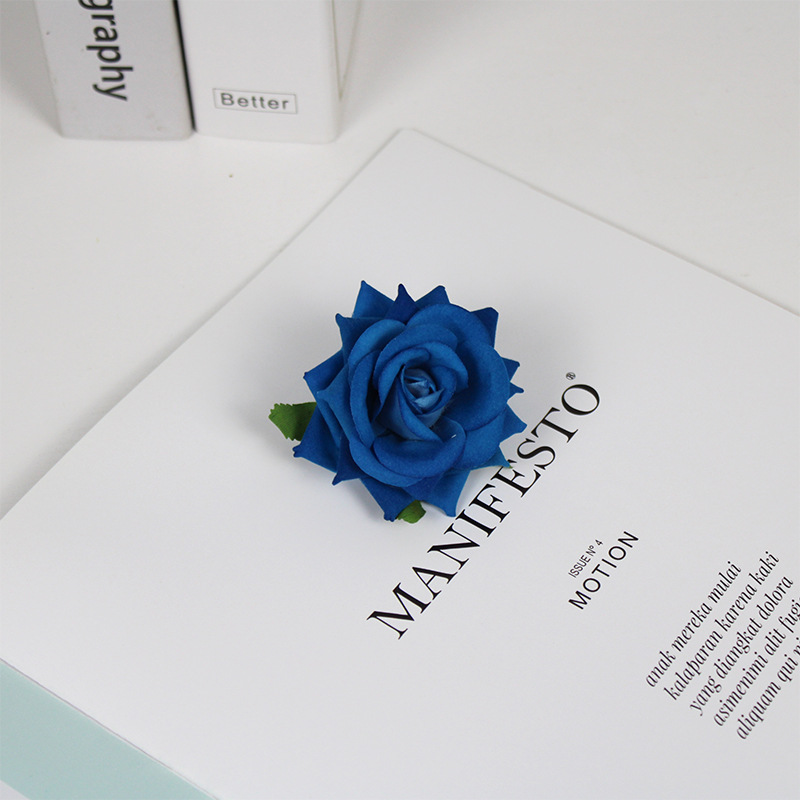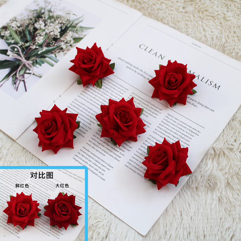迷你玫瑰花头绒布角玫帽子装饰厂家批发仿真花胸花制作花材人造花