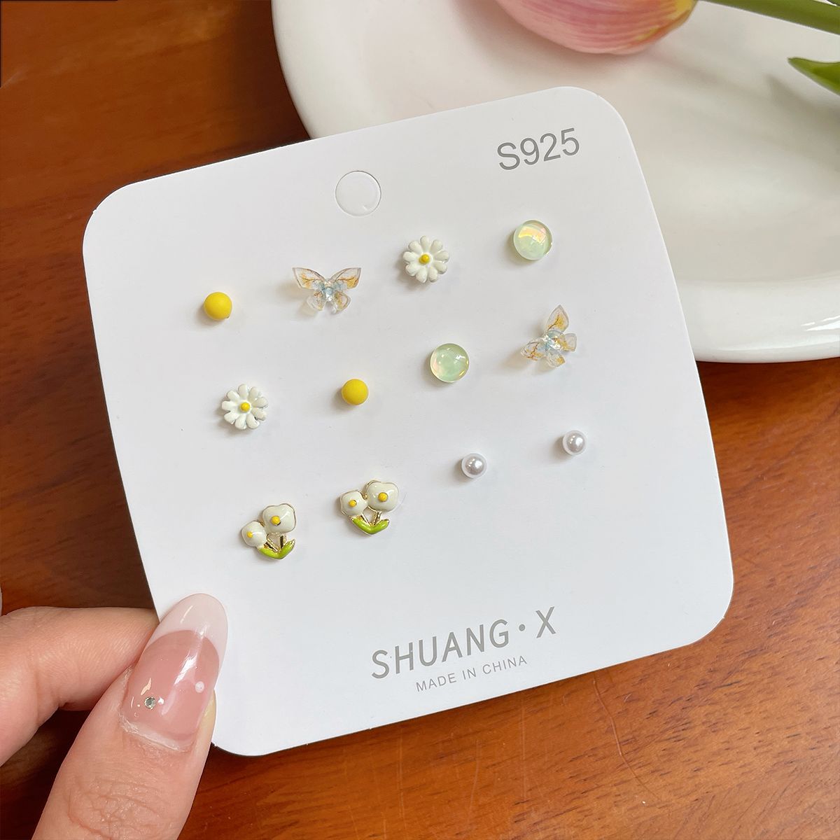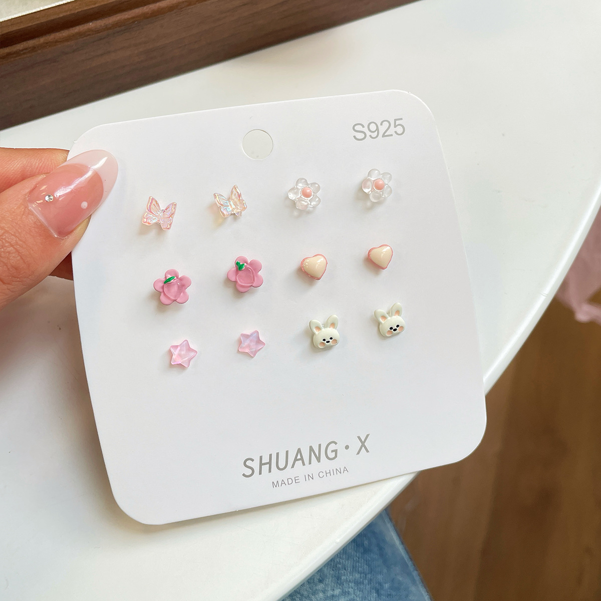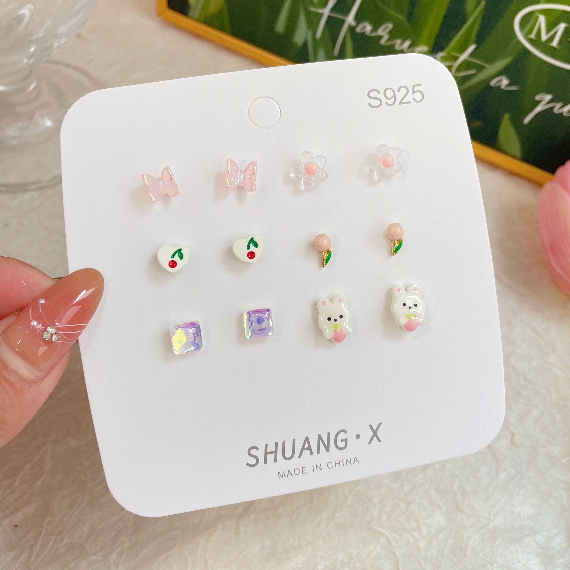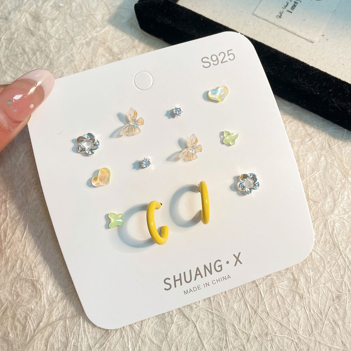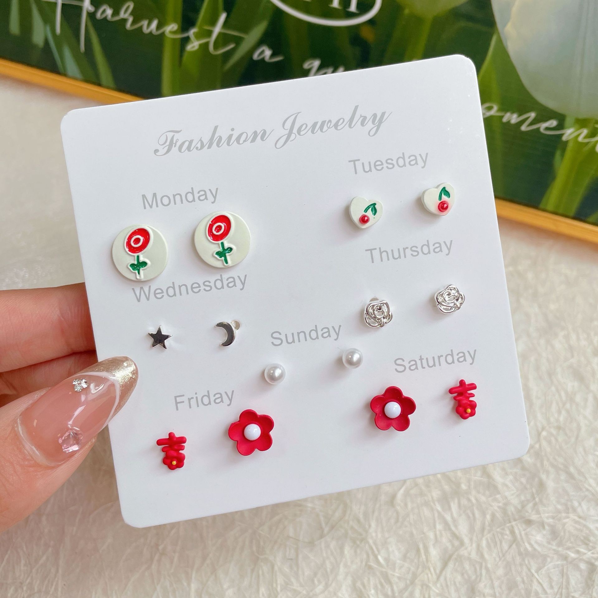 一周可爱花朵小耳钉套装女树脂蝴蝶设计感耳骨钉义乌银针耳饰批发