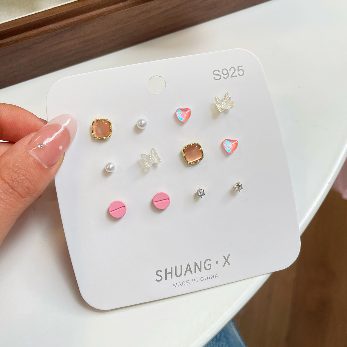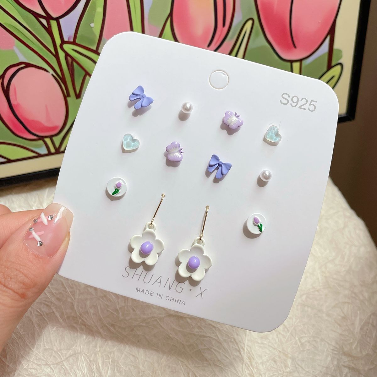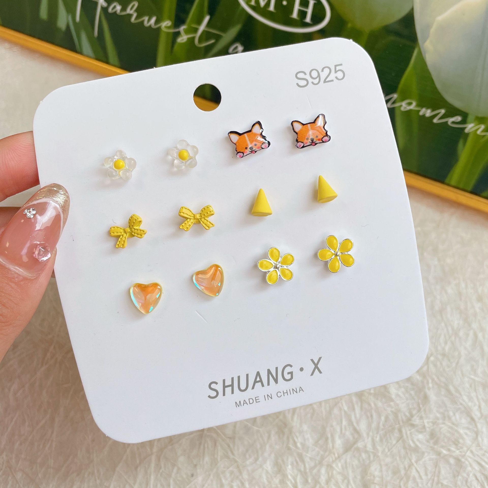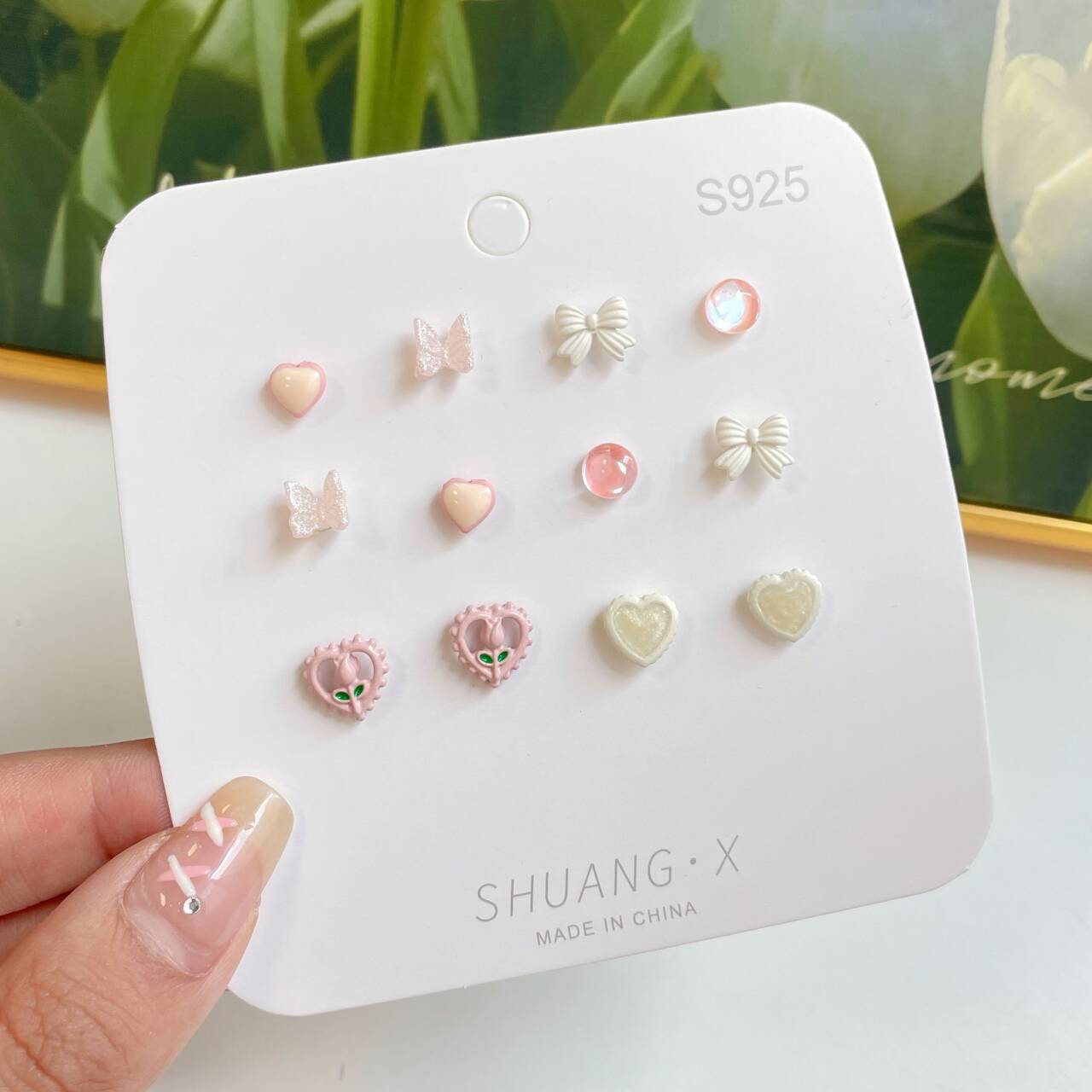 一周可爱花朵小耳钉套装女树脂蝴蝶设计感耳骨钉义乌银针耳饰批发