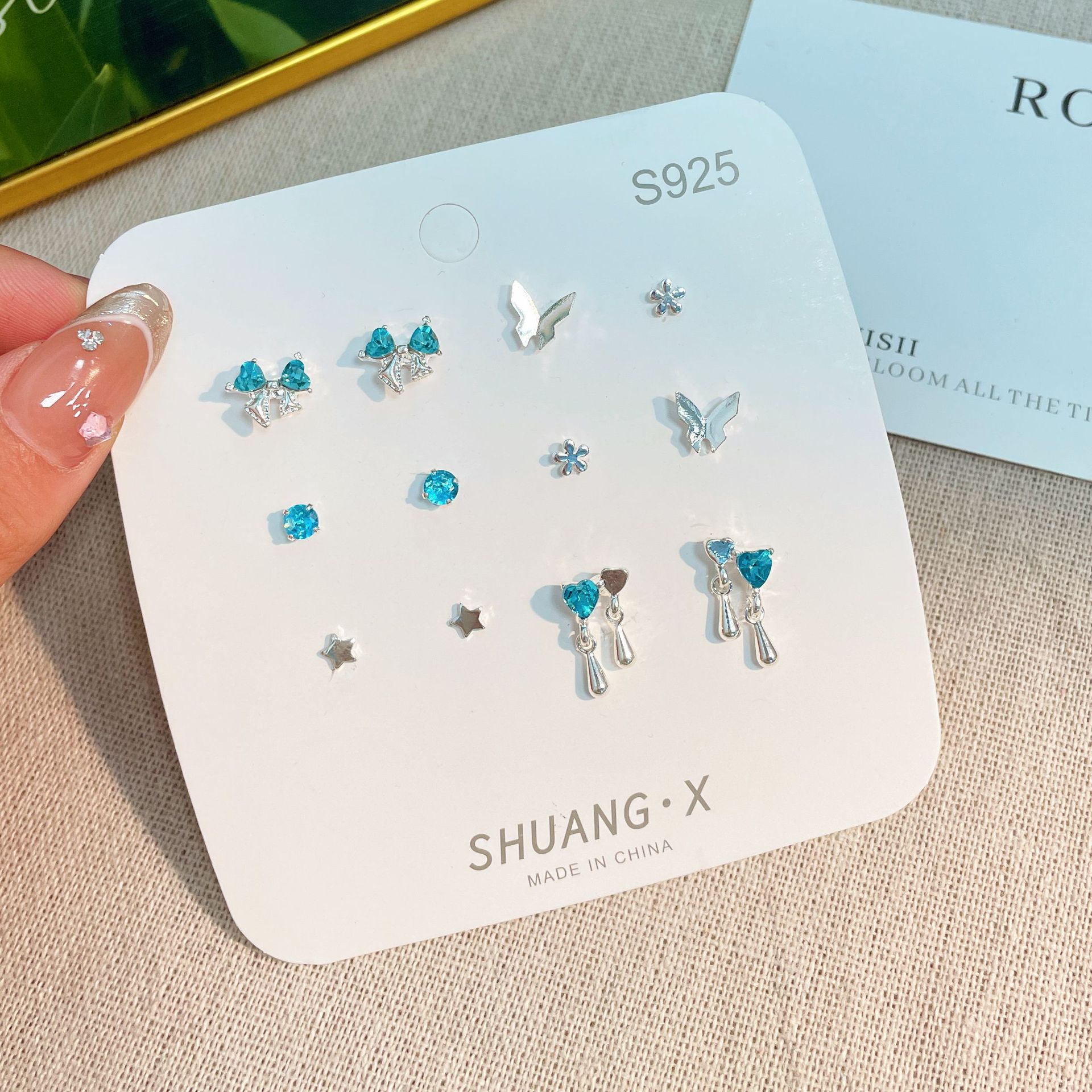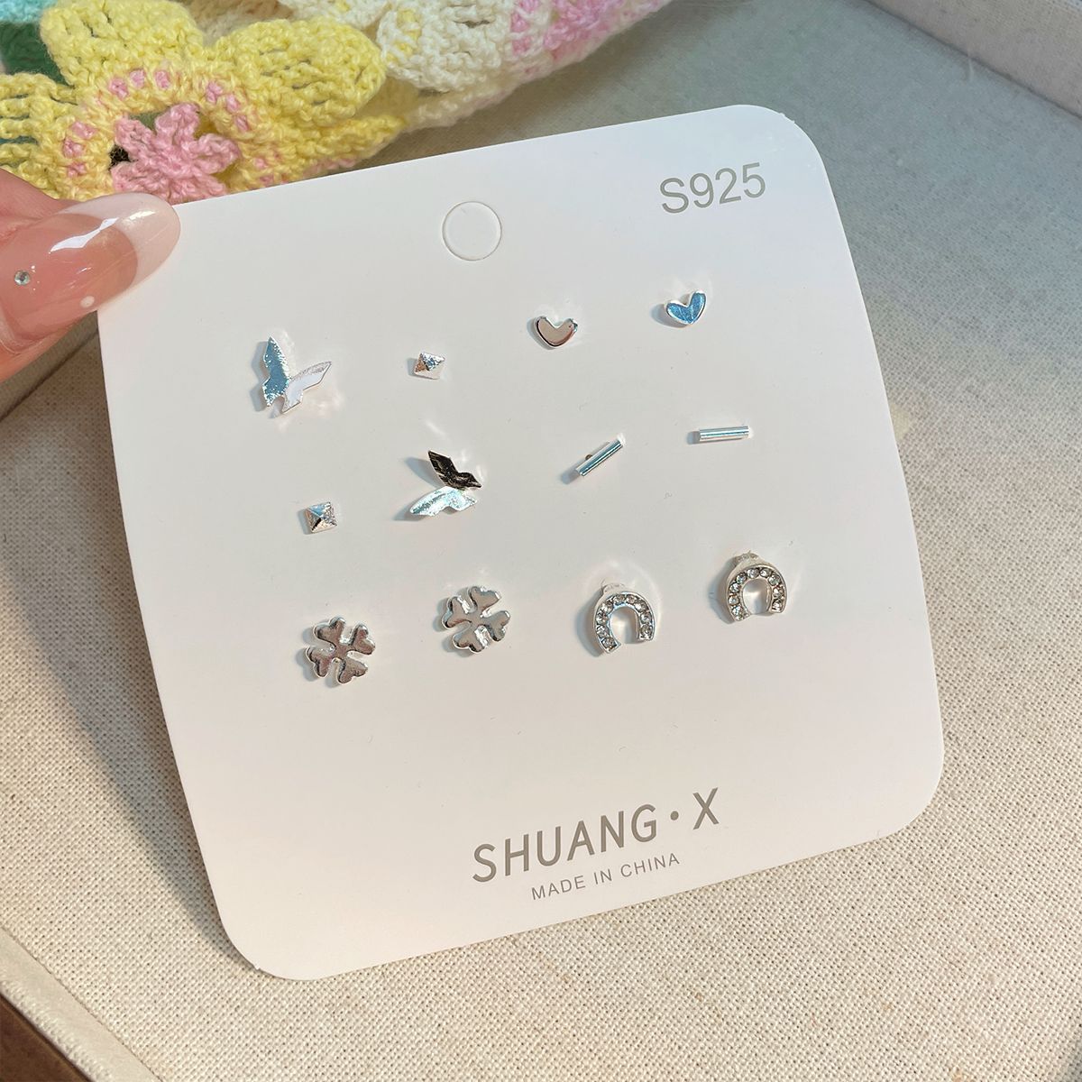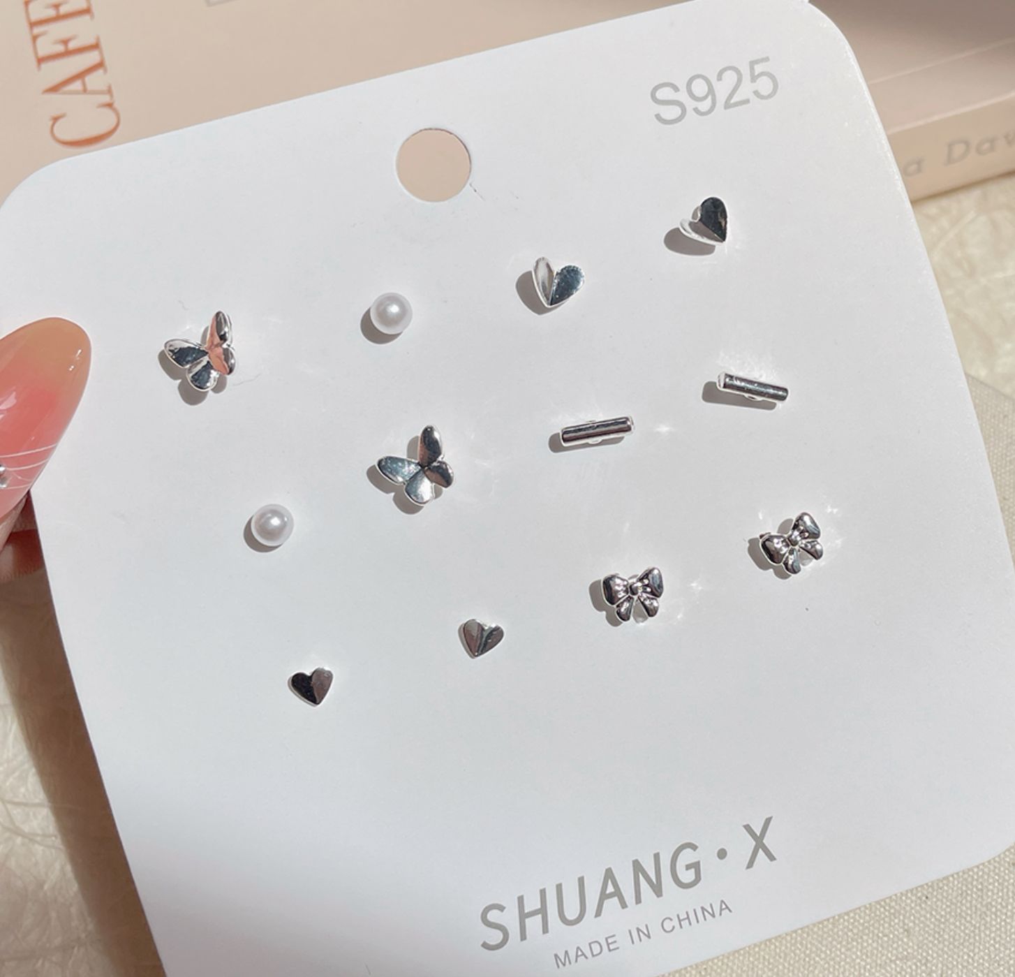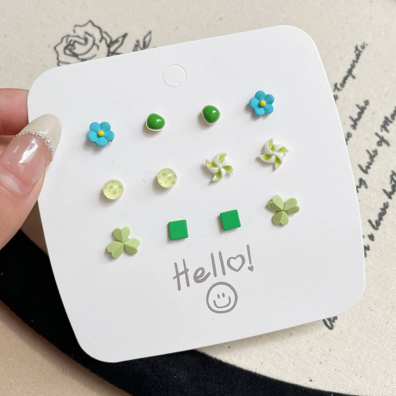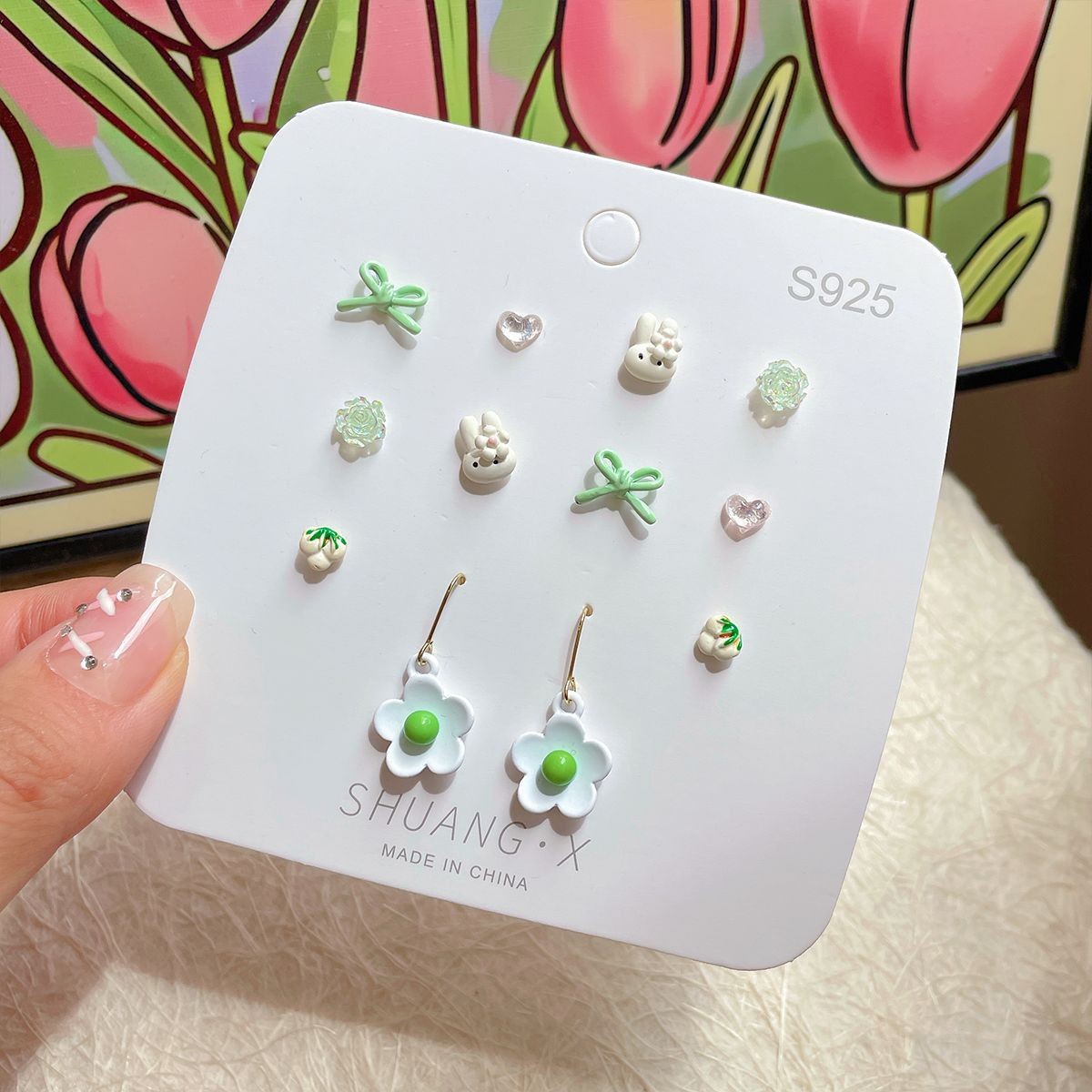 一周可爱花朵小耳钉套装女树脂蝴蝶设计感耳骨钉义乌银针耳饰批发