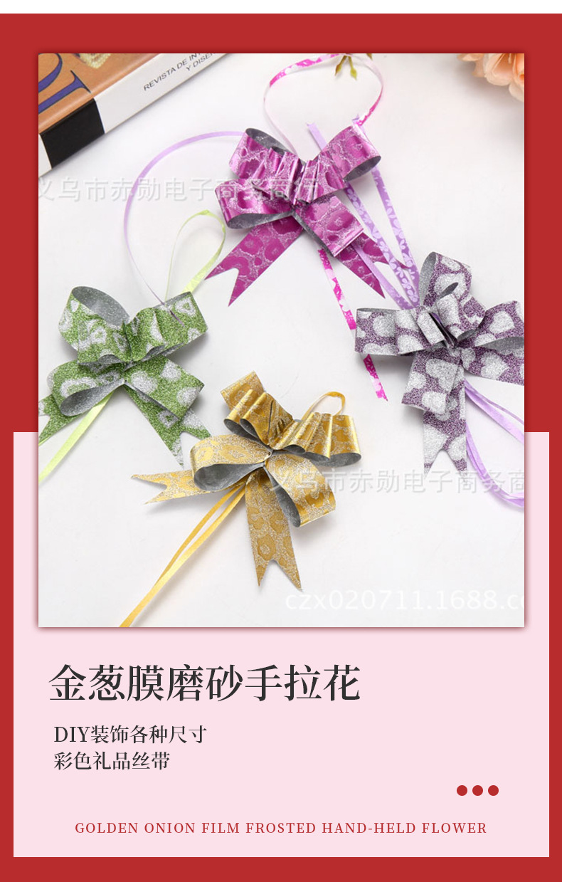 18号金葱膜磨砂手拉花 圣诞包苹果扎花 礼品包装彩色抽花金银彩带