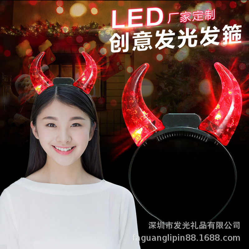 发光牛角发箍水晶头箍欧美热销狂欢节闪光发饰景区夜市荧光批发厂