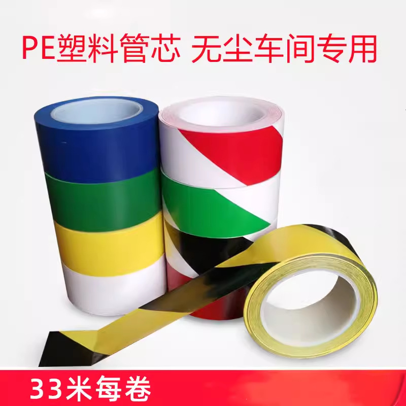 PVC黑黄警示胶带地板隔离斑马线地标线标识地贴线黄色警戒贴白管