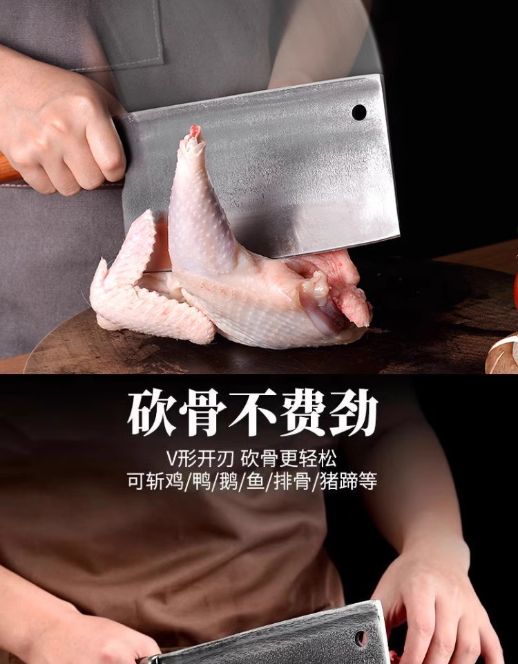 轴承钢厚背锻打烧腊菜刀斩切两用刀斩鸡鹅鸭厨房锋利切肉酒店厨师