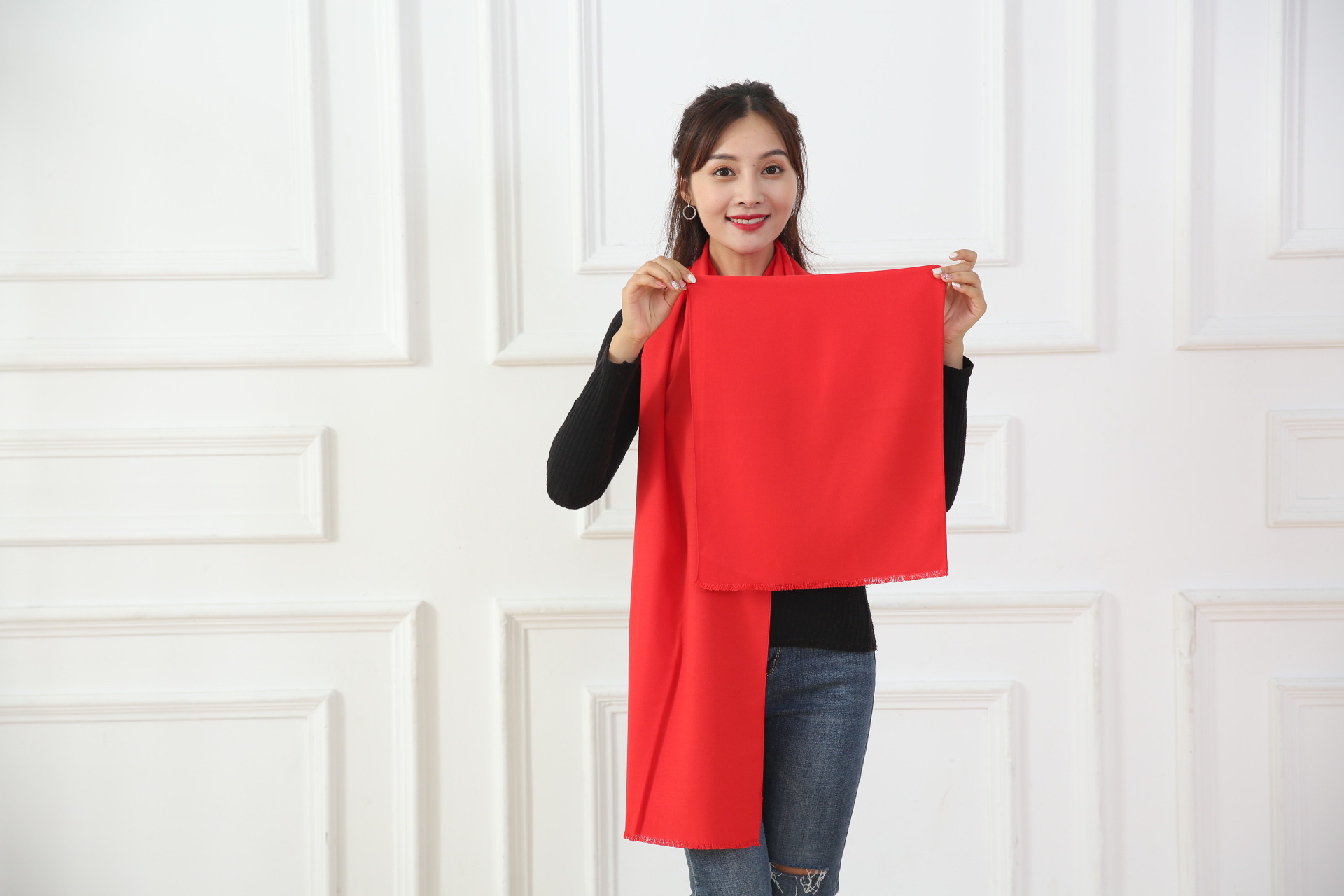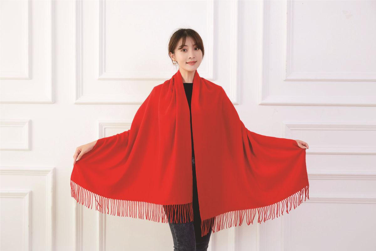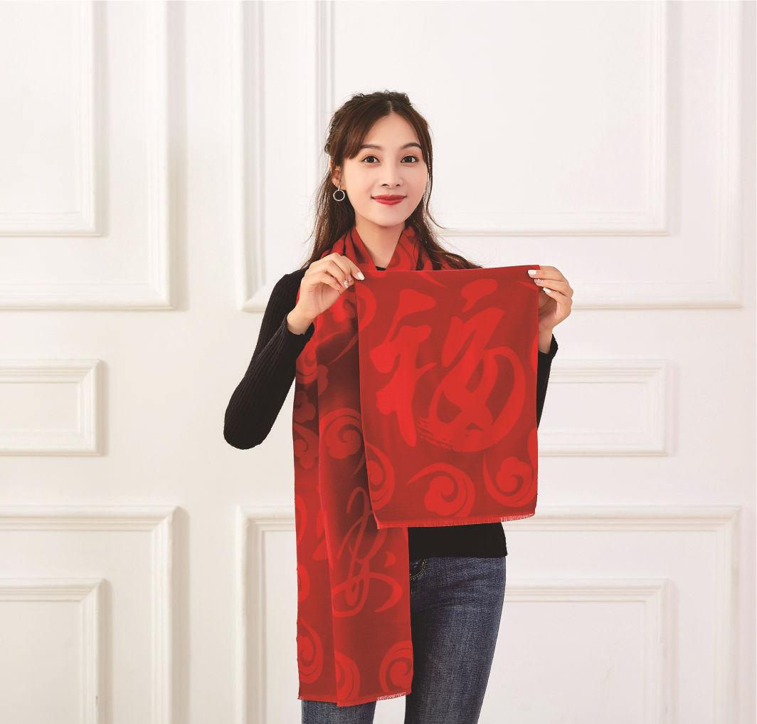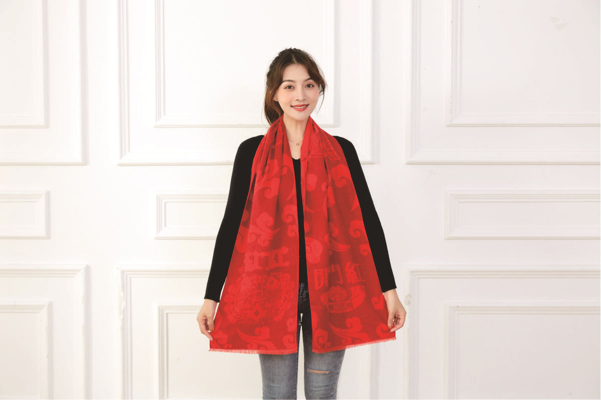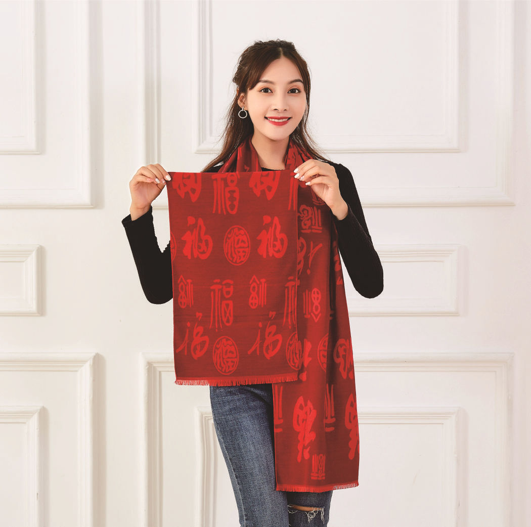 中国大红色围巾定logo刺绣制作做印字聚会活动公司年会红围巾披肩