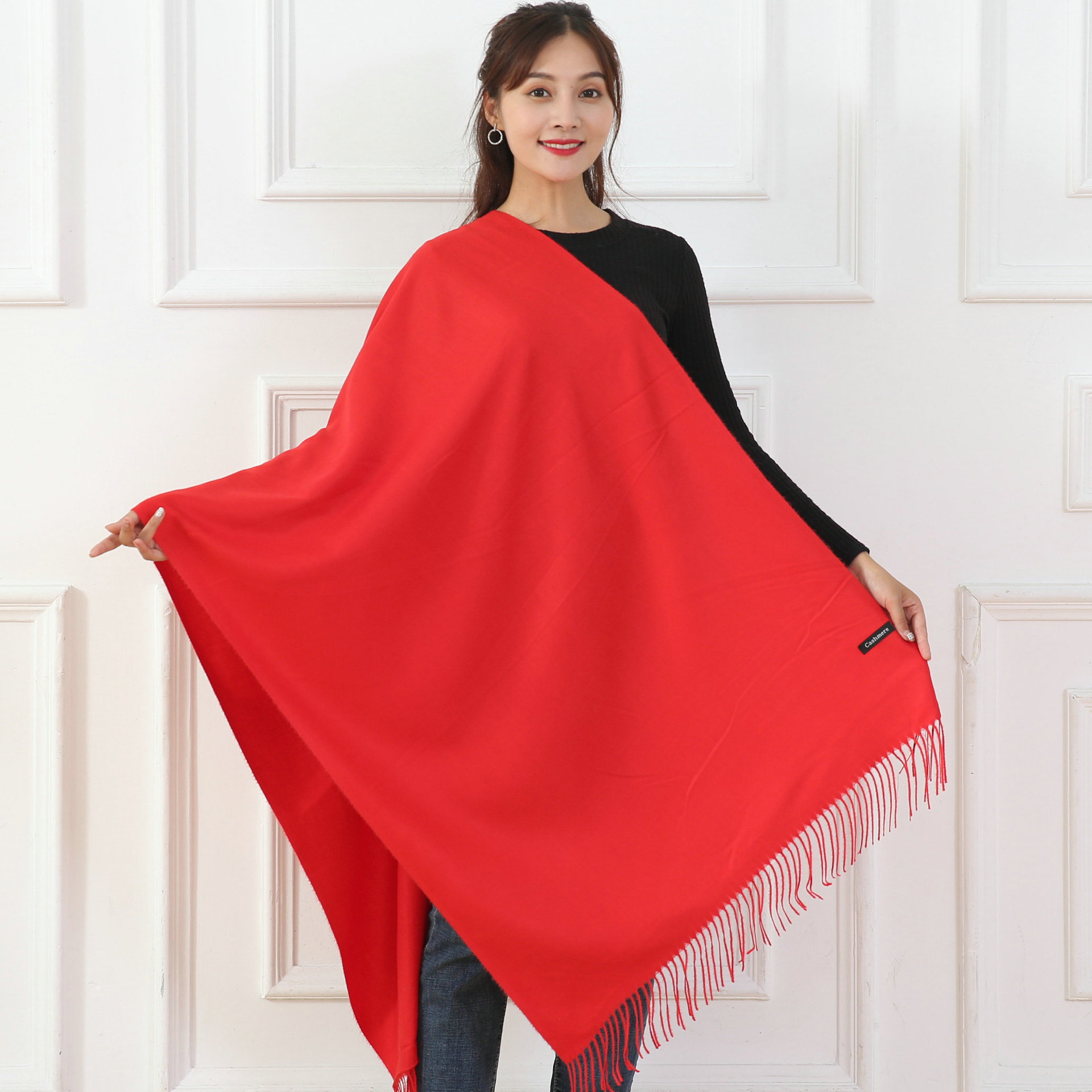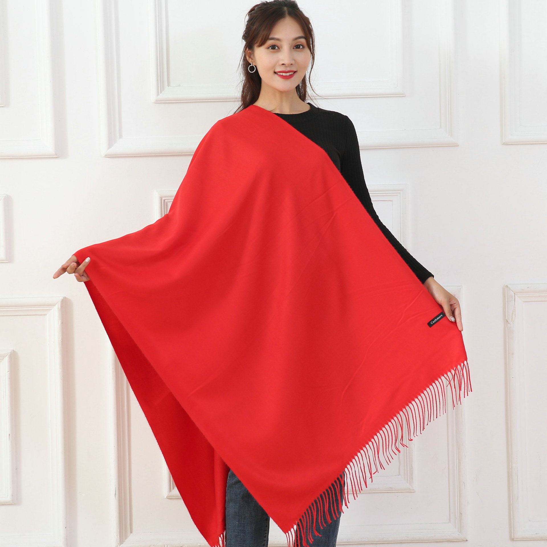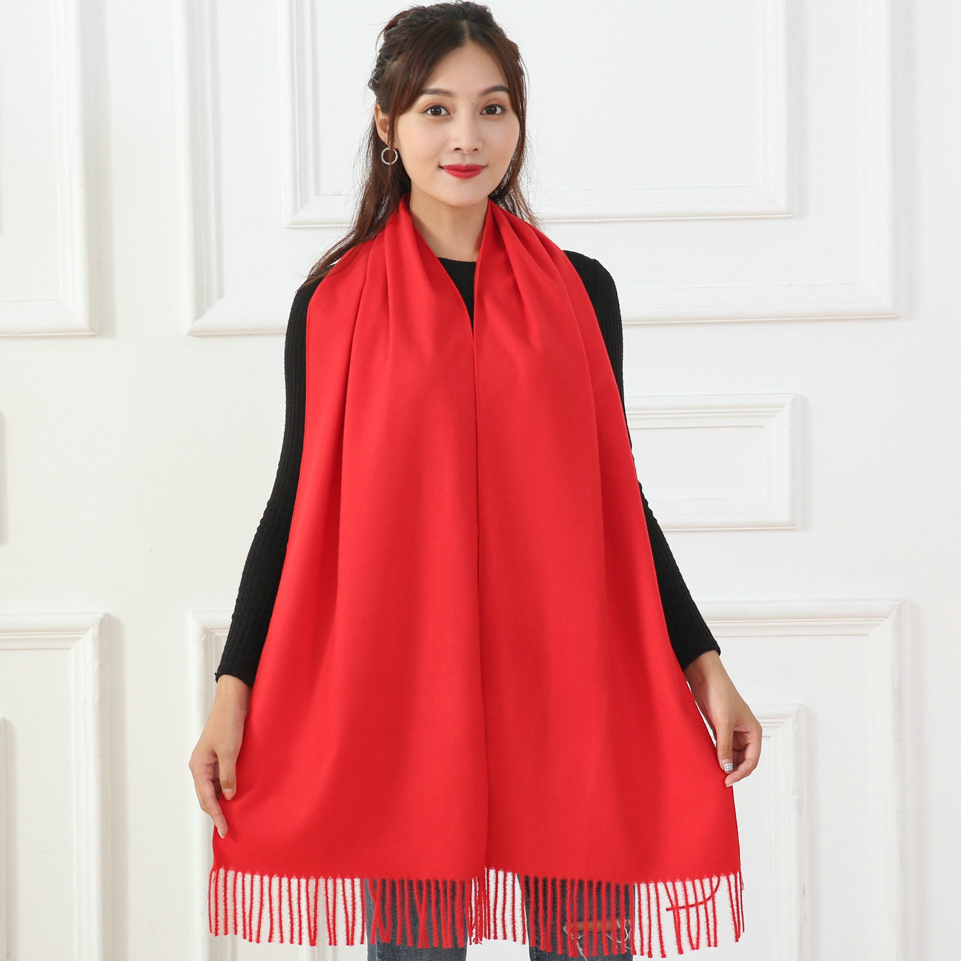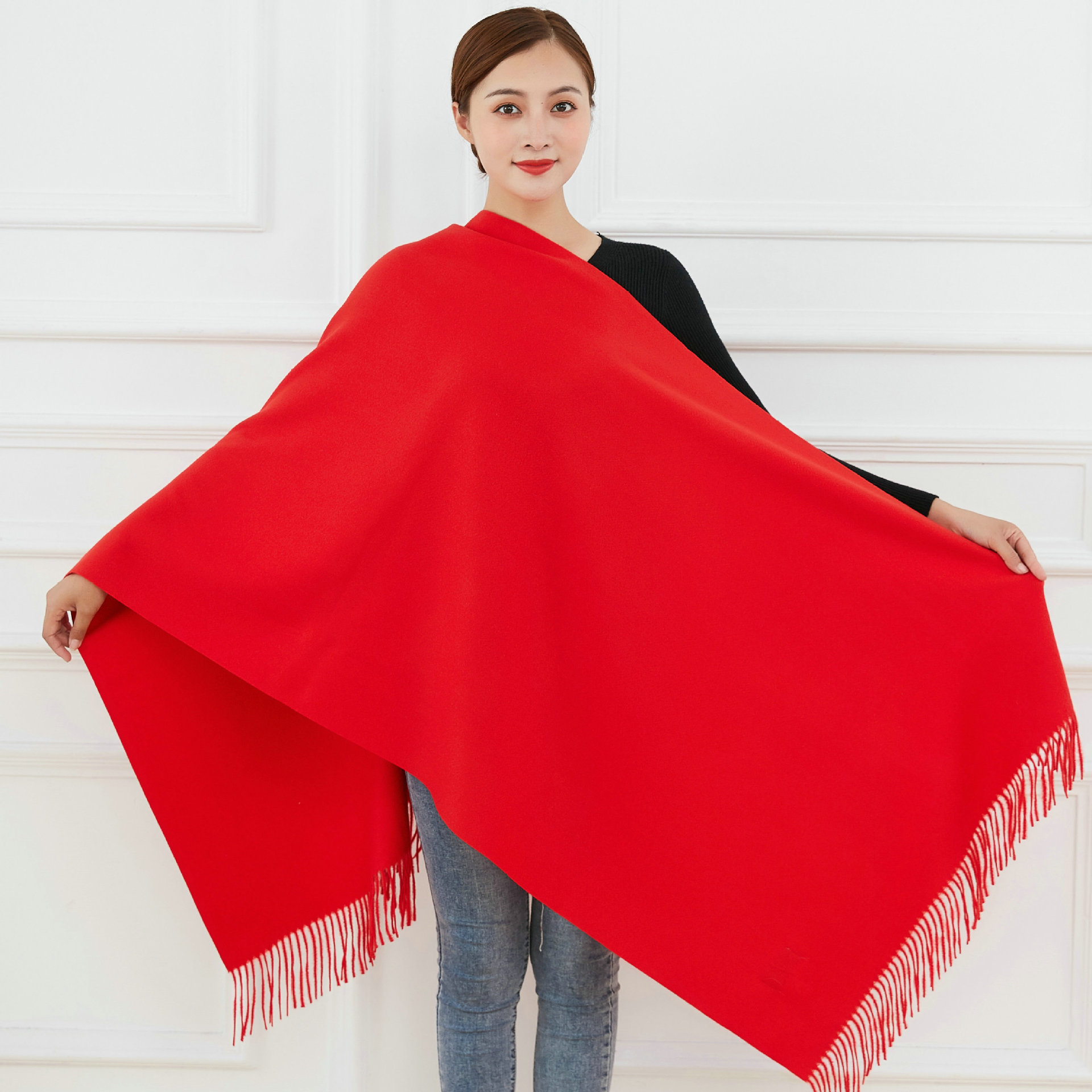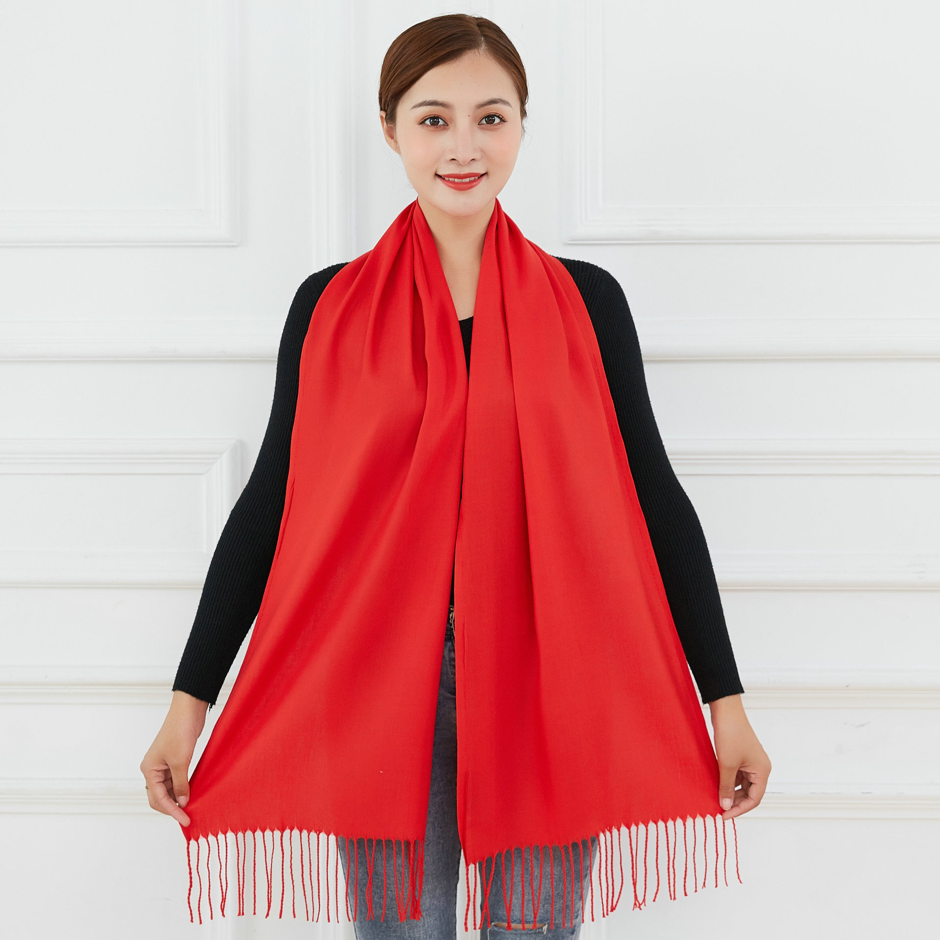 中国大红色围巾定logo刺绣制作做印字聚会活动公司年会红围巾披肩