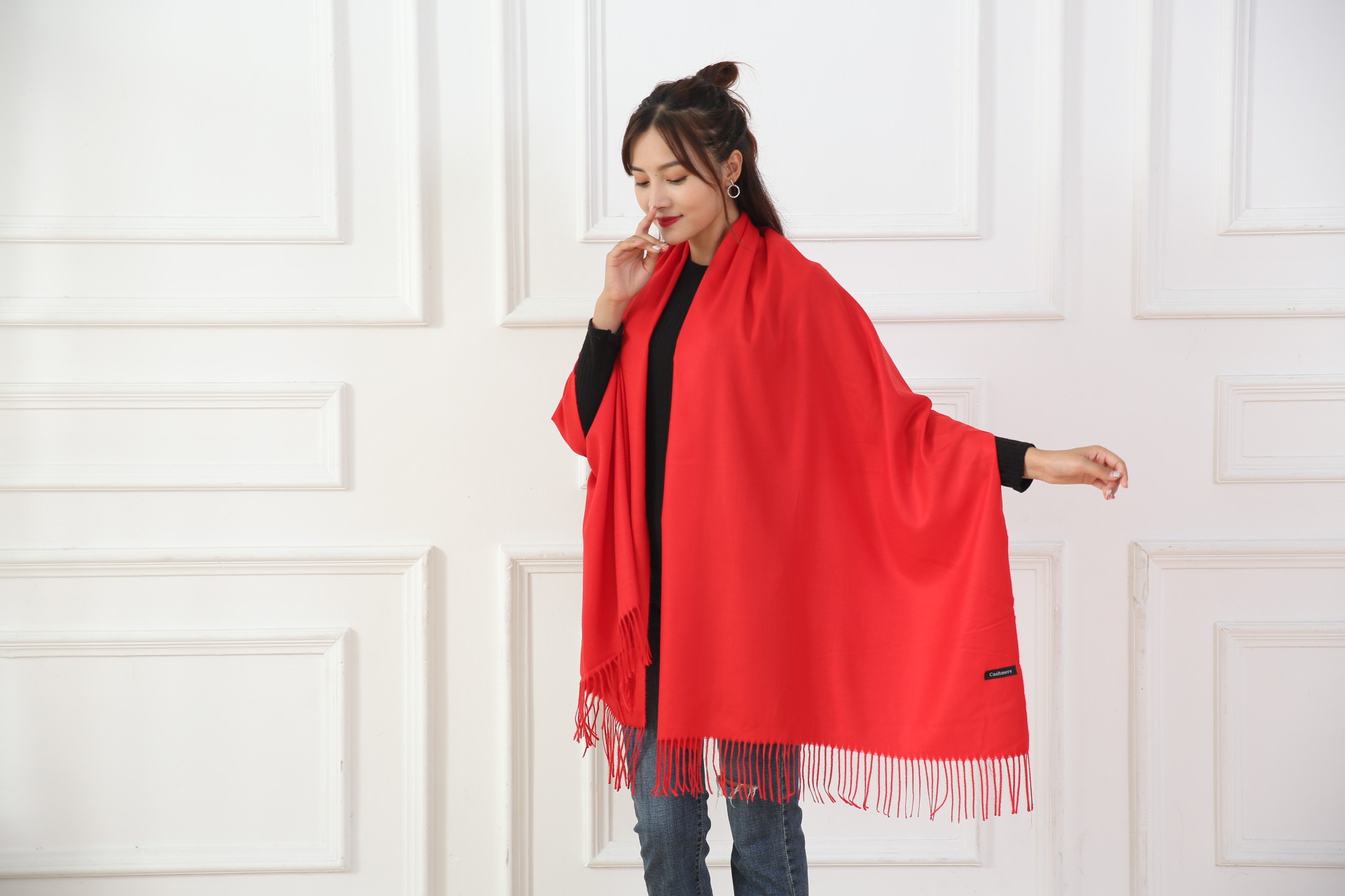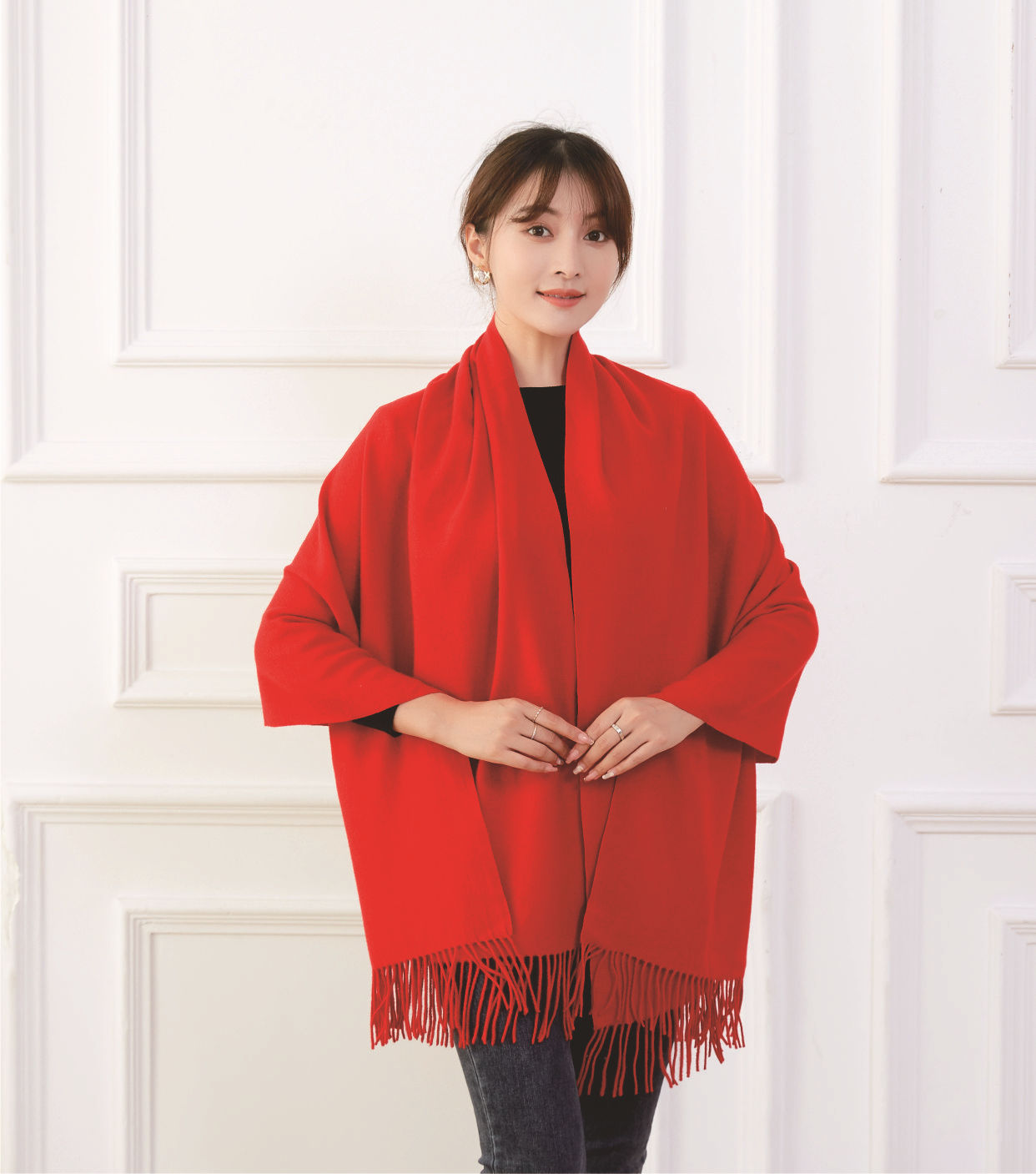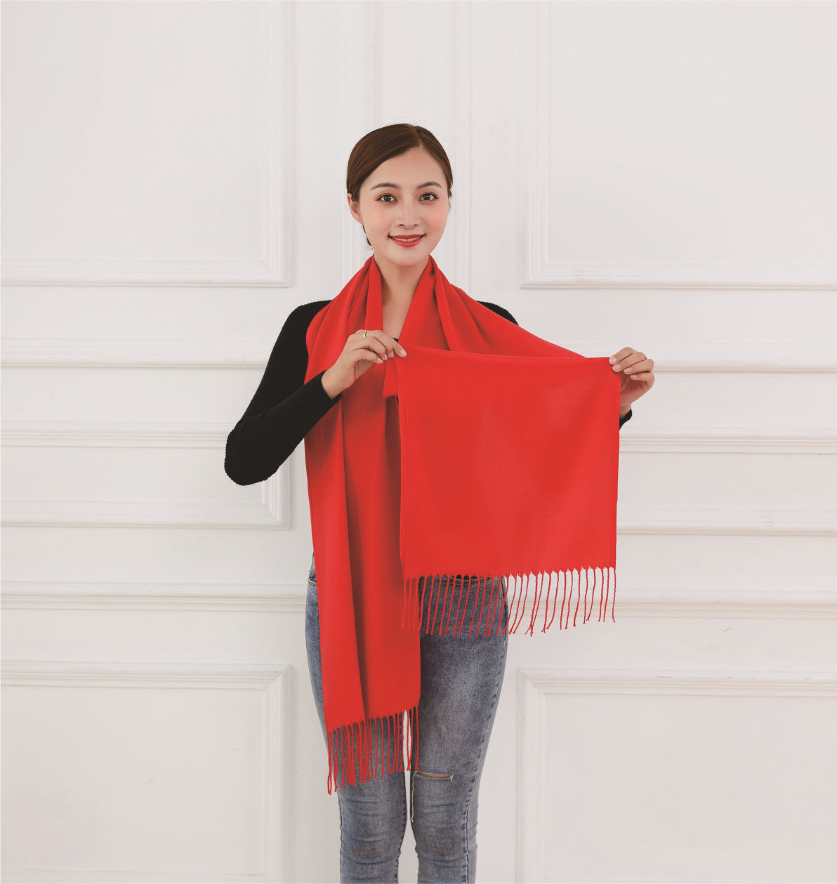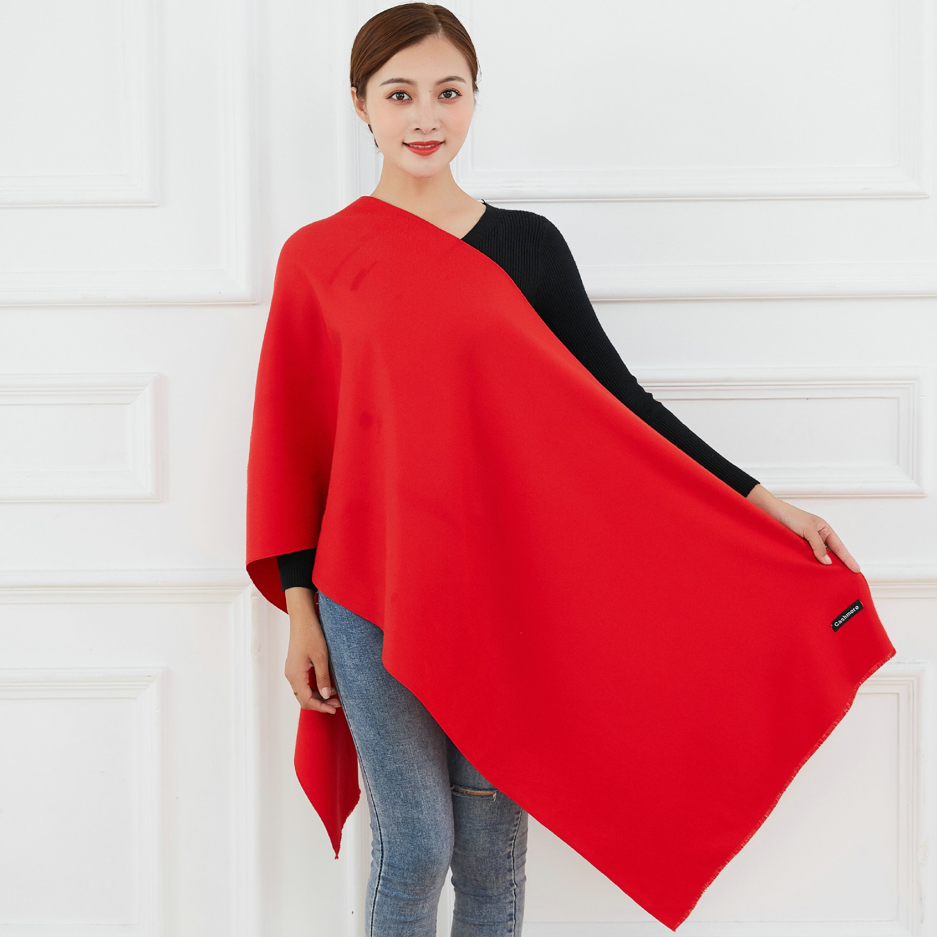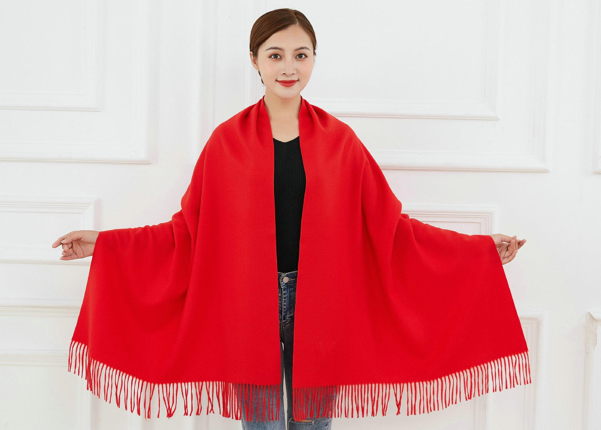 中国大红色围巾定logo刺绣制作做印字聚会活动公司年会红围巾披肩