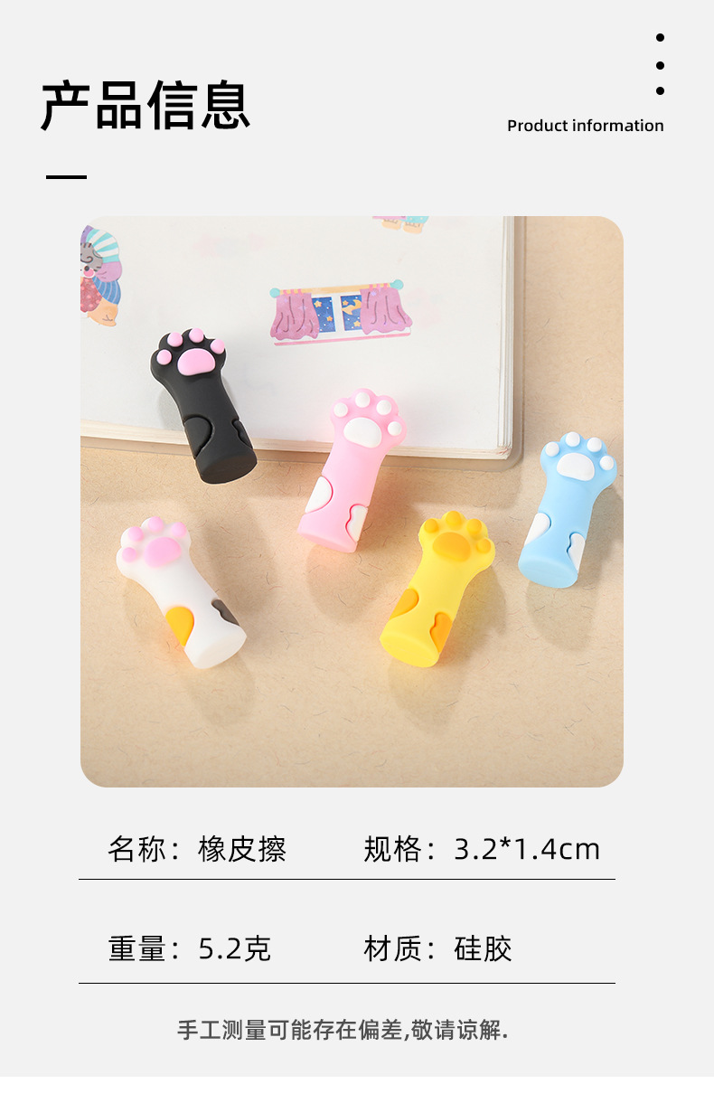 创意卡通猫爪橡皮擦 幼儿园小学生可爱橡皮幸运猫爪橡皮檫批发
