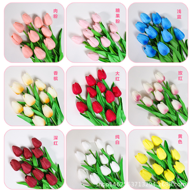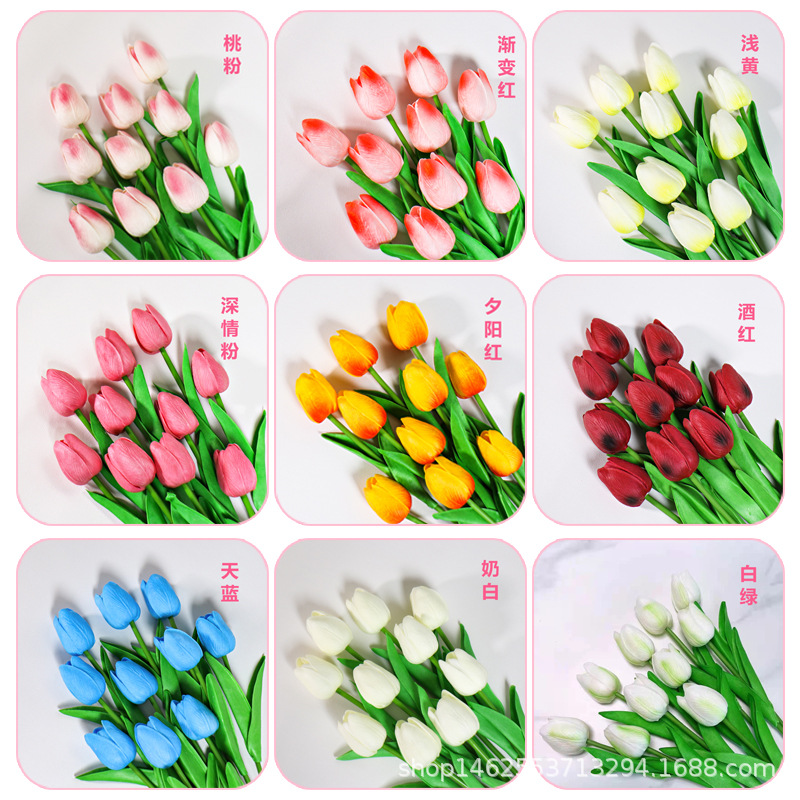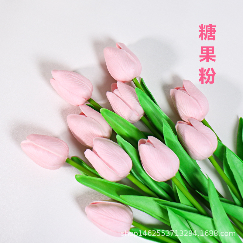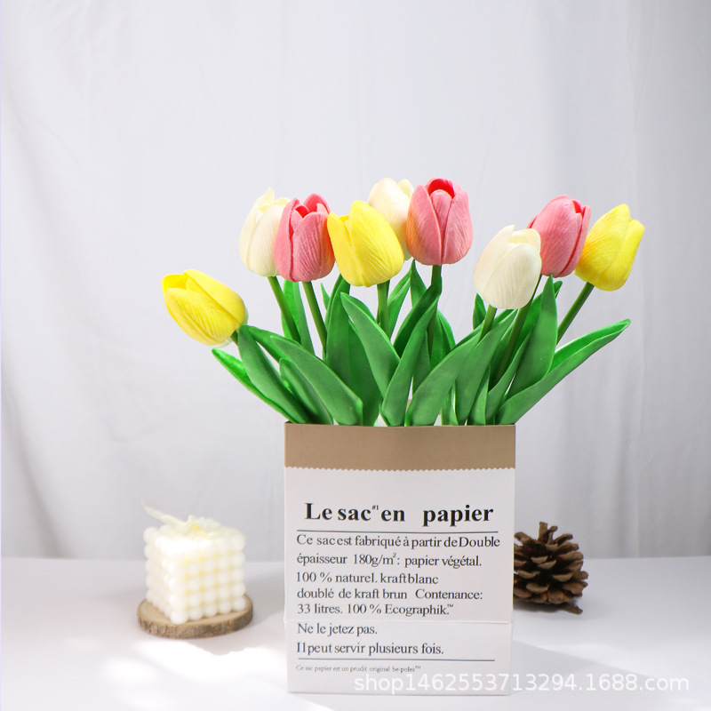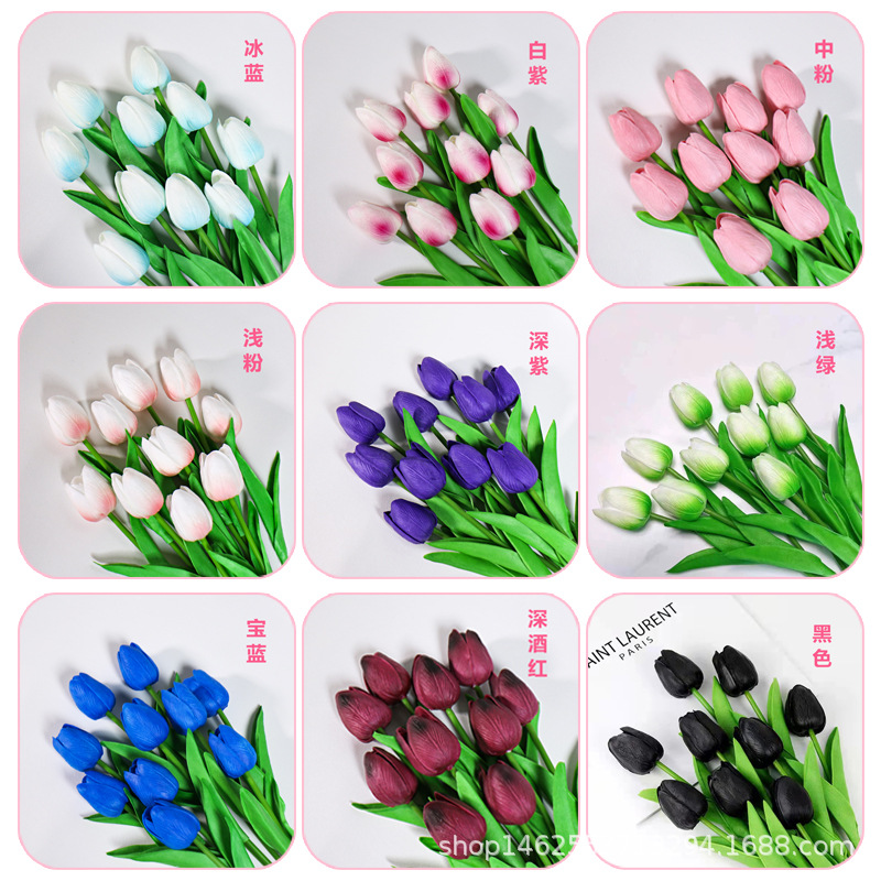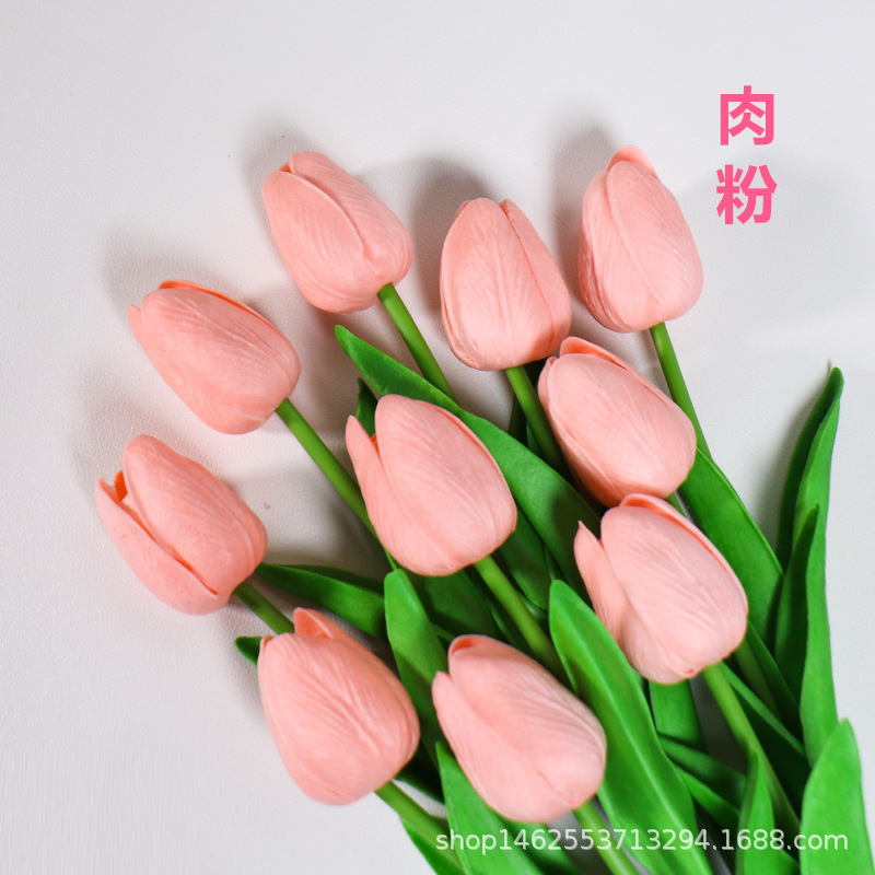 高端pu保湿手感郁金香假花家居装饰室内客厅摆件跨境热销厂家直供