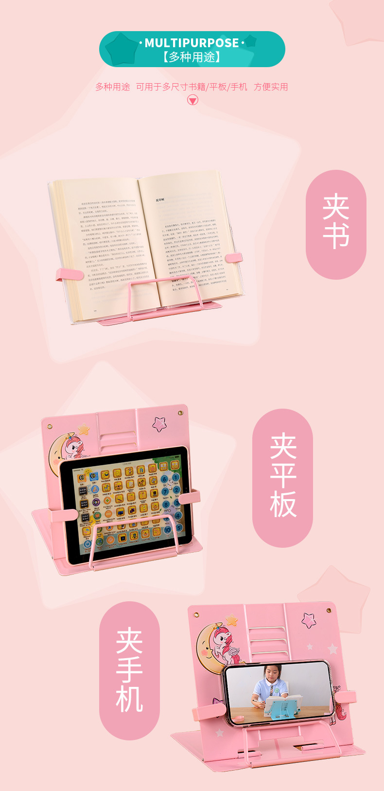 思学小学生简易读书架儿童书架金属书本支架桌面书夹书靠阅读架