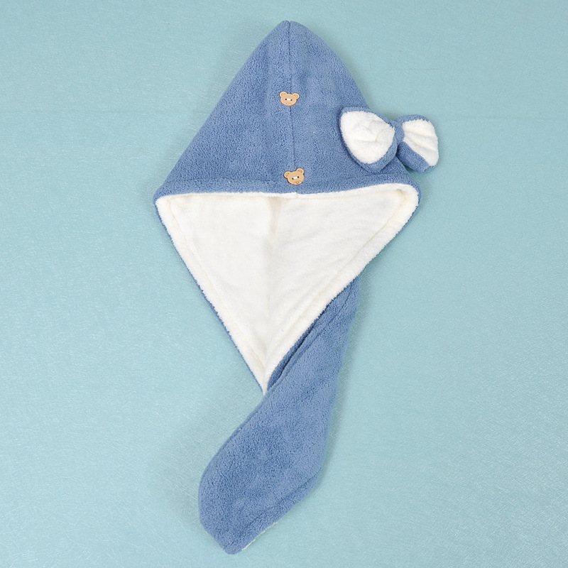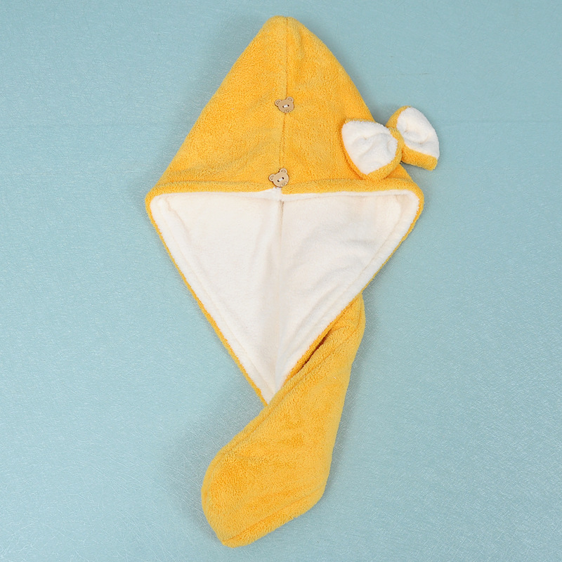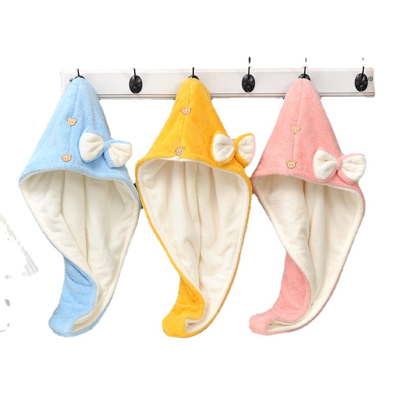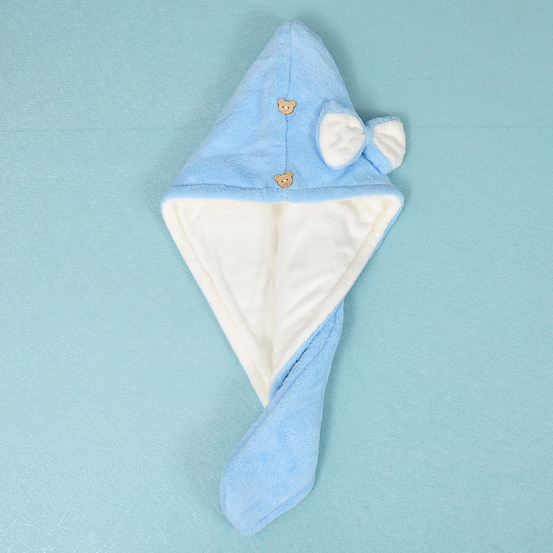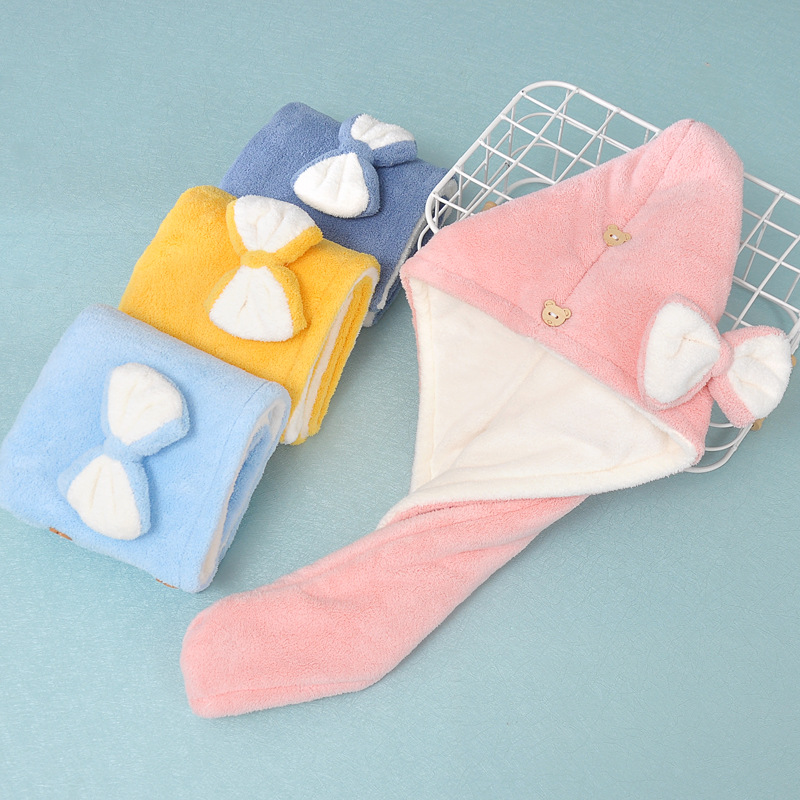 蝴蝶结卡通可爱珊瑚绒浴帽干发巾干发帽浴室女双层吸水加厚包头巾