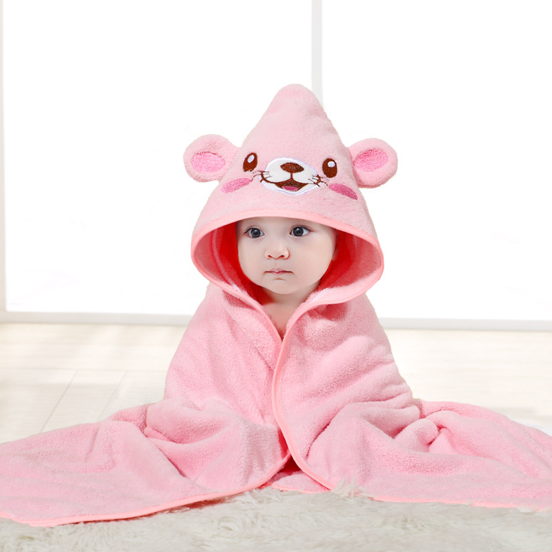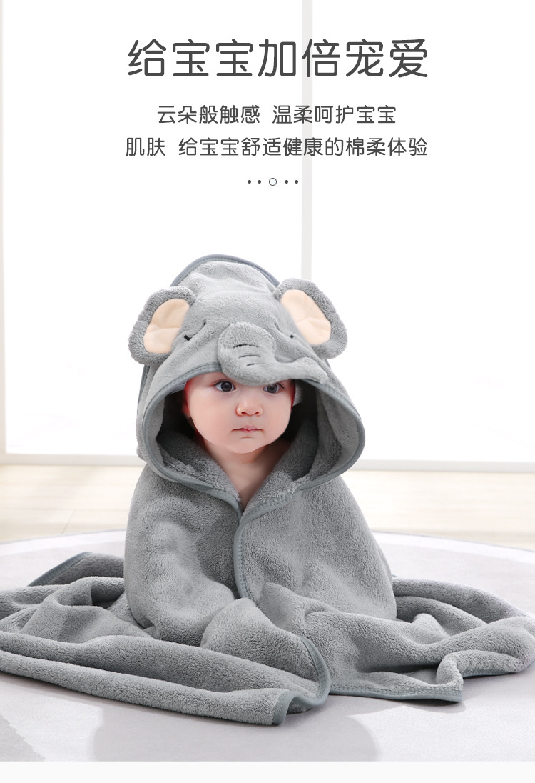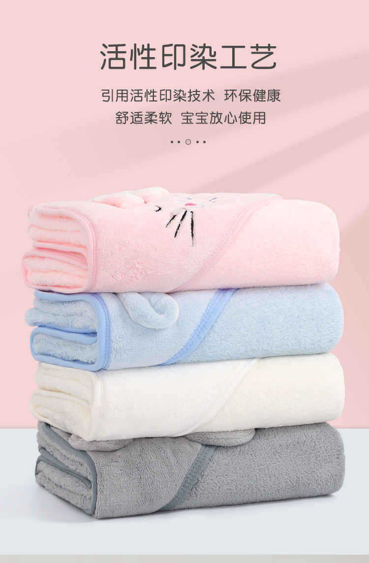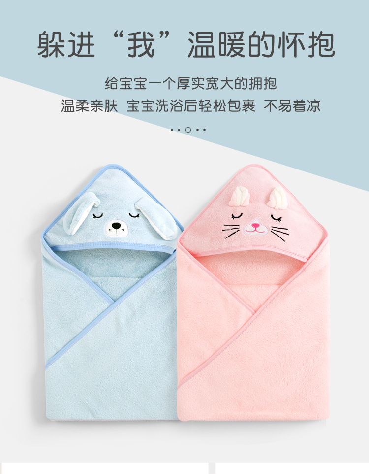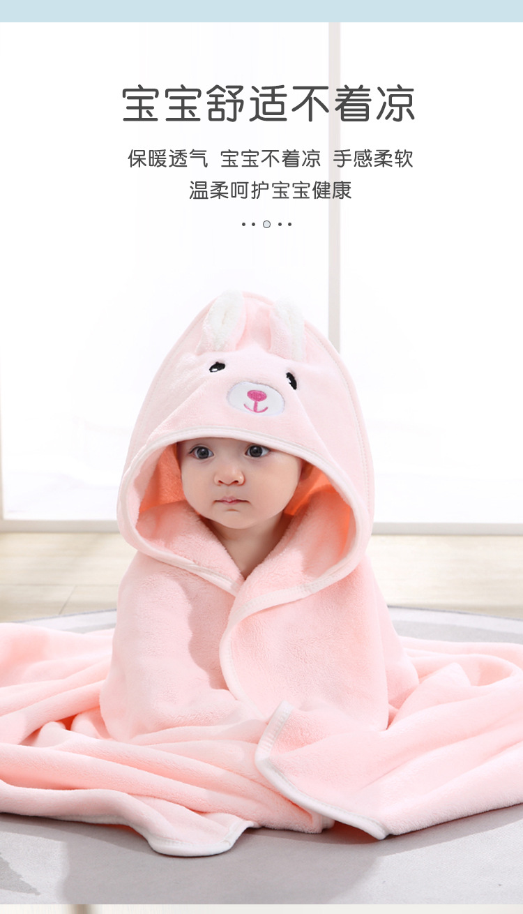 珊瑚绒儿童浴巾洗澡裹巾新生儿包巾包被加厚卡通吸水斗篷抱被跨境