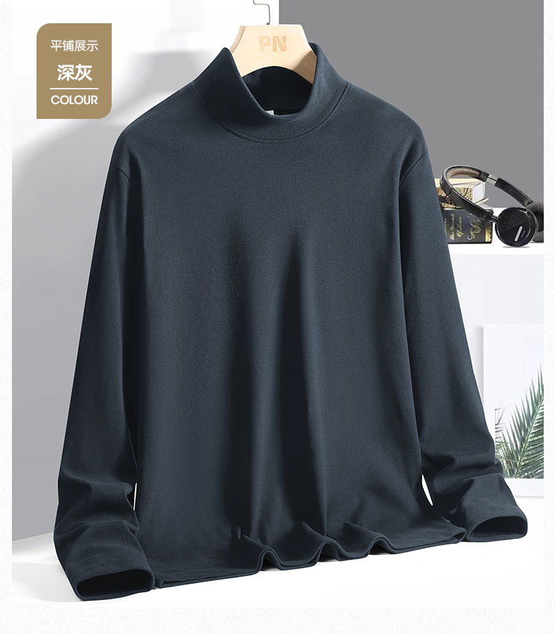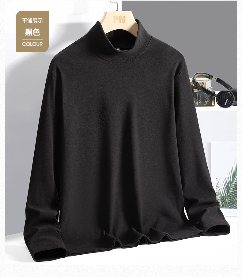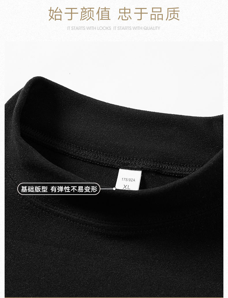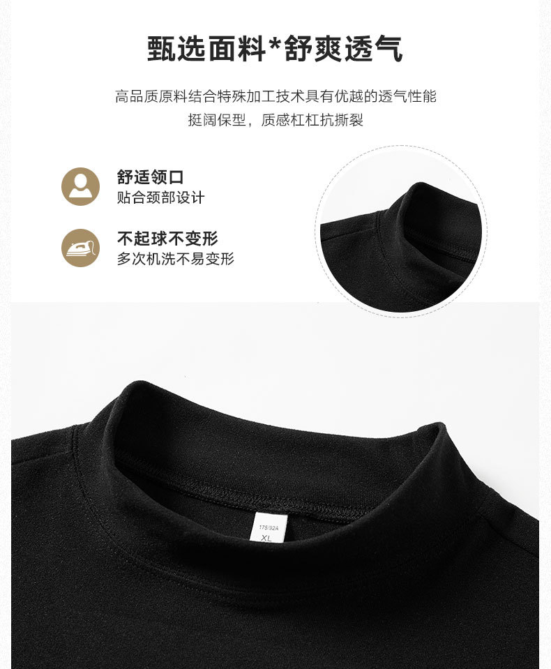 双面德绒保暖打底衫男中厚型圆领内搭半高领长袖t恤纯色百搭秋衣