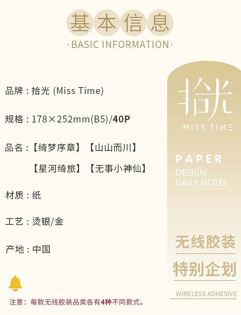 拾光无线胶装期刊笔记本横线本 办公文创b5本子高颜值学生记事本