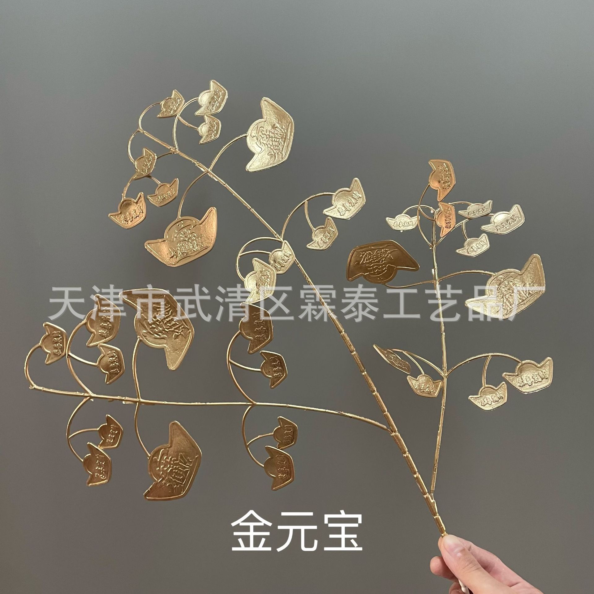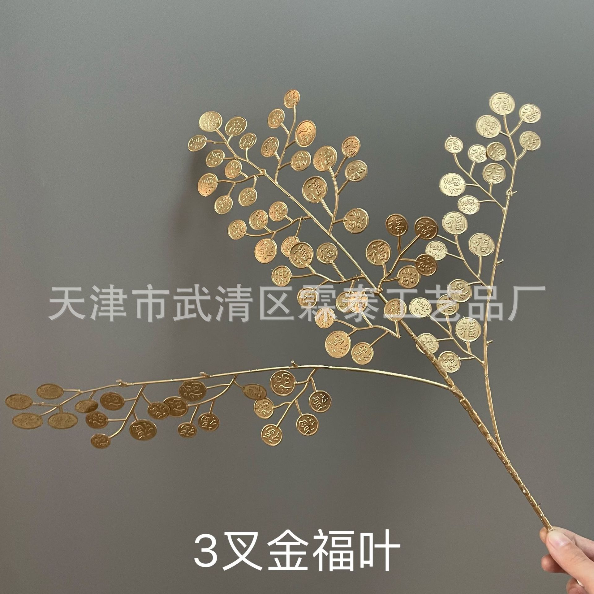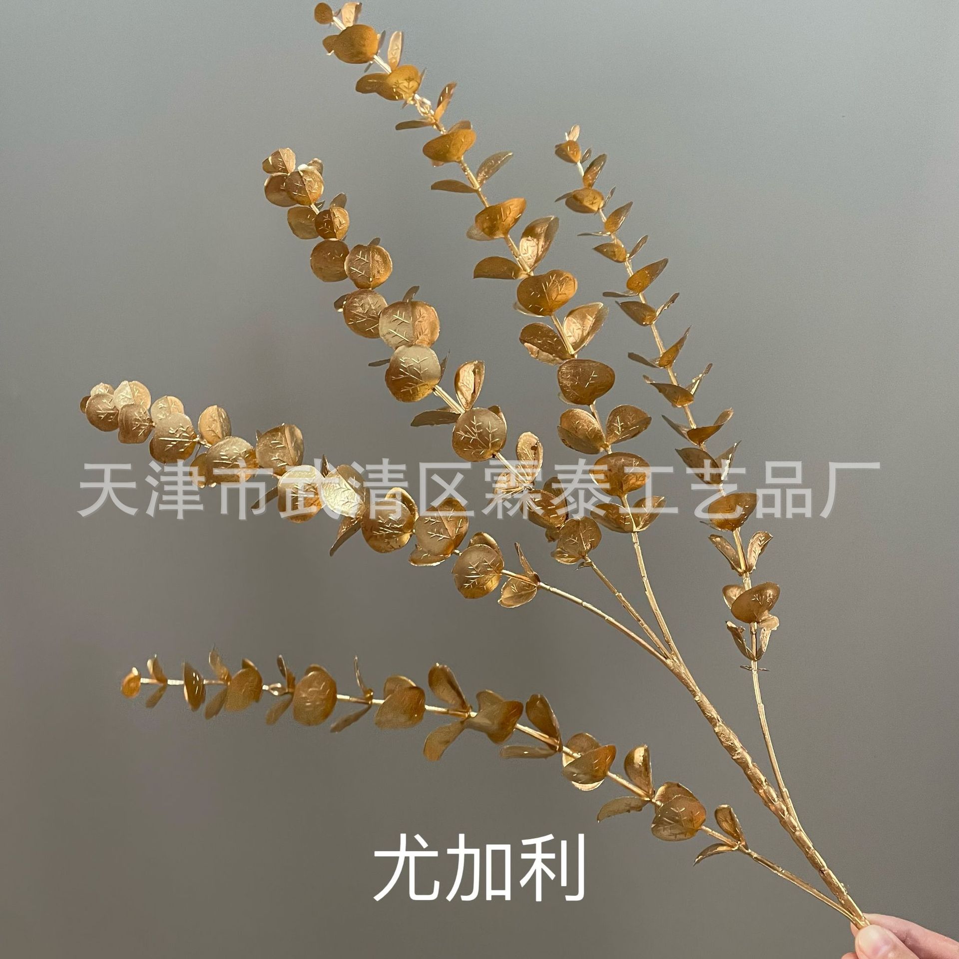新年喜庆仿真花假花尤加利过年装饰福桶花扇子银杏叶金色植物花材