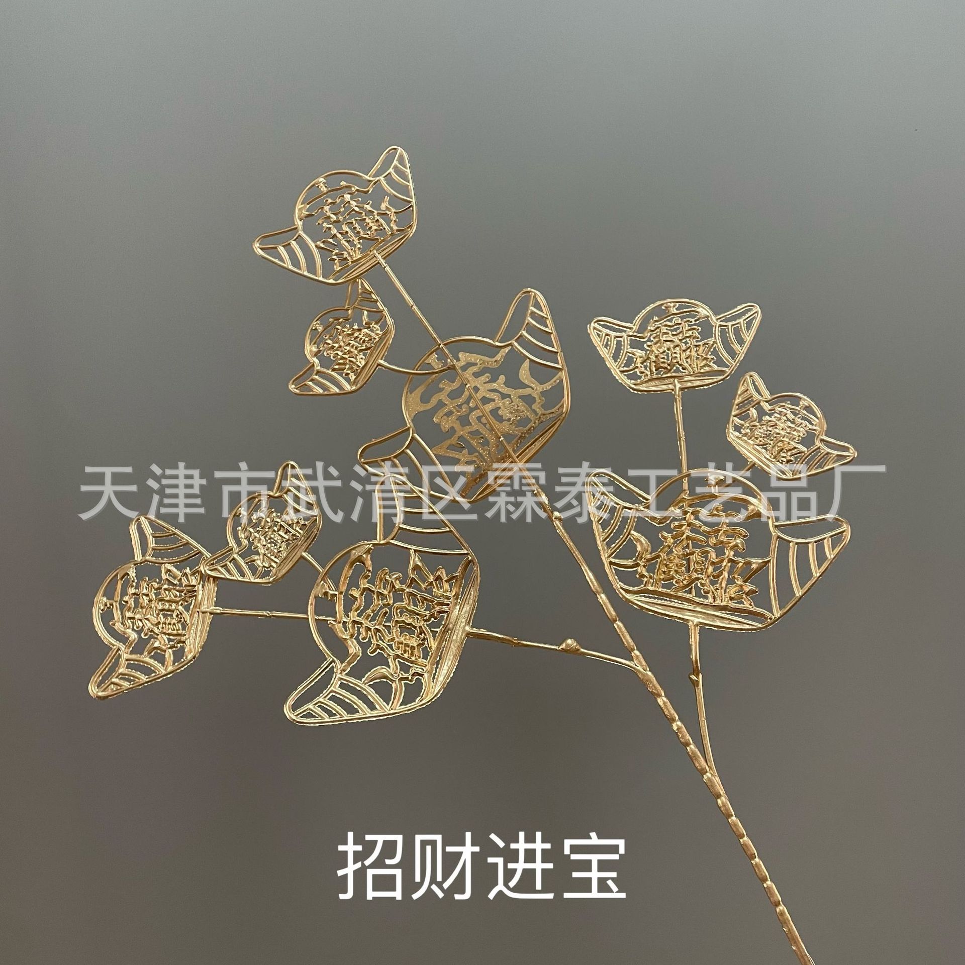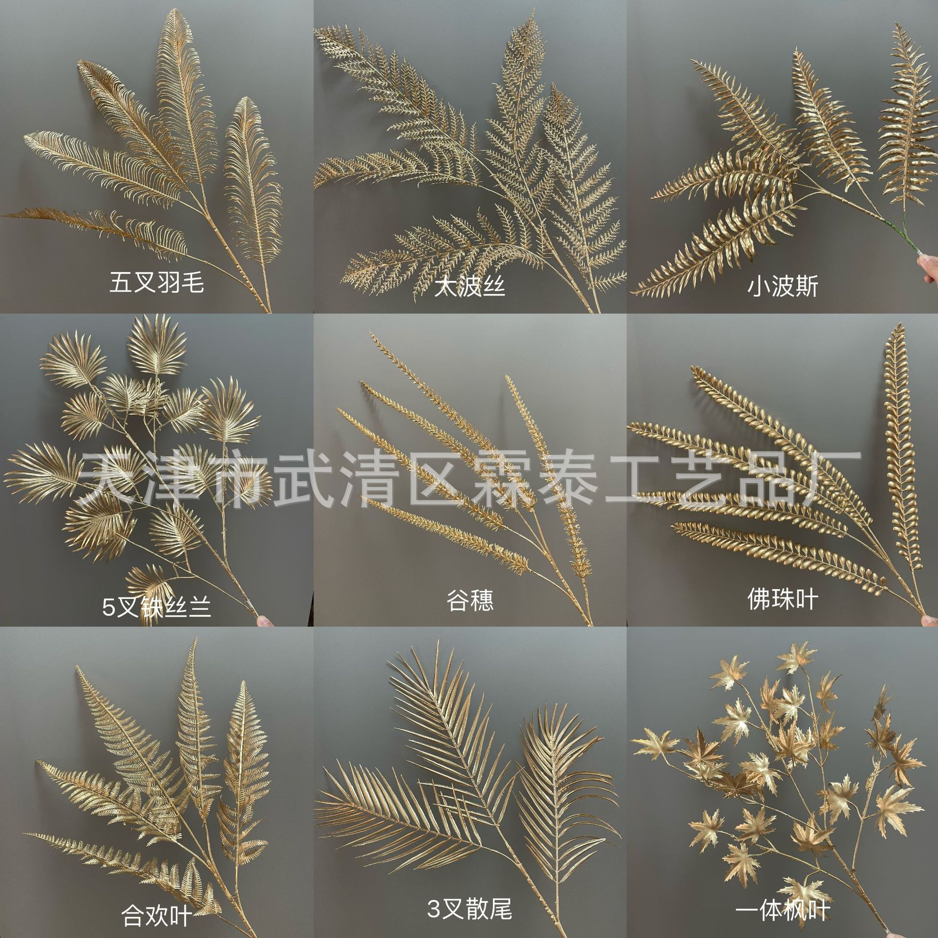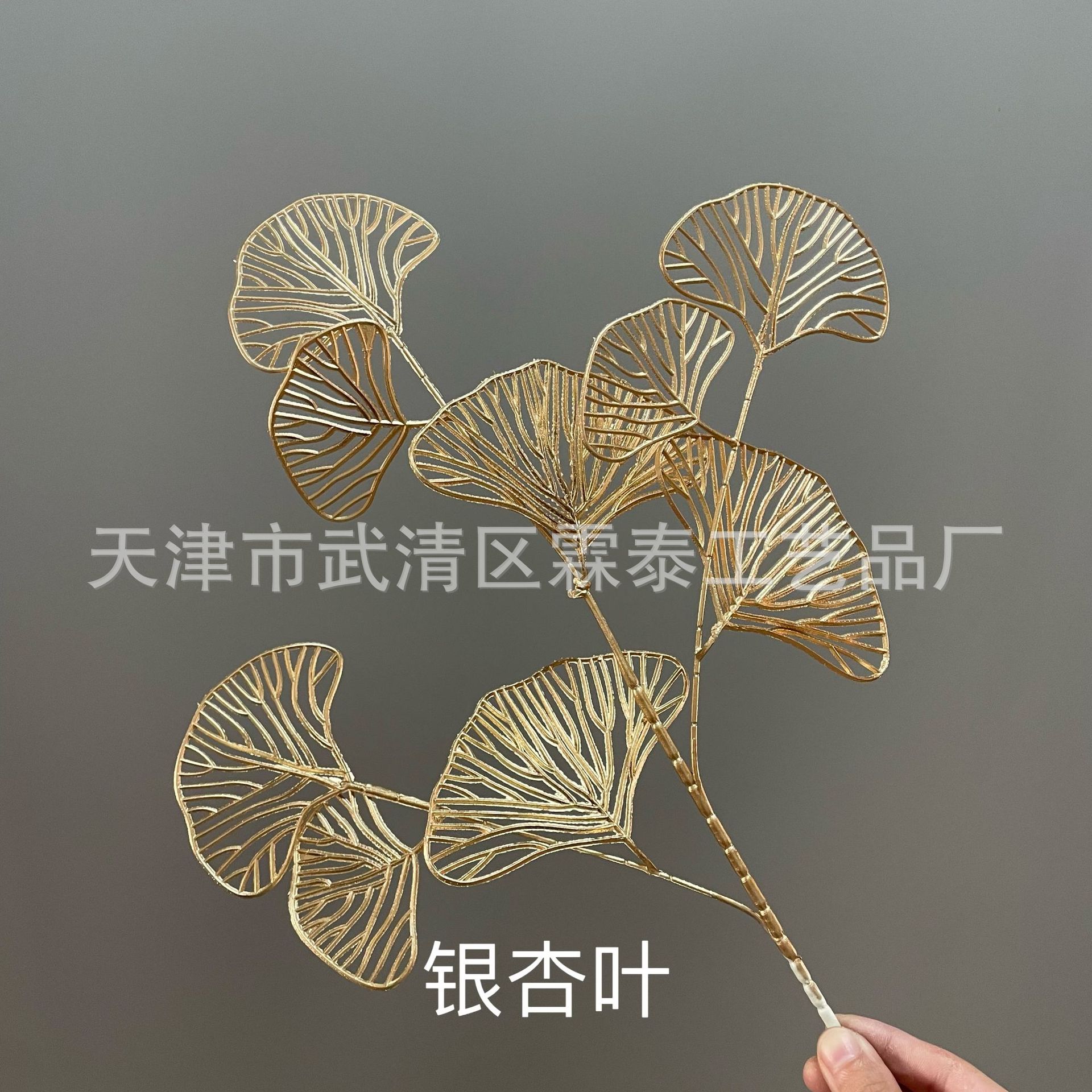 新年喜庆仿真花假花尤加利过年装饰福桶花扇子银杏叶金色植物花材