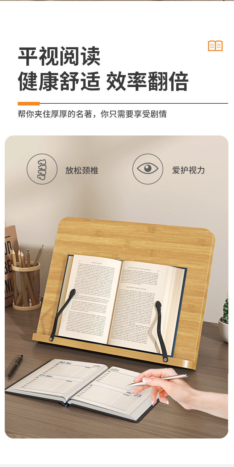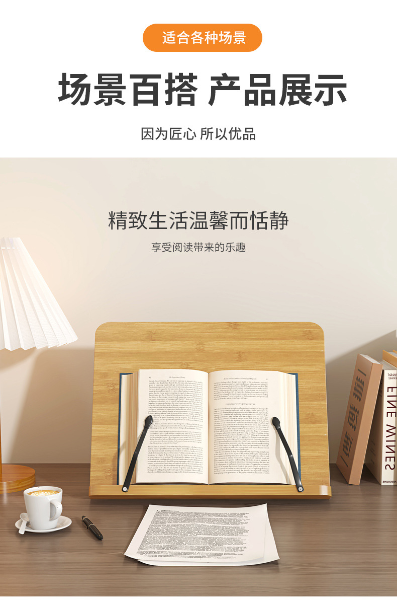 木质看书阅读架多功能电脑支架书法临帖架八档可调成人儿童读书架