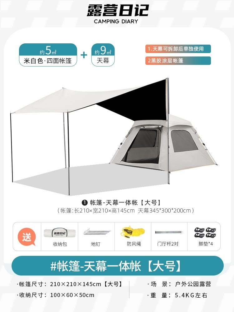 帐篷天幕二合一户外便携式折叠全套露营装备加厚黑胶防晒野外野营