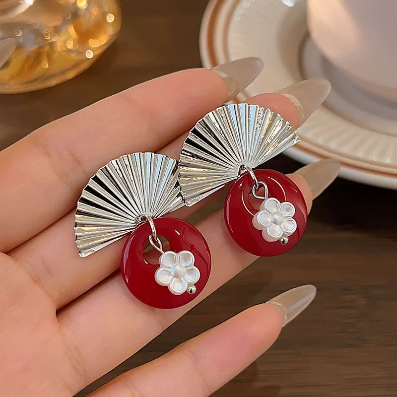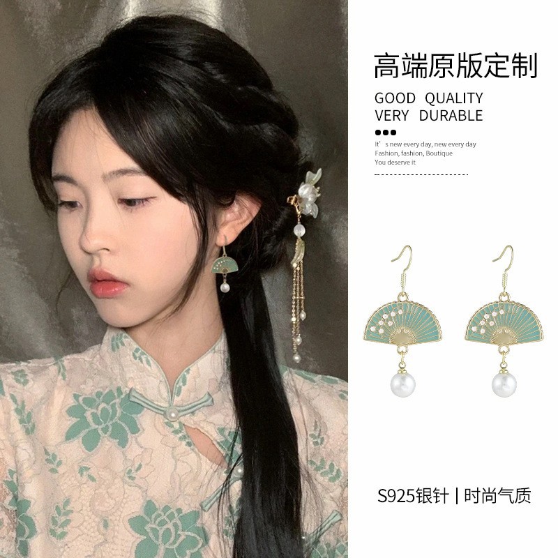 新中式国风扇形耳饰复古旗袍耳夹女无耳洞民族风汉服耳环古风耳坠