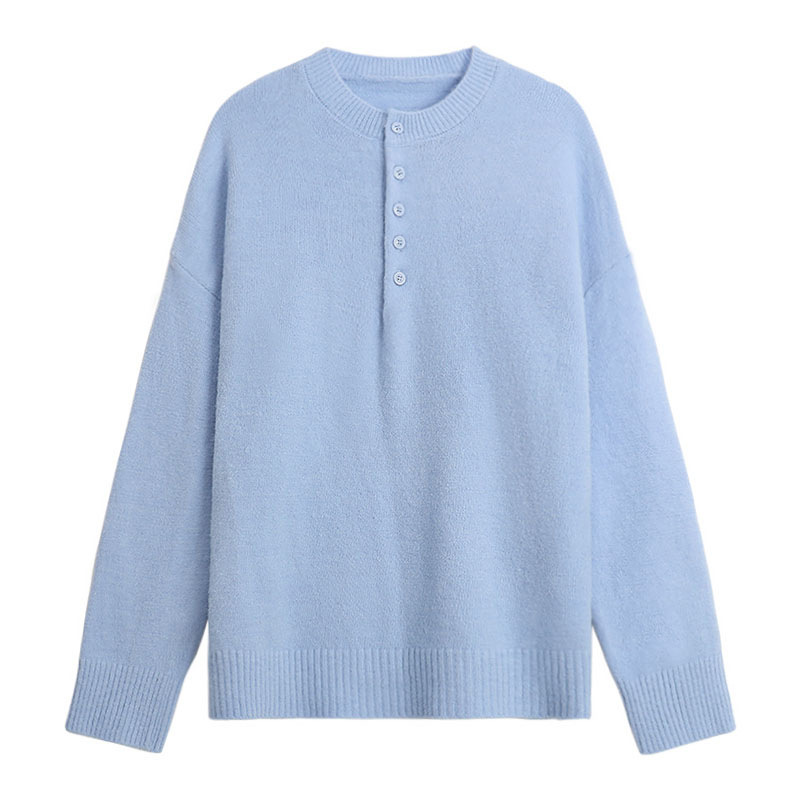 软奶蓝毛衣女秋冬2023新款韩版宽松打底套头百搭长袖针织上衣批发