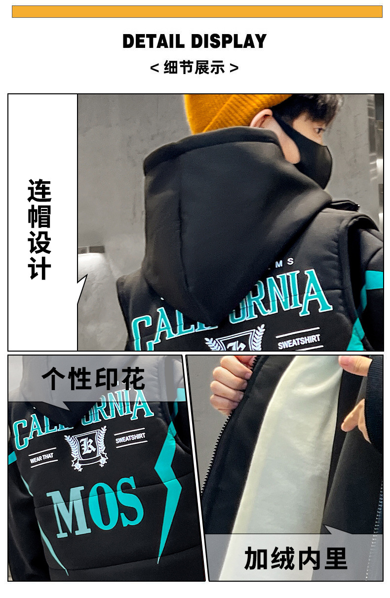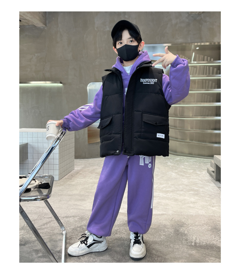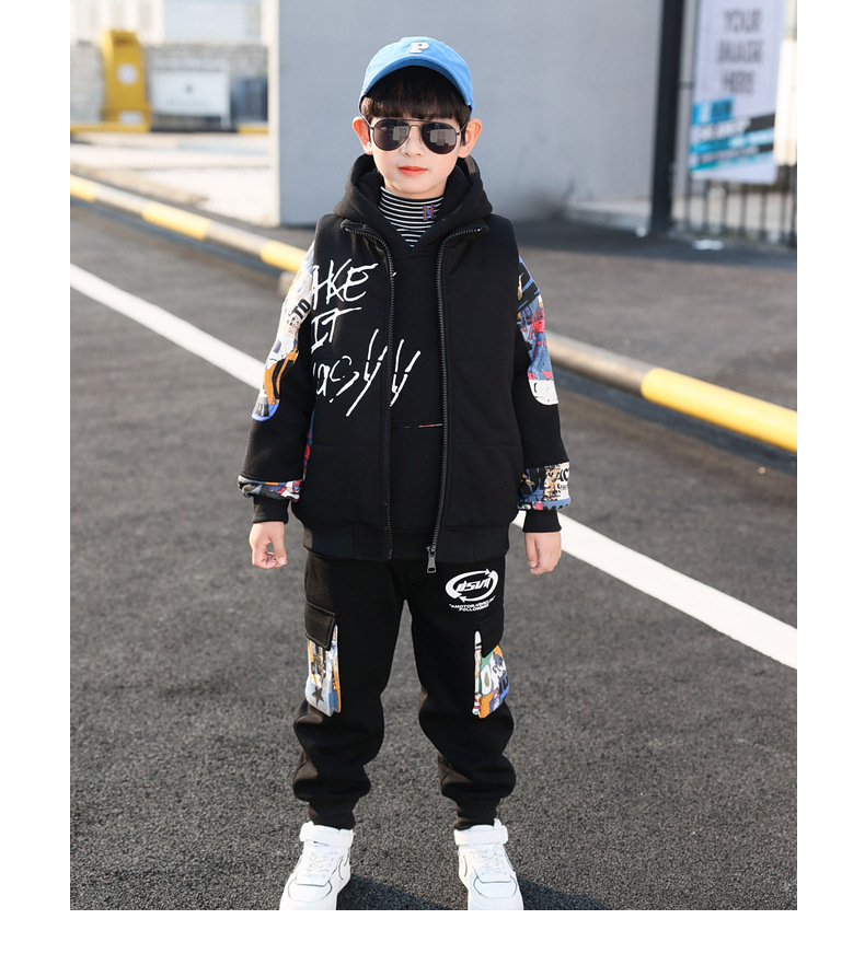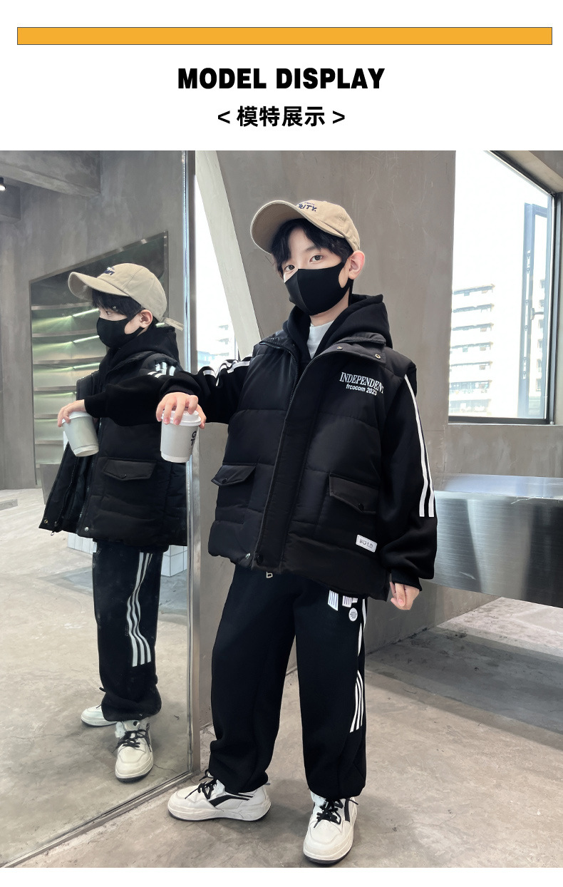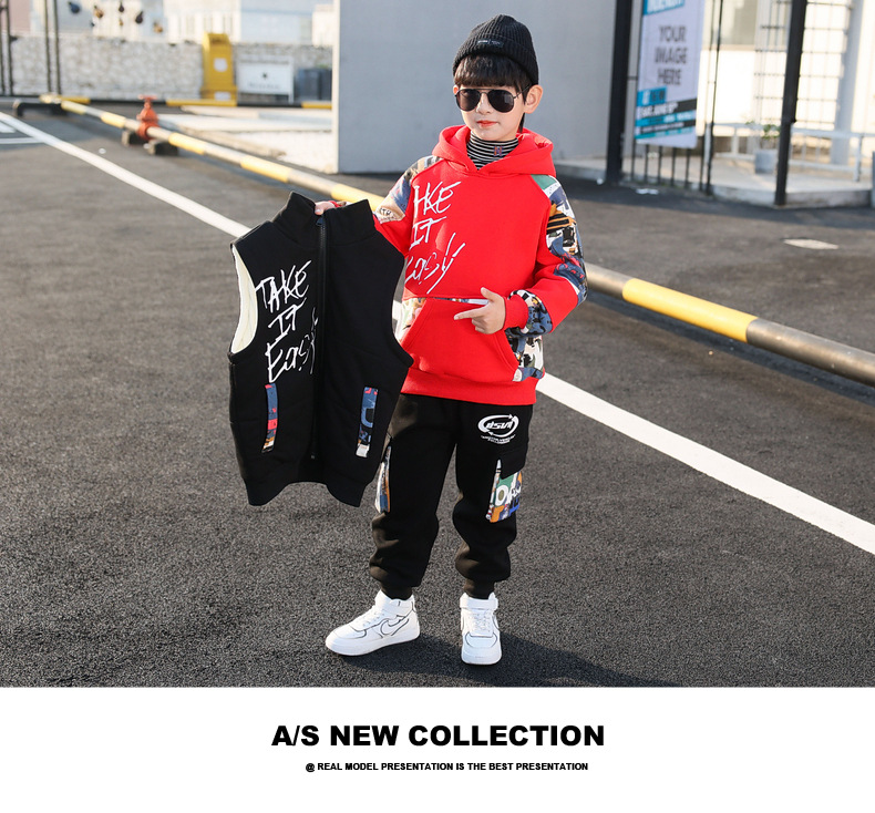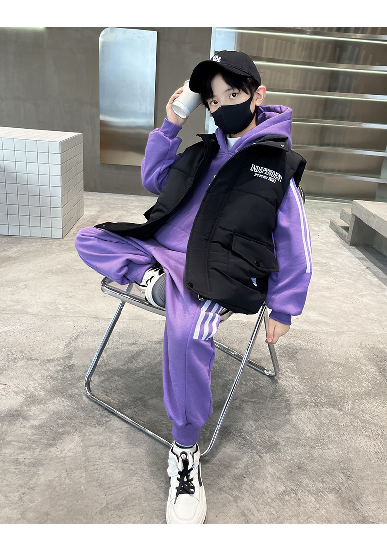 新款男童秋冬款套装中大儿童男孩休闲冬季加绒加厚闪电马甲三件套