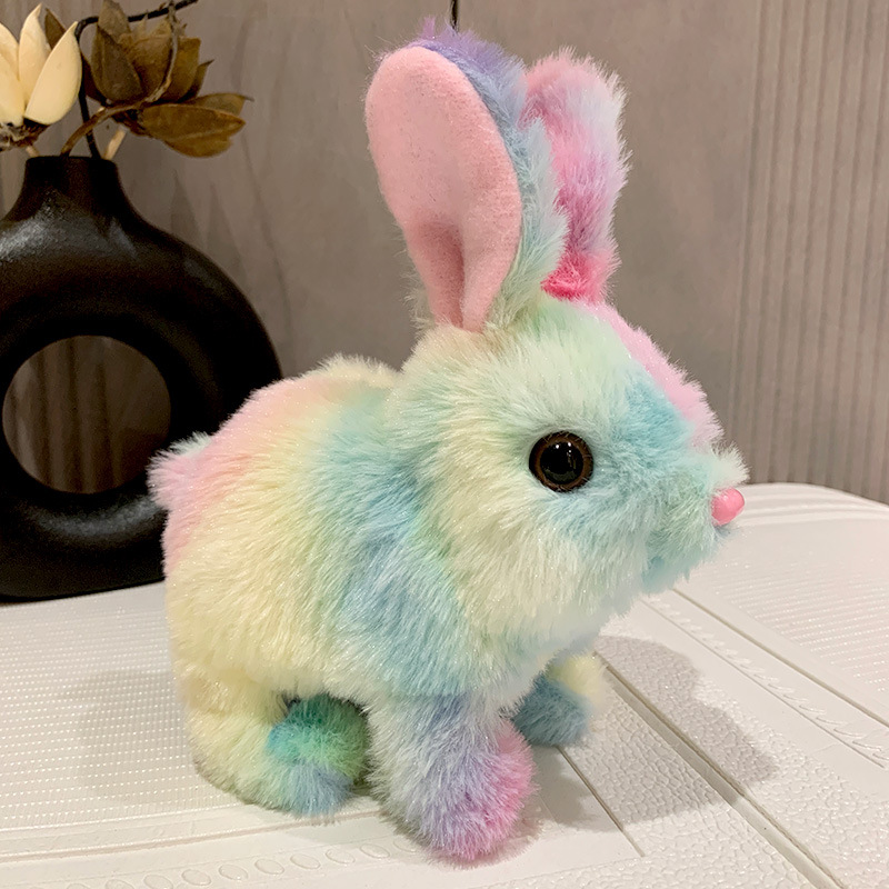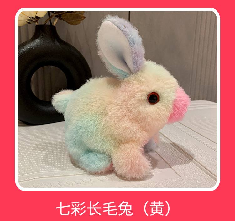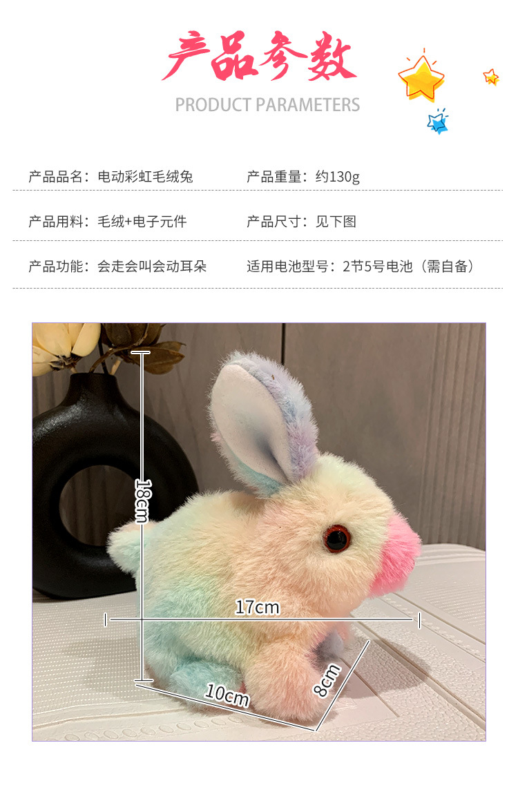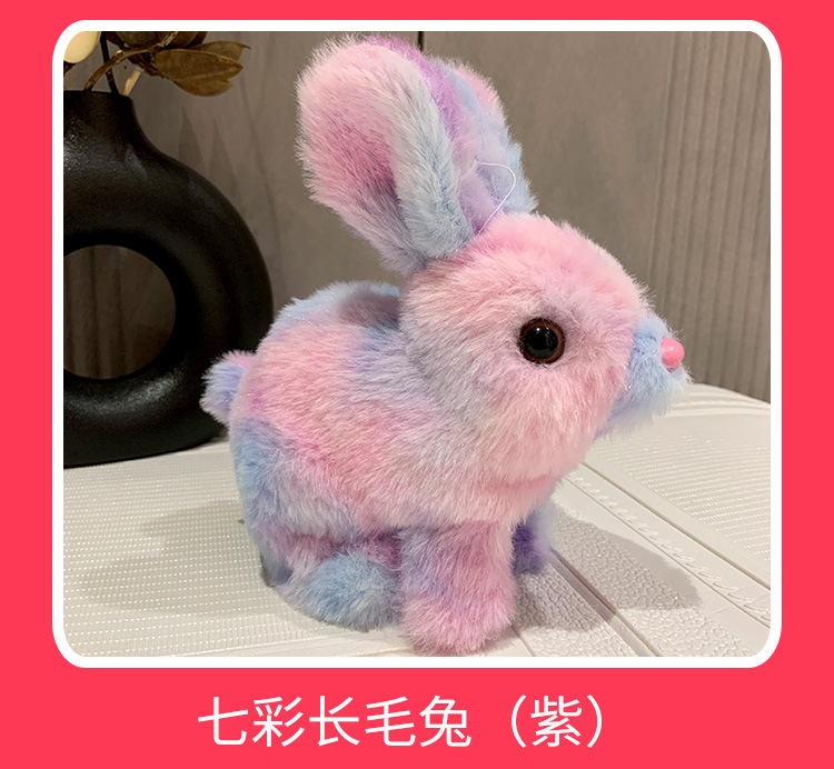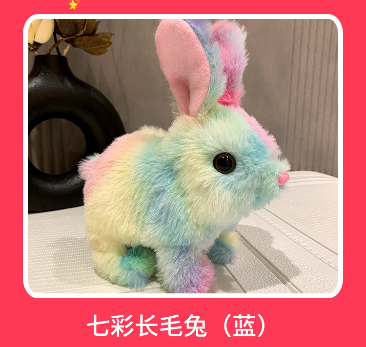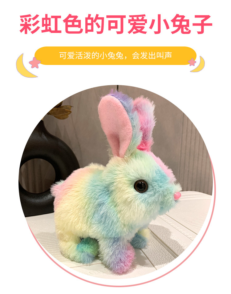 新款电动彩虹色毛绒小兔子玩具会走会叫会动耳朵可爱卡通玩偶批发