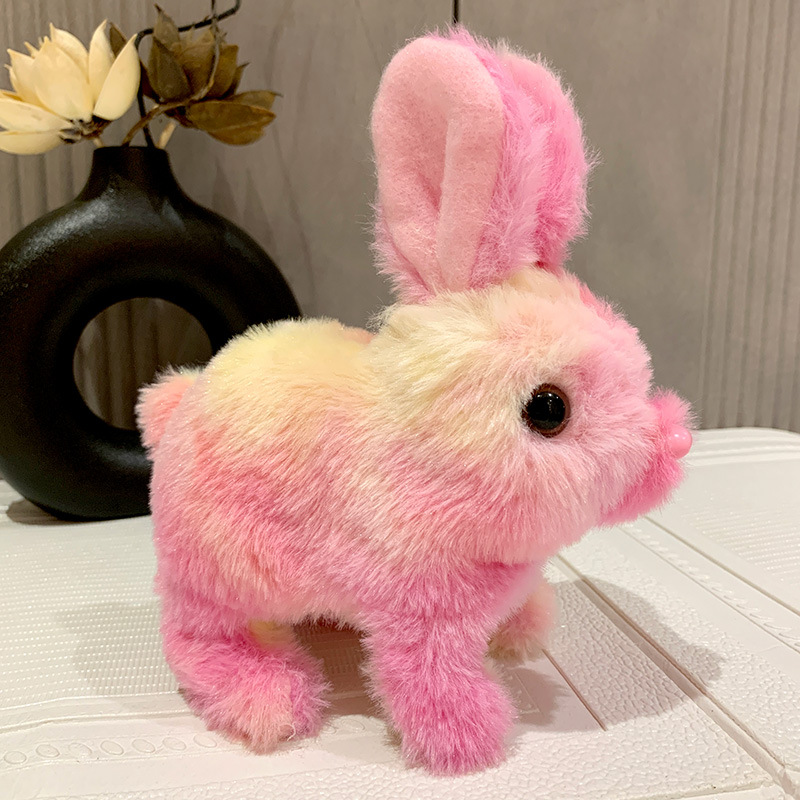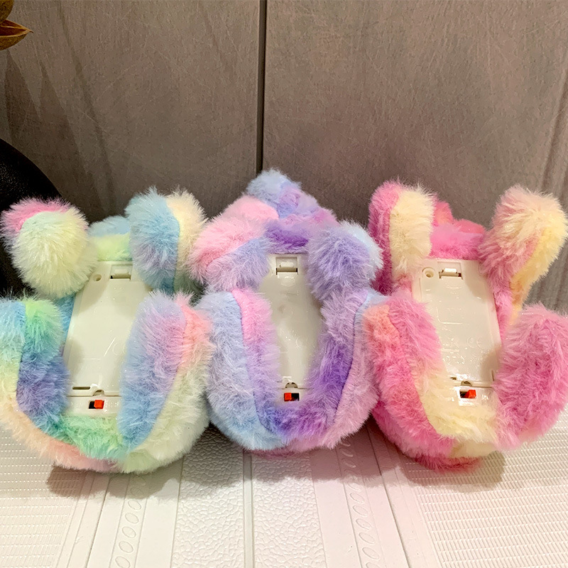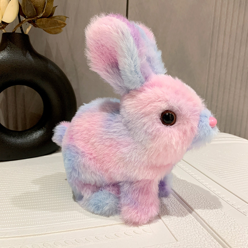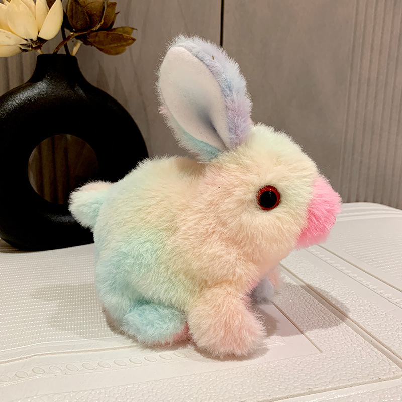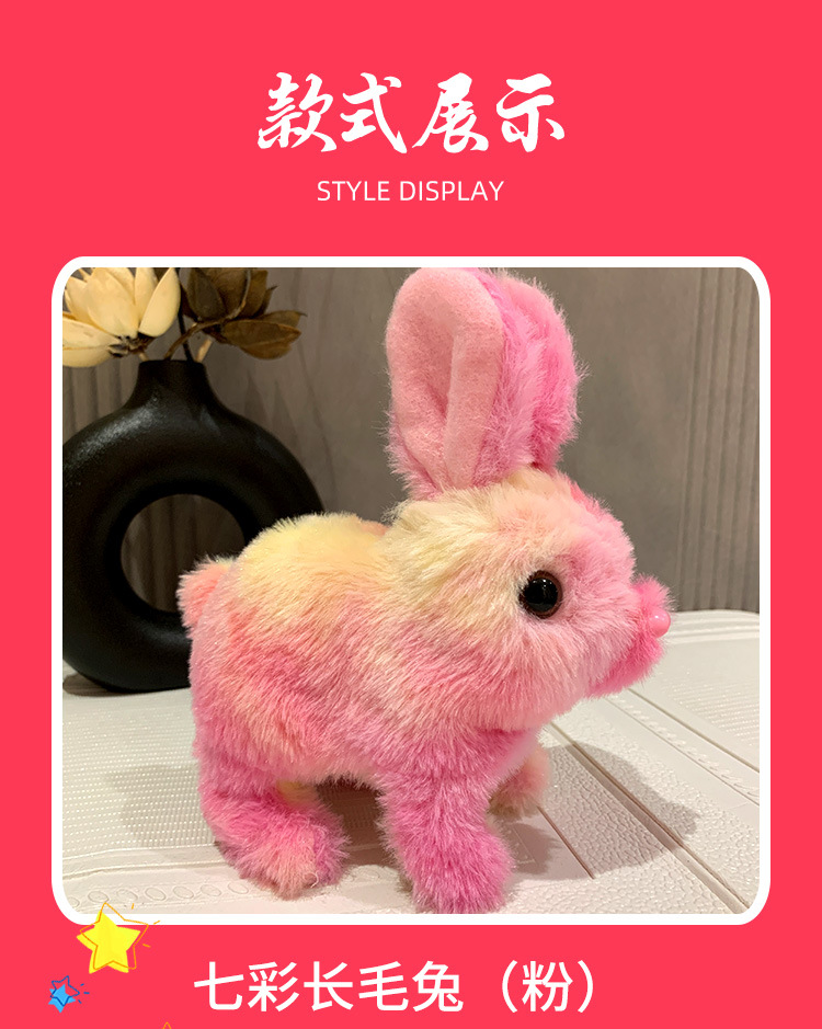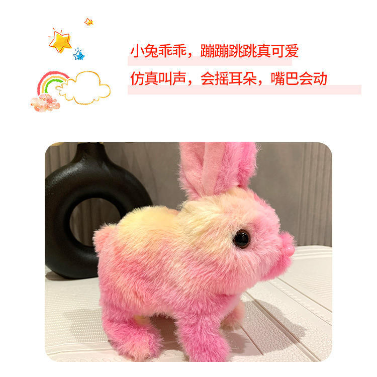 新款电动彩虹色毛绒小兔子玩具会走会叫会动耳朵可爱卡通玩偶批发
